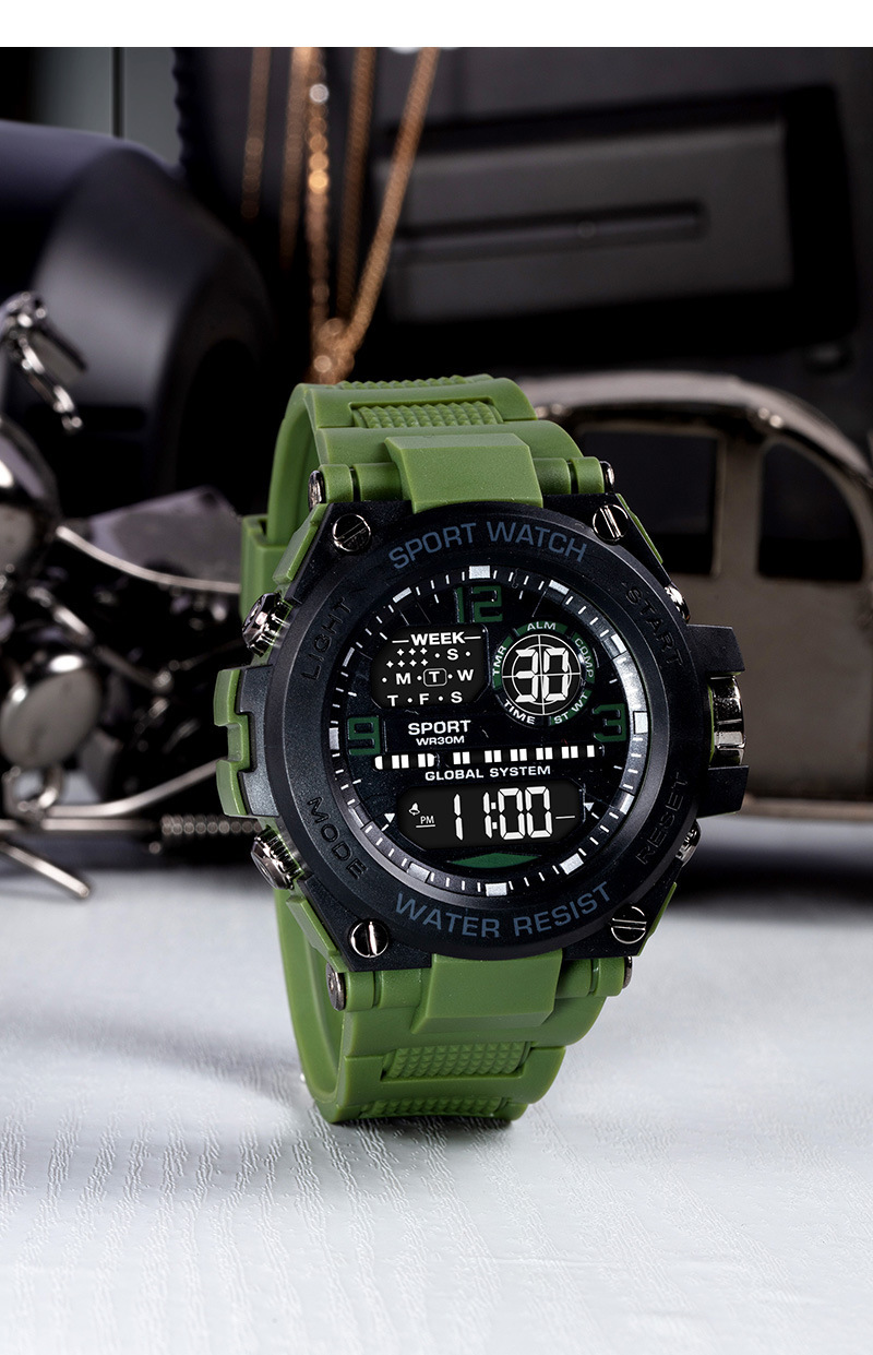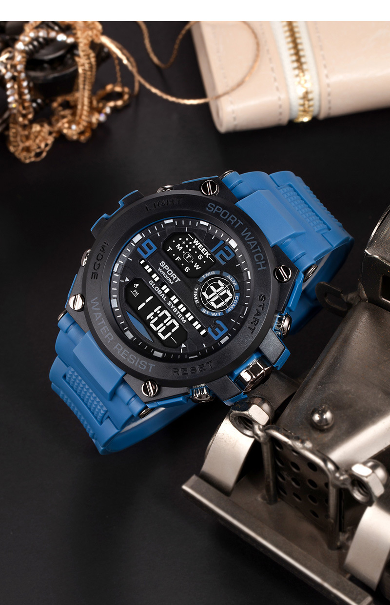 Reloj electrónico de montañismo al aire libre para hombres nuevos transfronterizos Reloj electrónico multifunción de cronógrafo de alarma luminosa para estudiantes