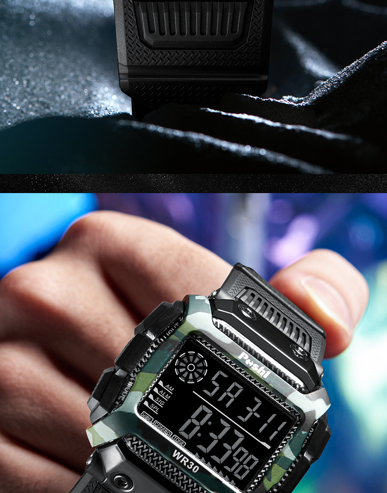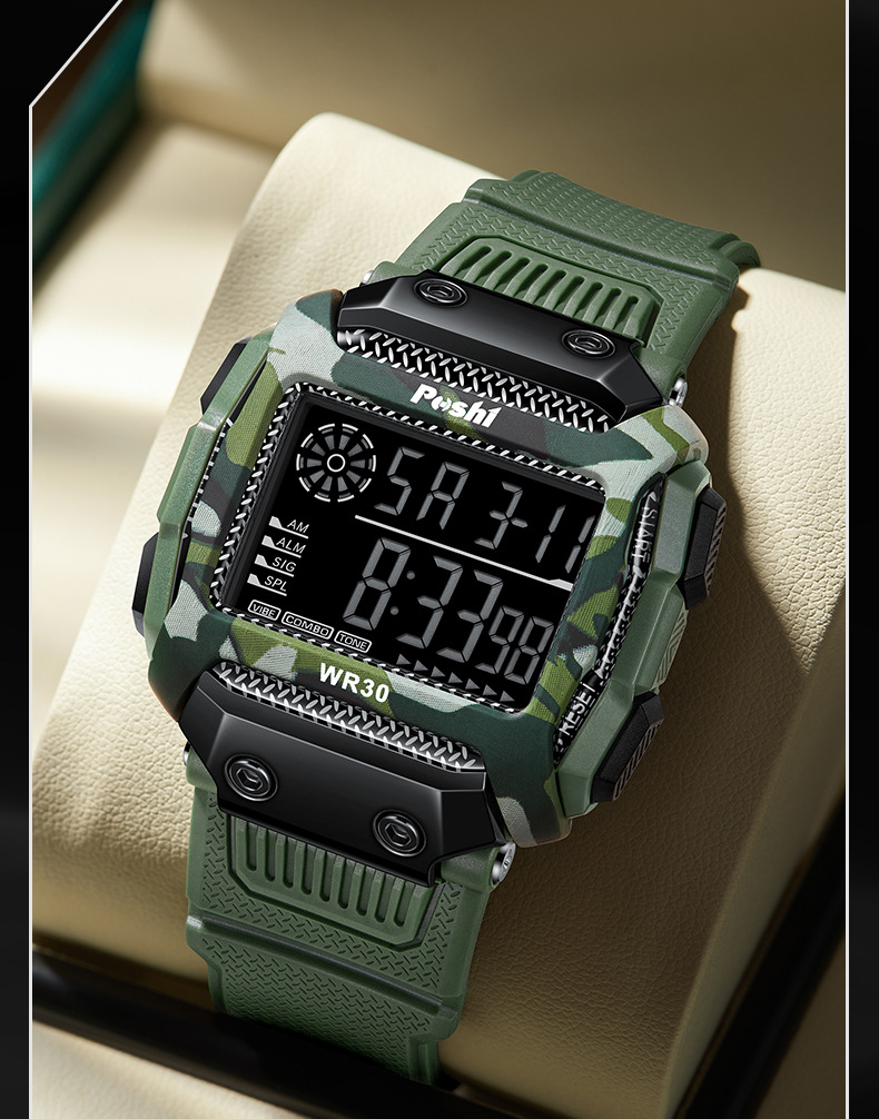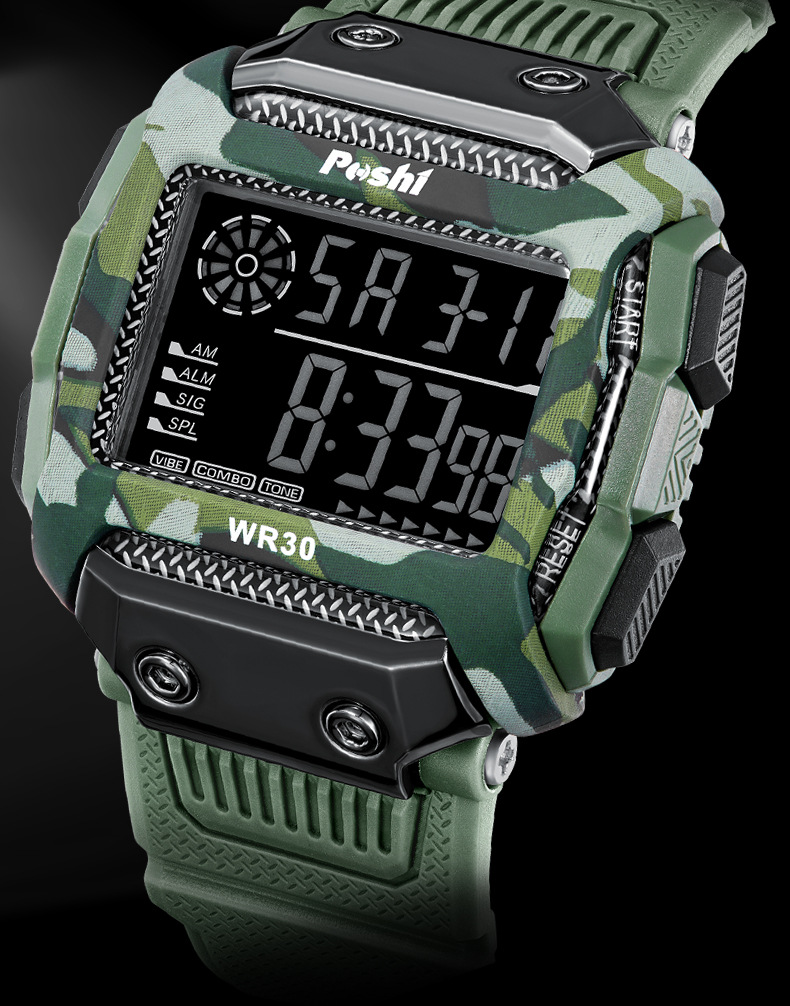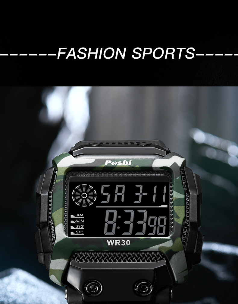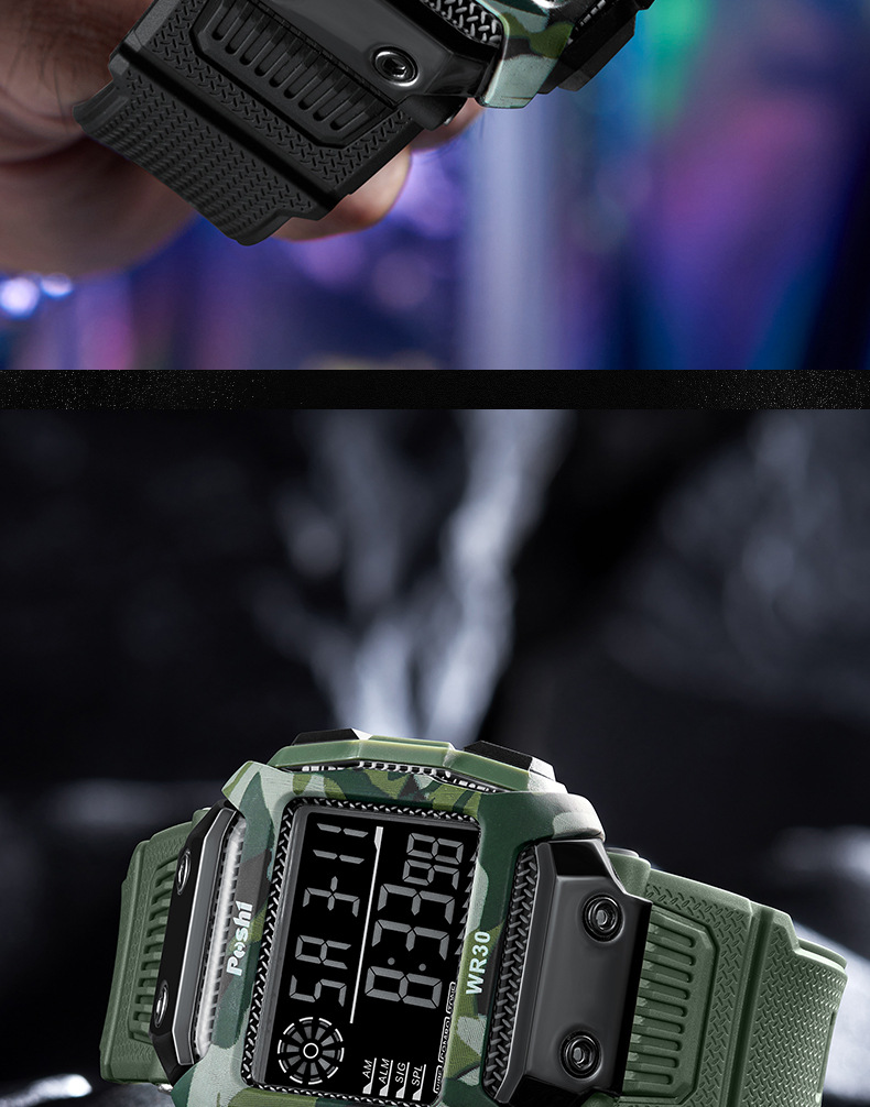 Reloj electrónico deportivo de reloj POSHI Camuflaje para estudiantes Reloj digital luminoso de alarma multifuncional al aire libre