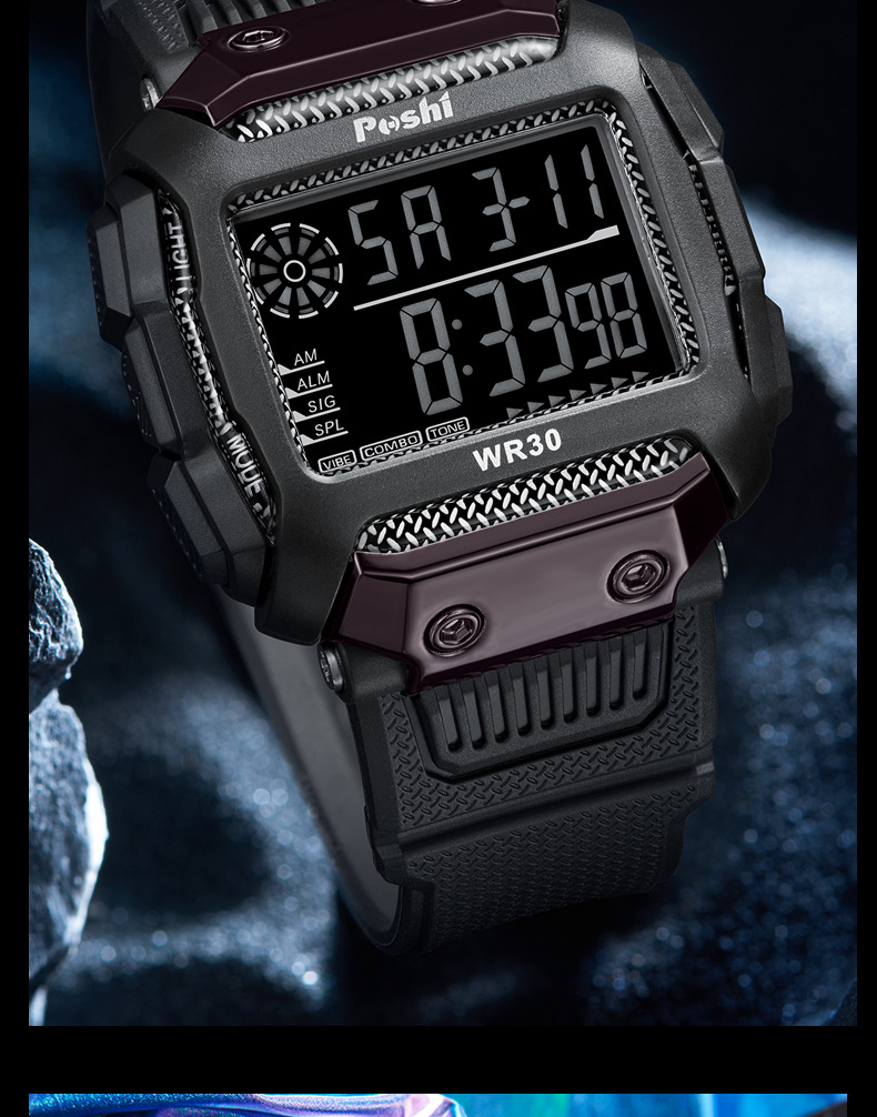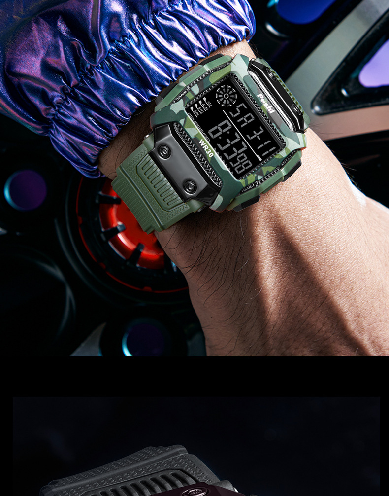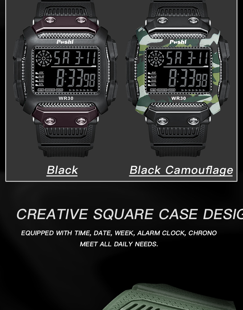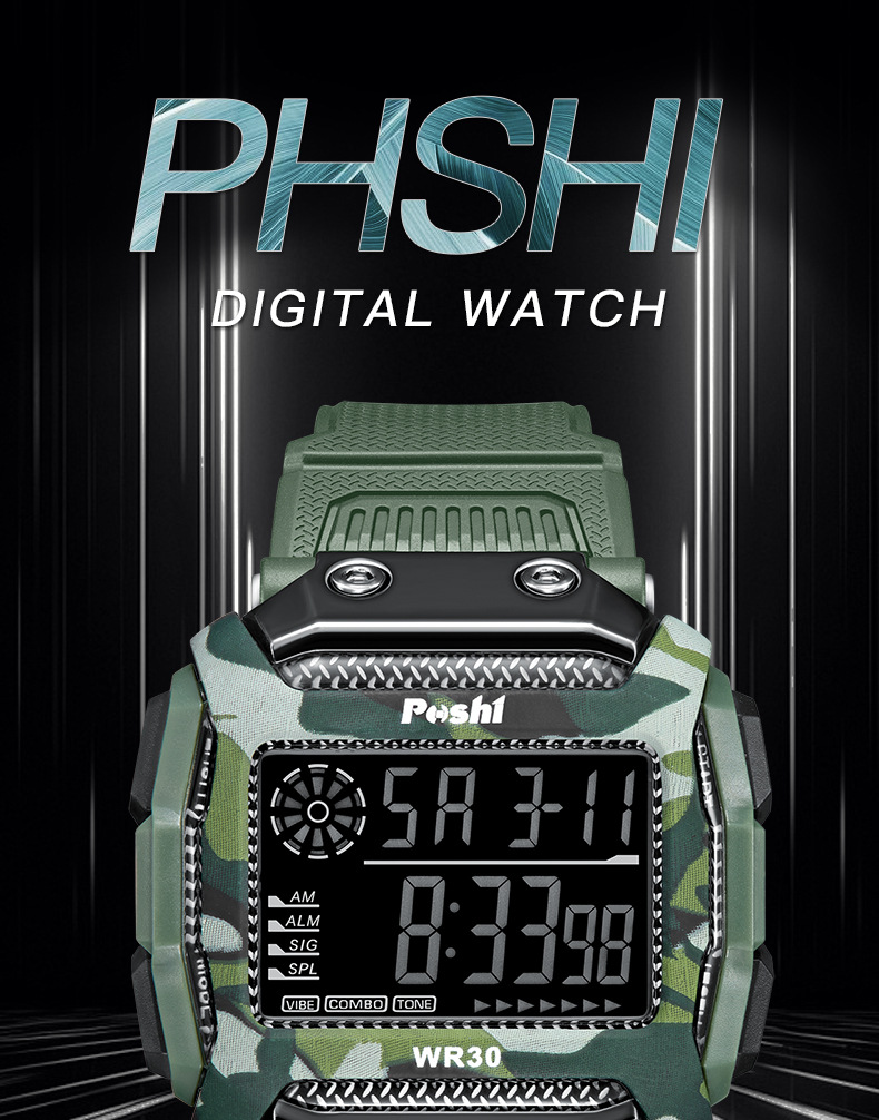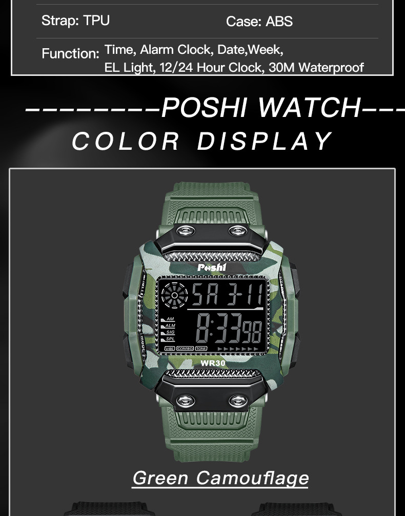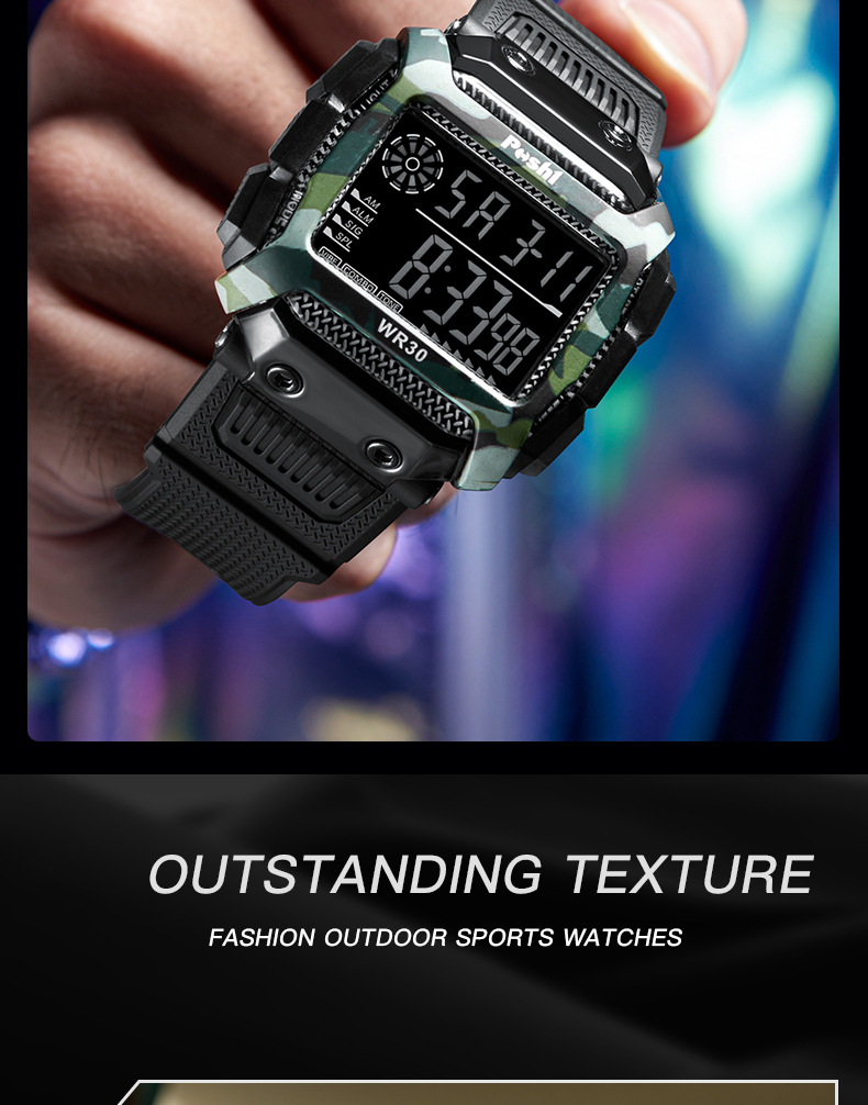 Reloj electrónico deportivo de reloj POSHI Camuflaje para estudiantes Reloj digital luminoso de alarma multifuncional al aire libre