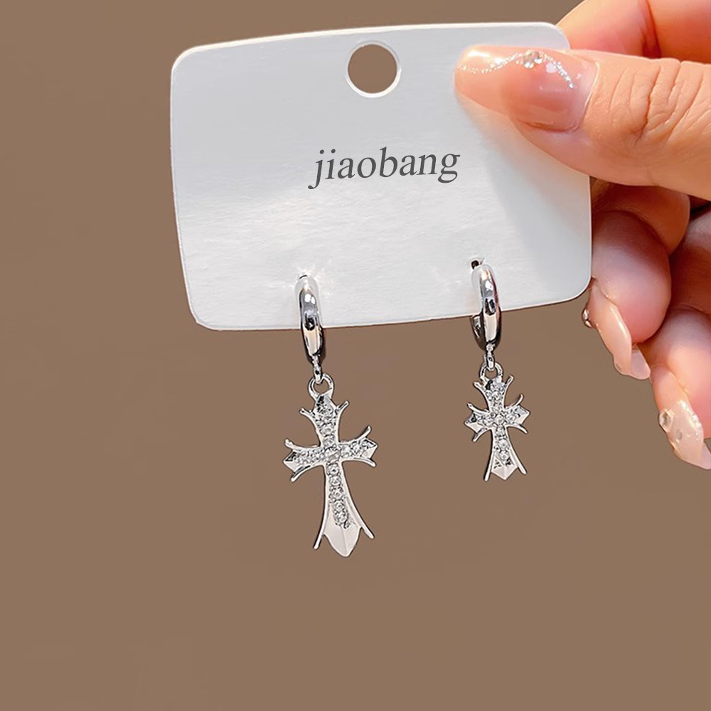 Pendientes cruzados con aguja de plata y diamantes AB Diseño de nicho Pendientes de viento frío Moda europea y americana Pendientes de alta gama Mujeres