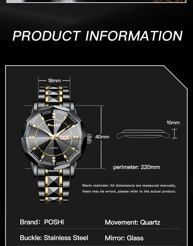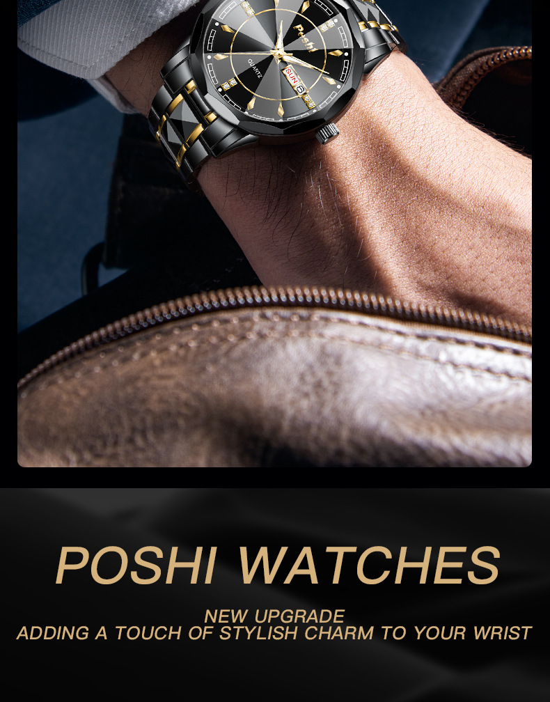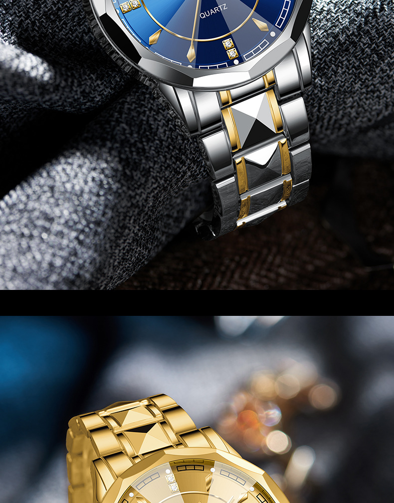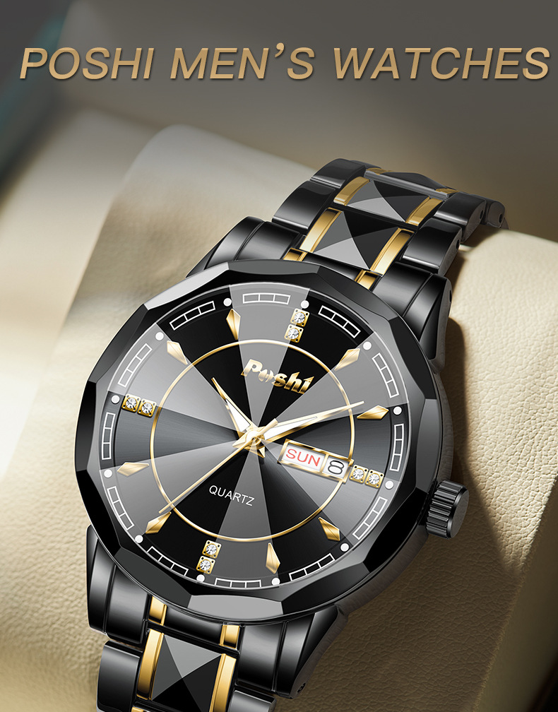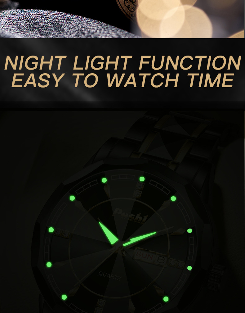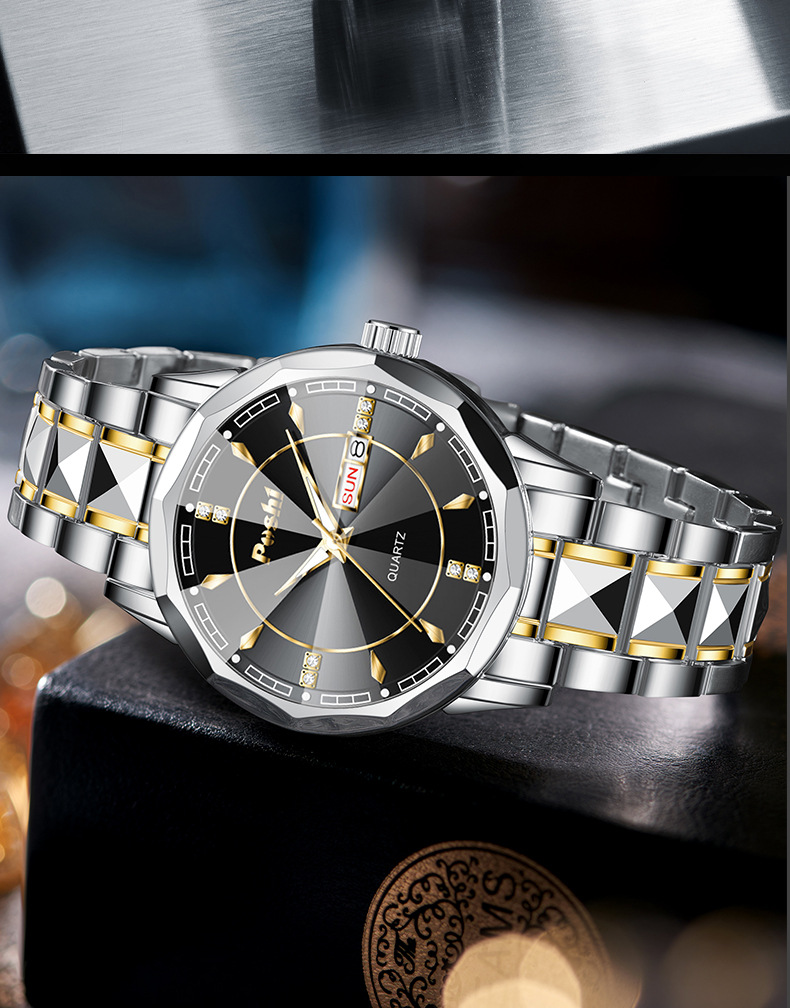 2025 nuevo reloj para hombre, reloj de calendario doble luminoso impermeable, reloj de cuarzo para hombre, cristal puntiagudo en forma de diamante