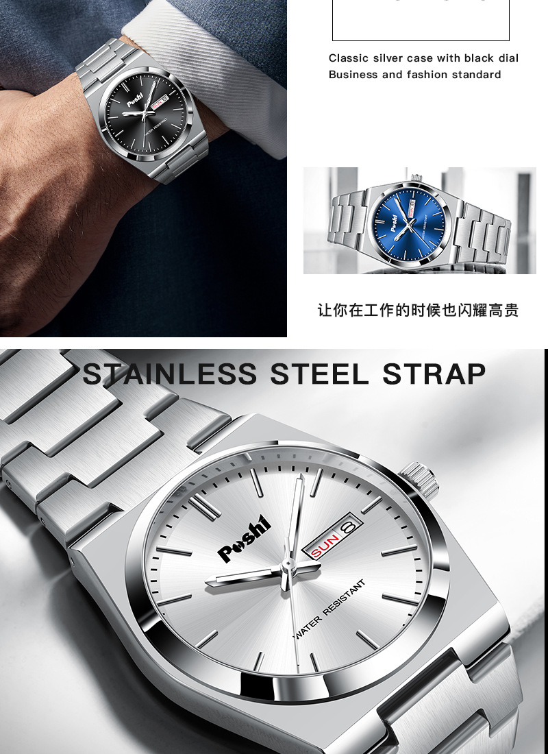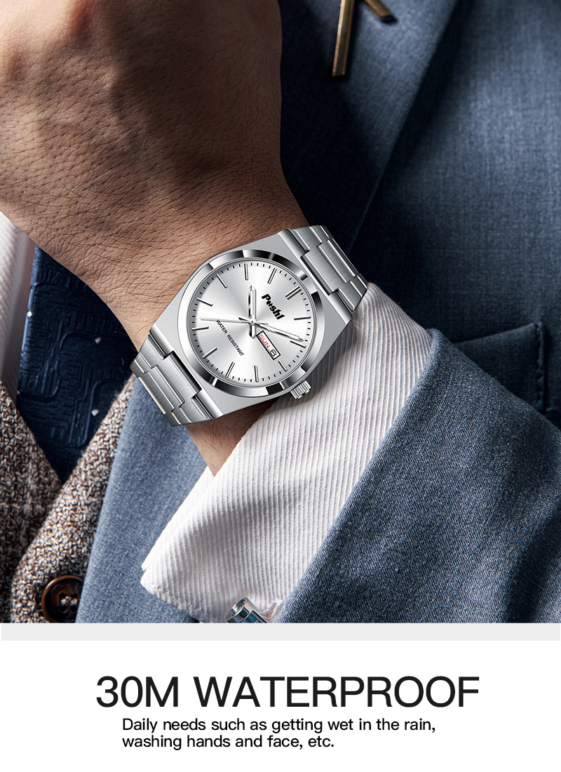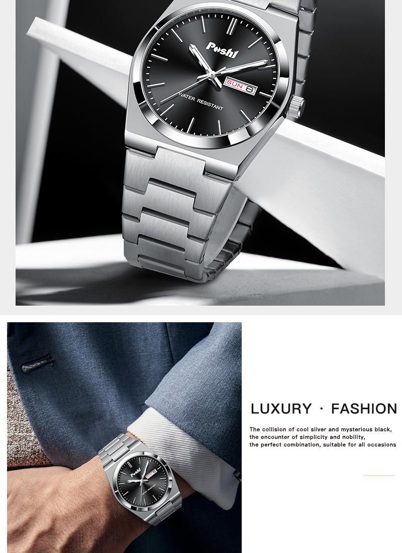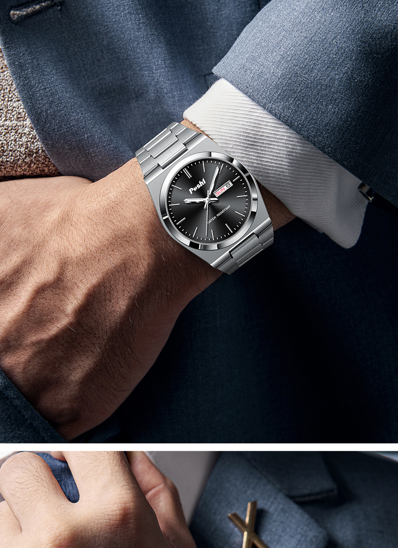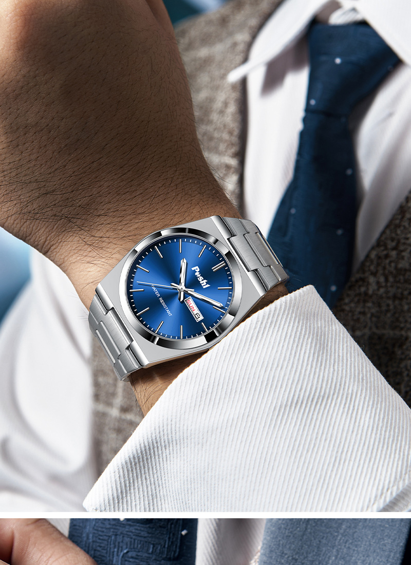 Reloj de hombre de lujo de la marca suiza, reloj de cuarzo de doble calendario de moda impermeable, reloj de hombre de negocios explosivo en vivo