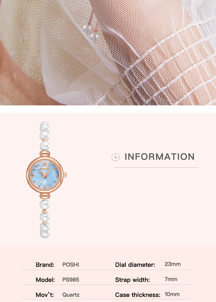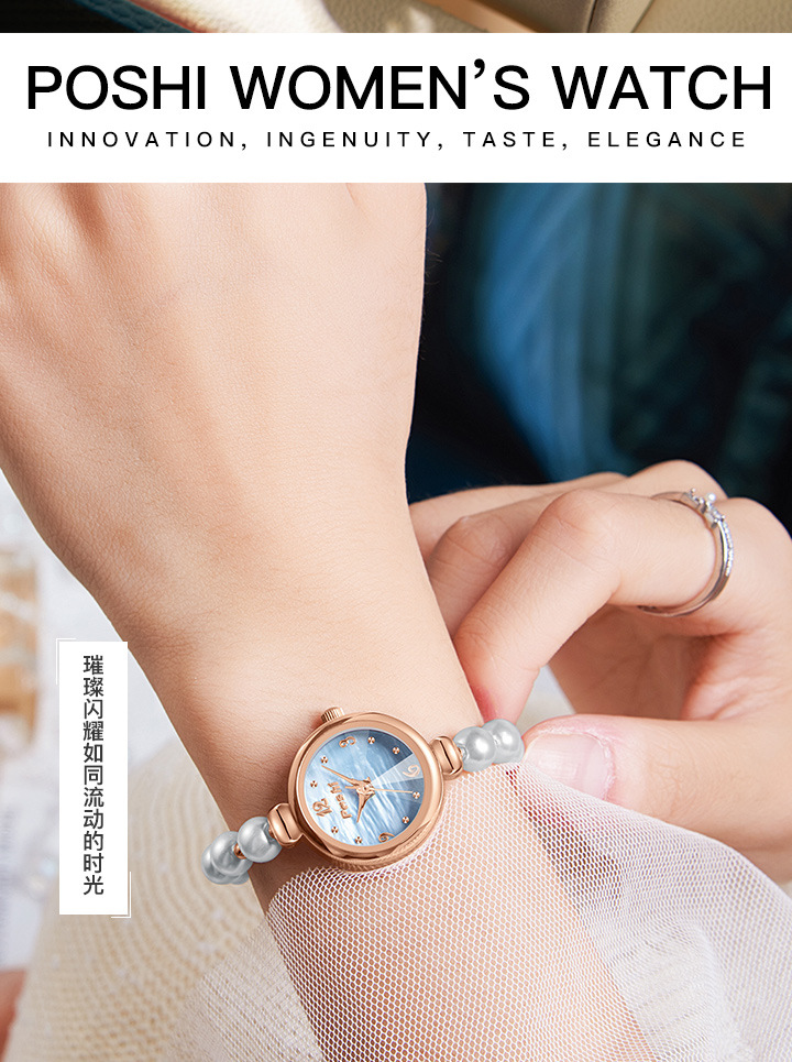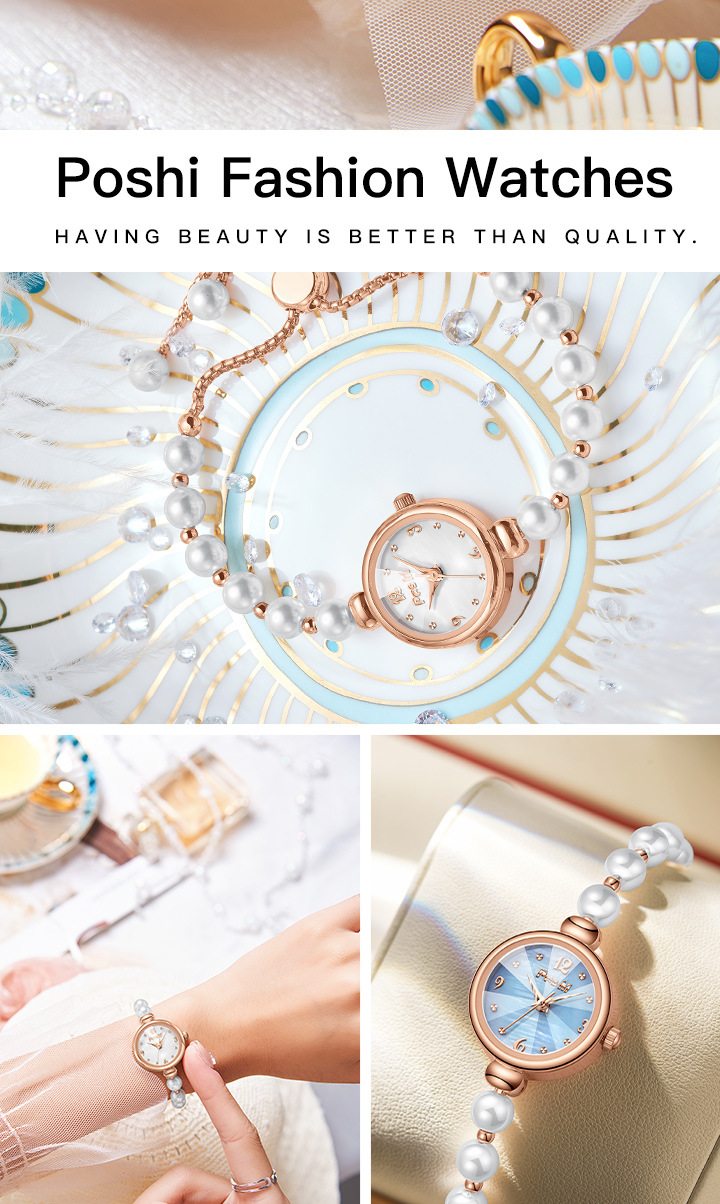 Moda nuevo estilo pulsera de perlas reloj de cuarzo para mujer esfera pequeña pulsera delgada reloj de cuarzo de ajuste libre perezoso