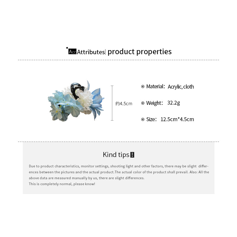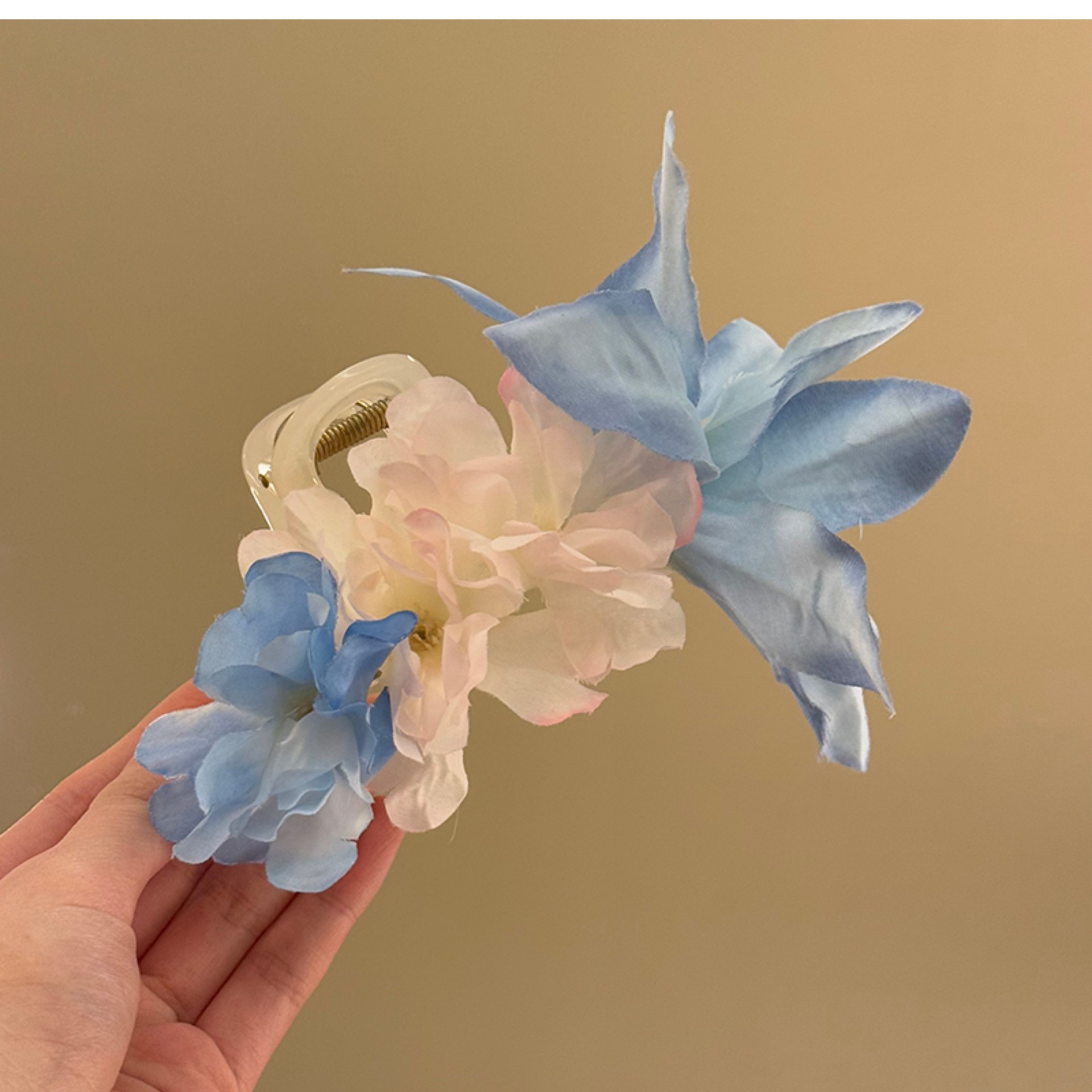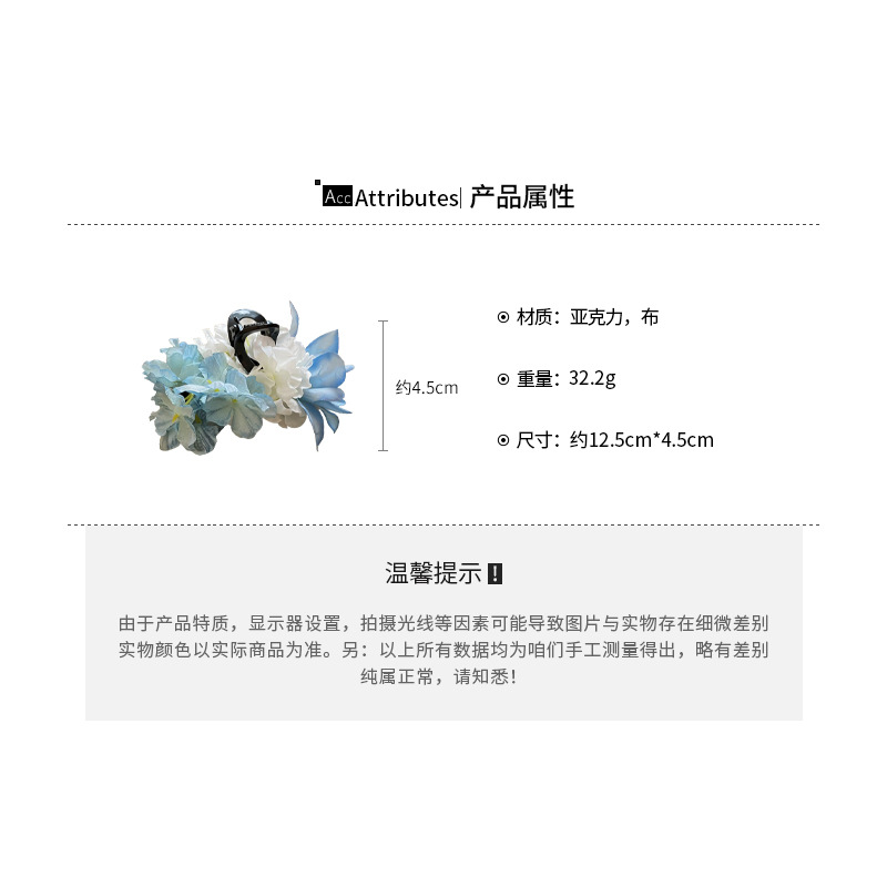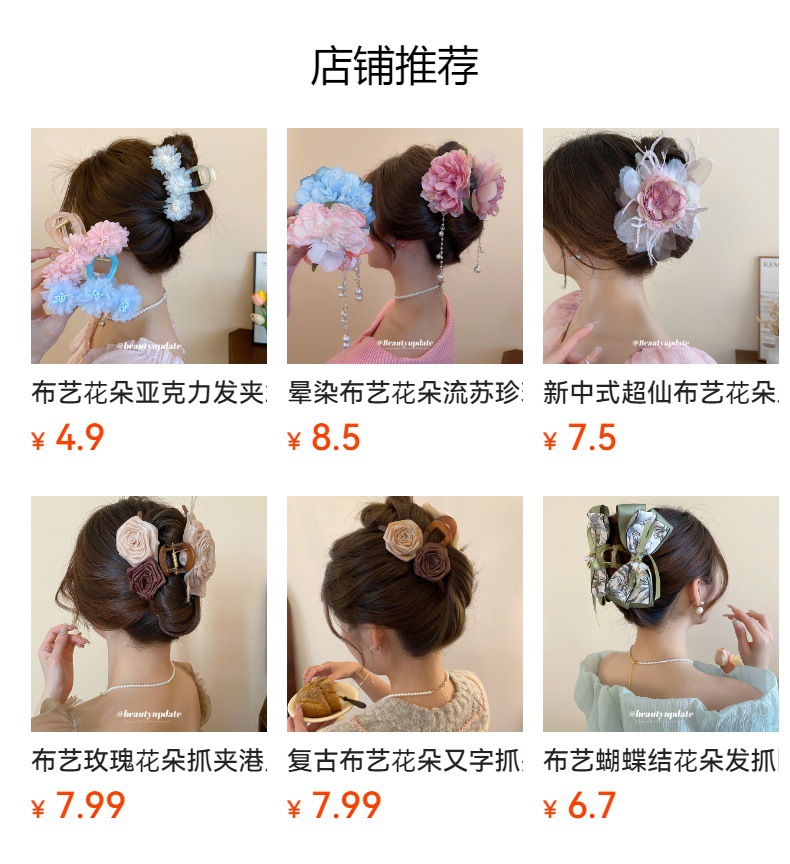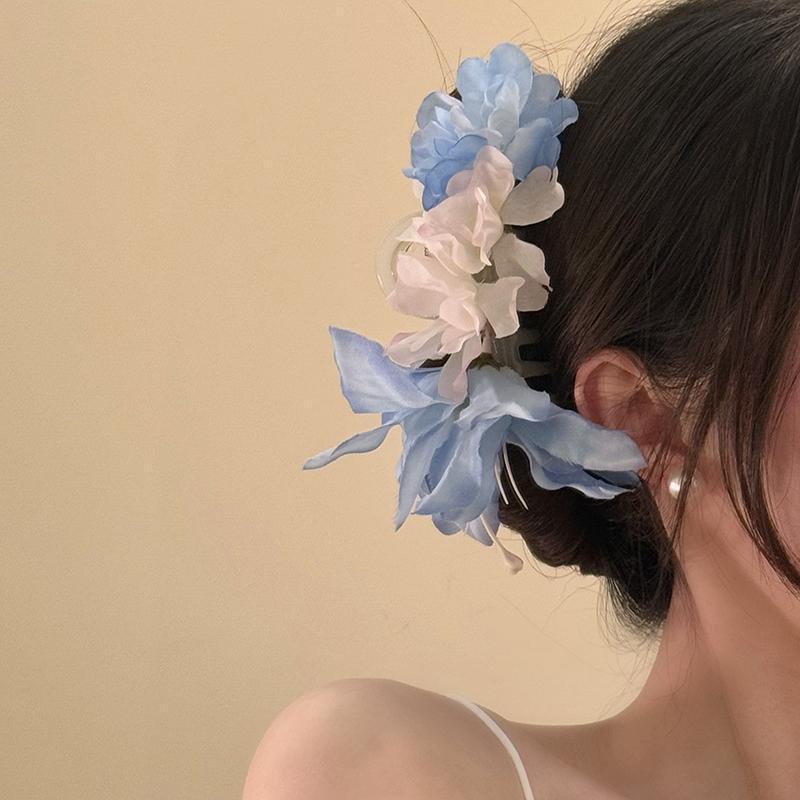 Horquilla de flor de tela de moda de primavera 2025 Super Fairy, clip de tiburón, clip de agarre, estilo de vacaciones junto al mar, accesorios para el cabello femenino