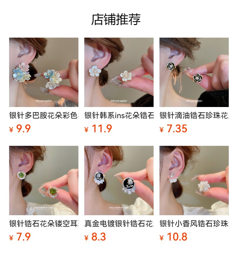 Pendientes de concha de cristal de circón de aguja de plata Pendientes de moda simples exquisitos Pendientes de diseño de personalidad femenina Sensación de nicho de alto nivel