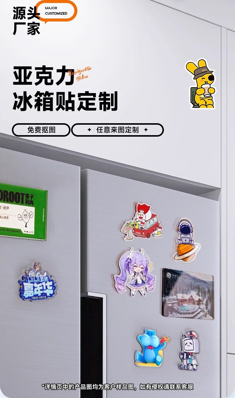 Pegatinas de nevera de acrílico, fotos de gatos, imágenes, pegatinas magnéticas creativas personalizadas, logo, imán tridimensional, colgante