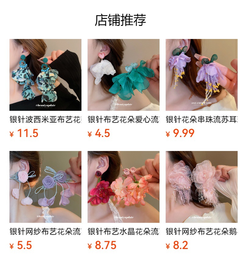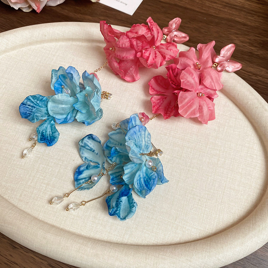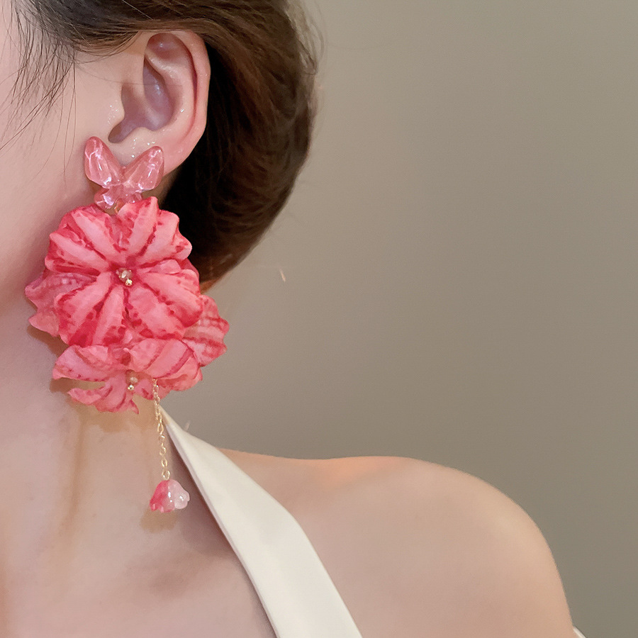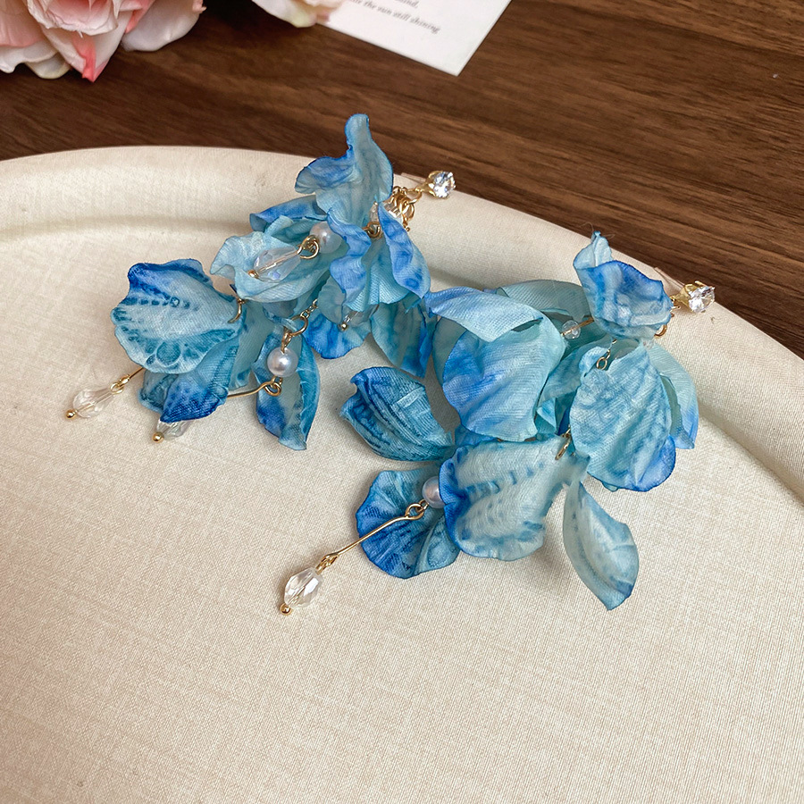 Aguja de plata, tela de circón, flores, borlas, pendientes de perlas, pendientes de estilo de vacaciones junto al mar, pendientes de todo fósforo, sentido de clase alta de nicho