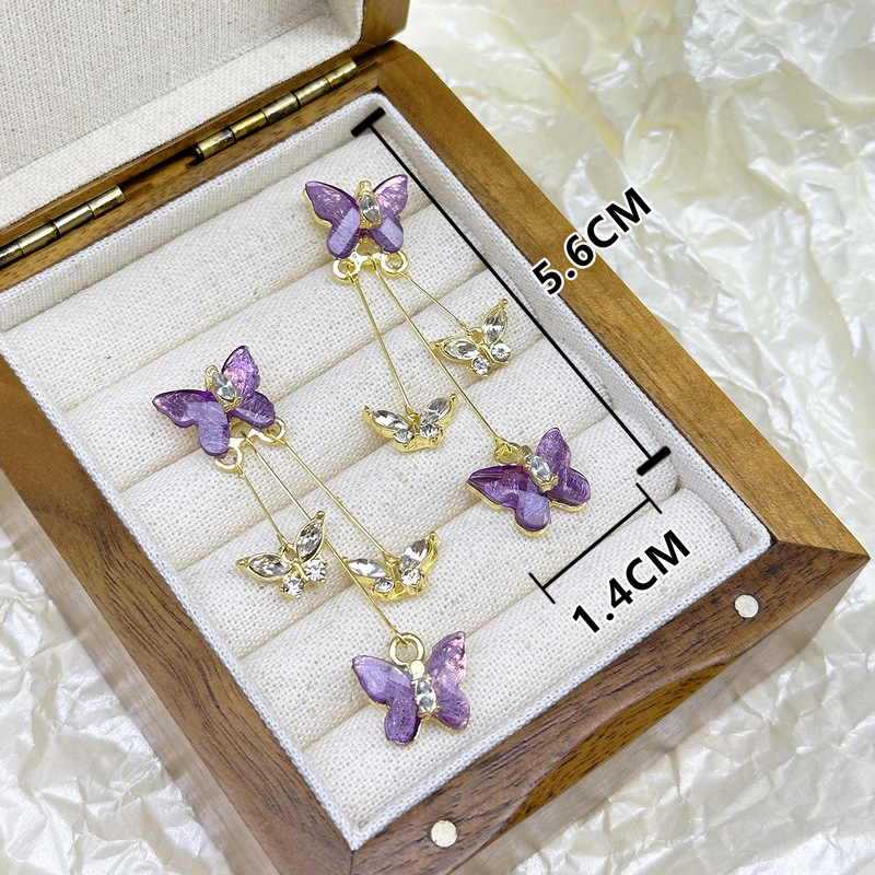 Pendientes de diseño de nicho de moda y exquisito todo fósforo Pendientes de temperamento de hadas Pendientes de borla de mariposa de cristal púrpura