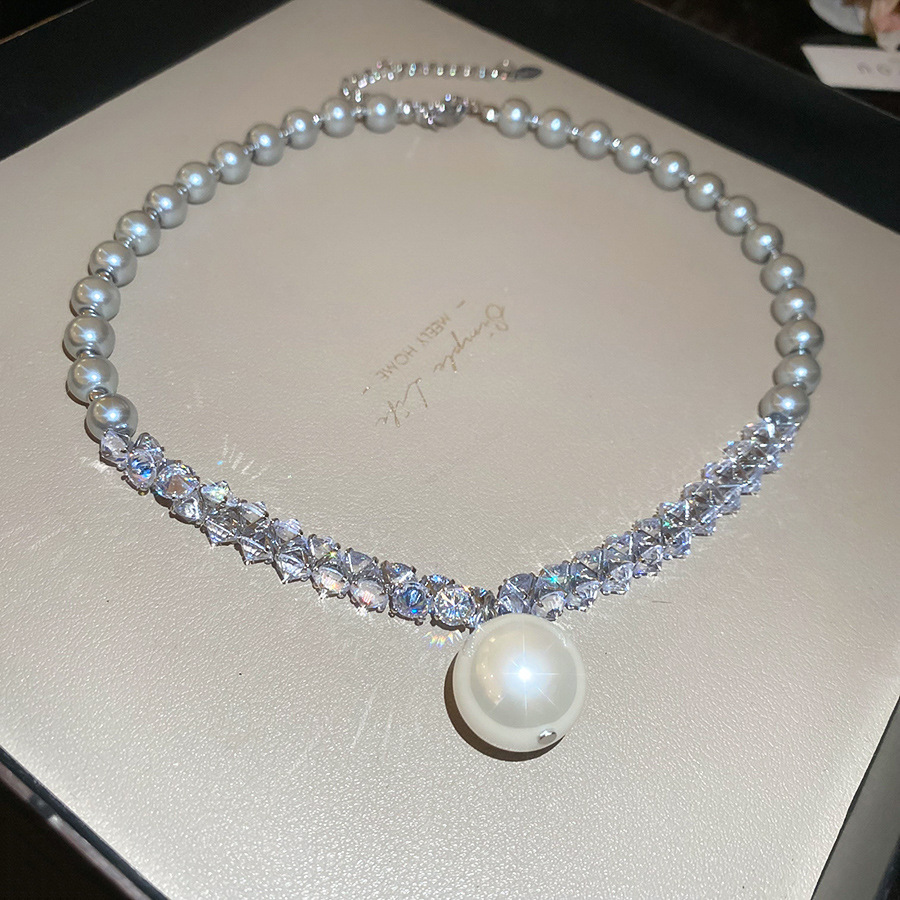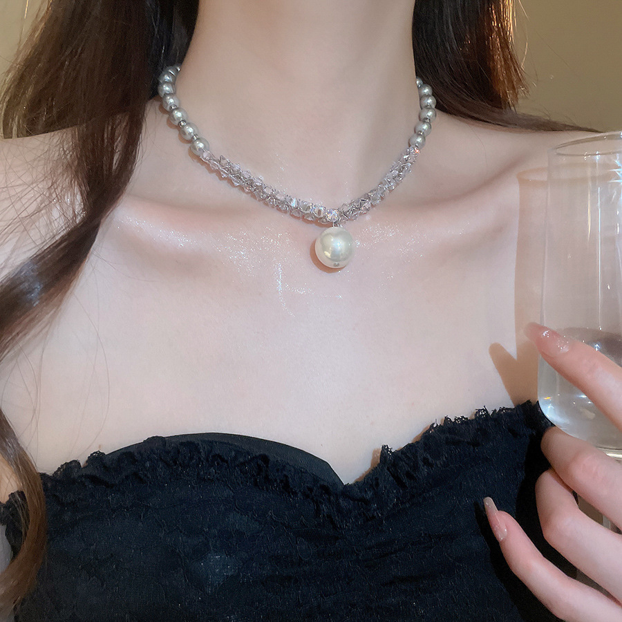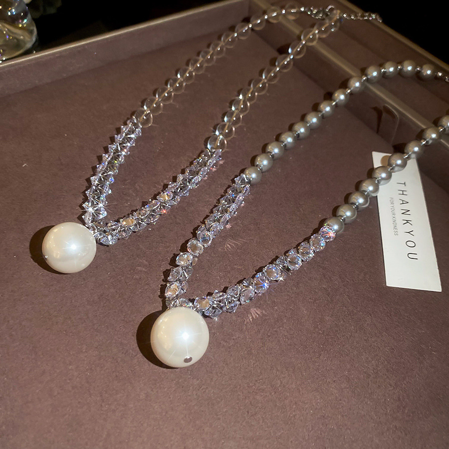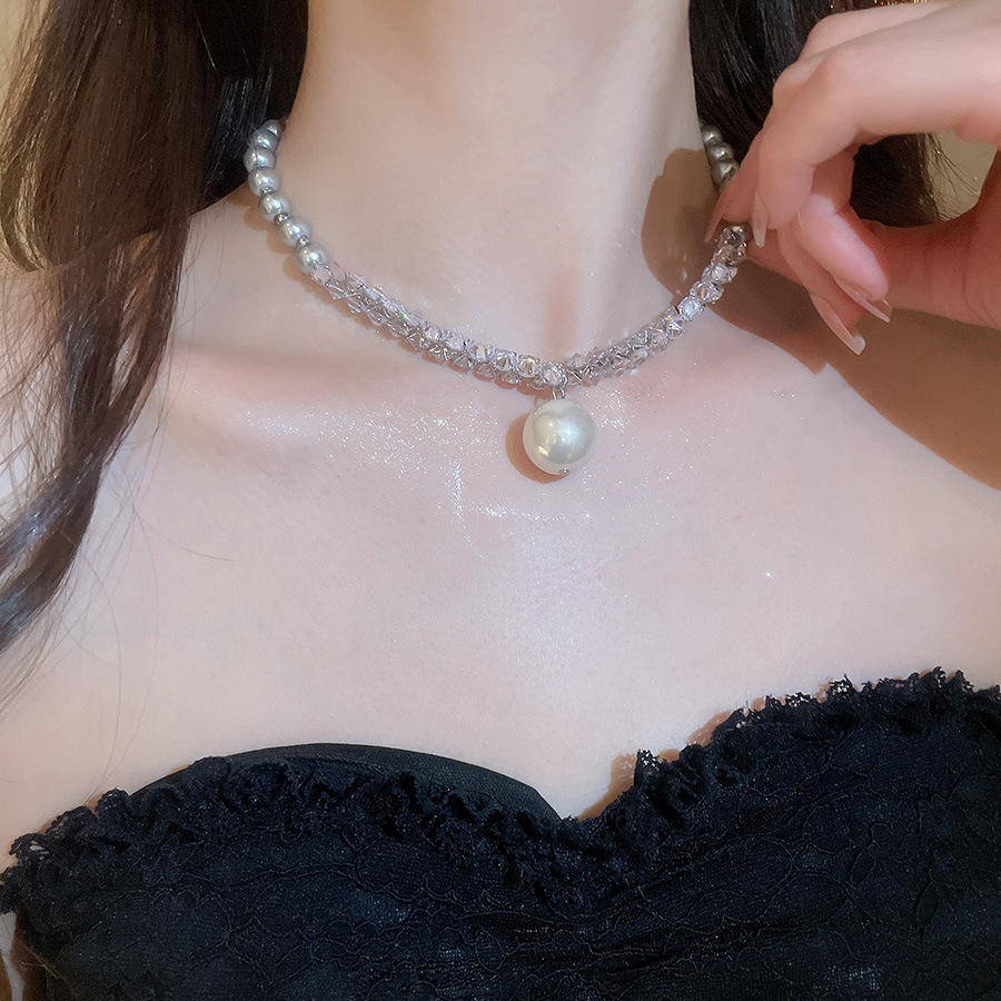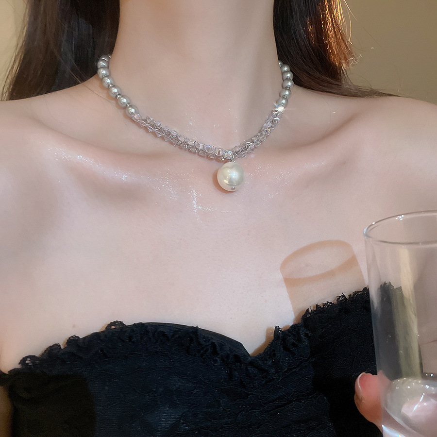 Nuevo collar colgante de diamantes de perlas grises de estilo europeo y americano, cuentas femeninas, diseño simple de lujo ligero, cadena de clavícula de todo fósforo, collar