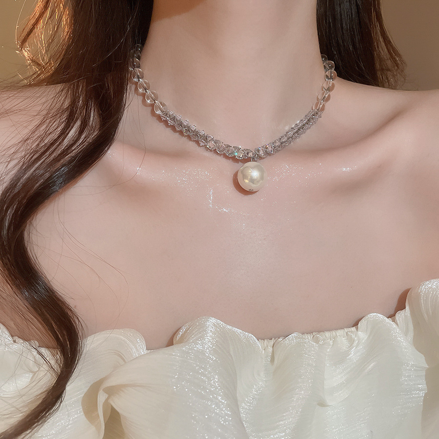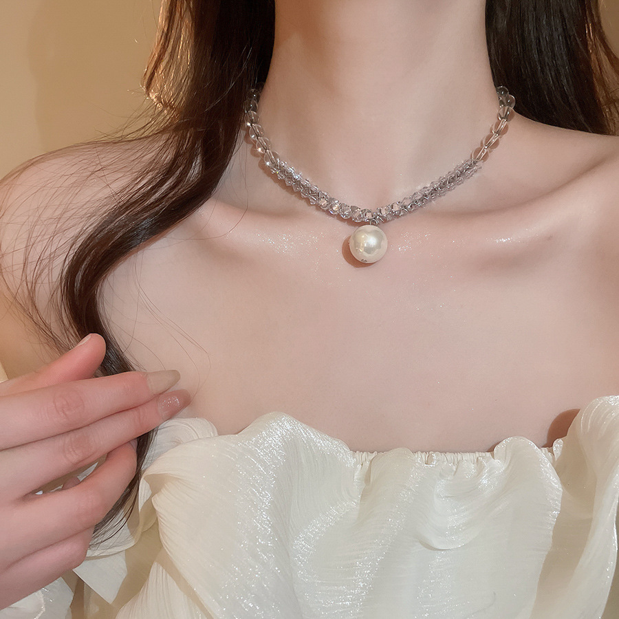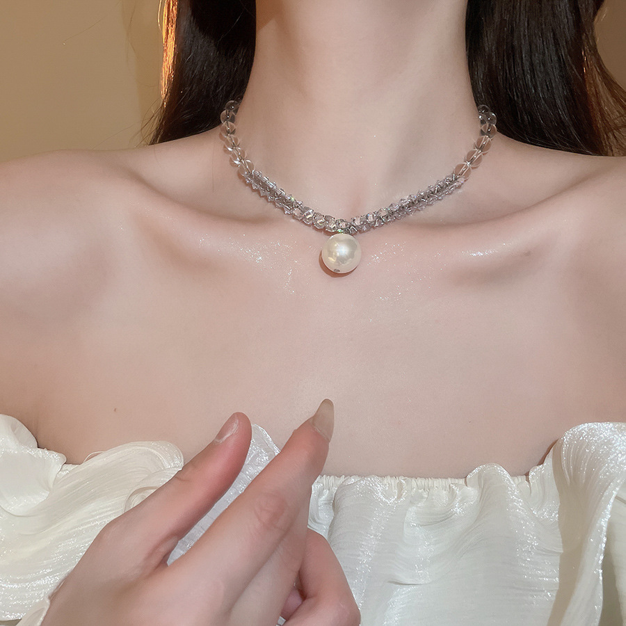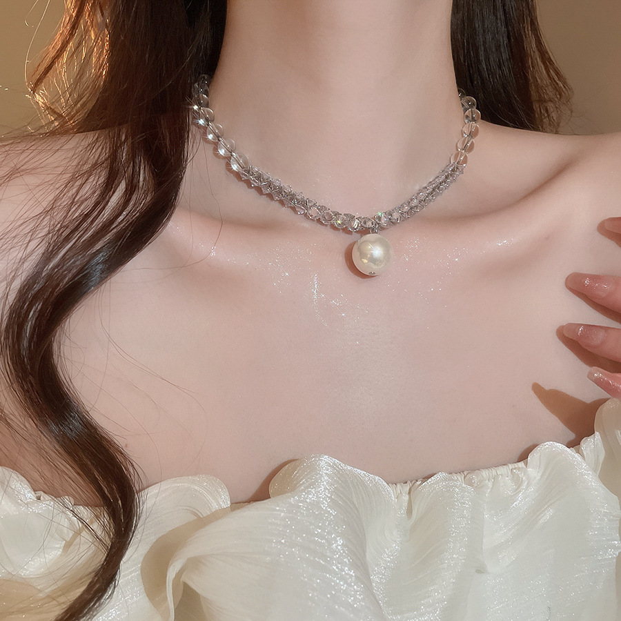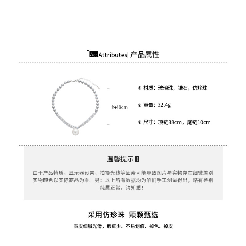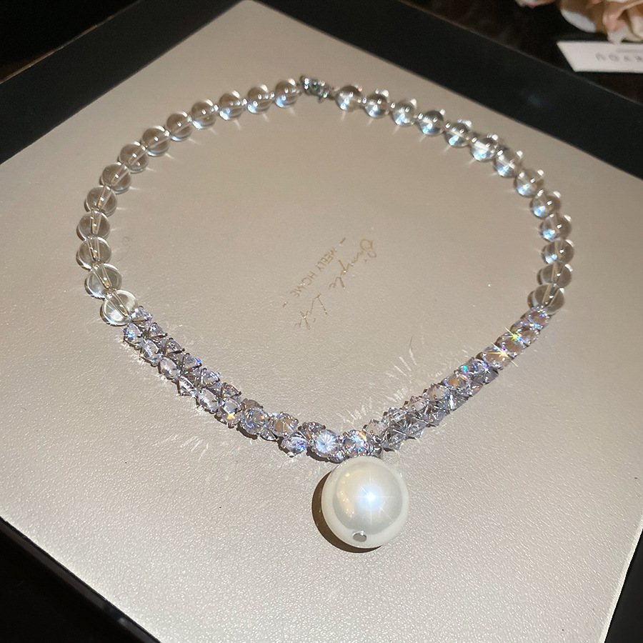 Nuevo collar colgante de diamantes de perlas grises de estilo europeo y americano, cuentas femeninas, diseño simple de lujo ligero, cadena de clavícula de todo fósforo, collar
