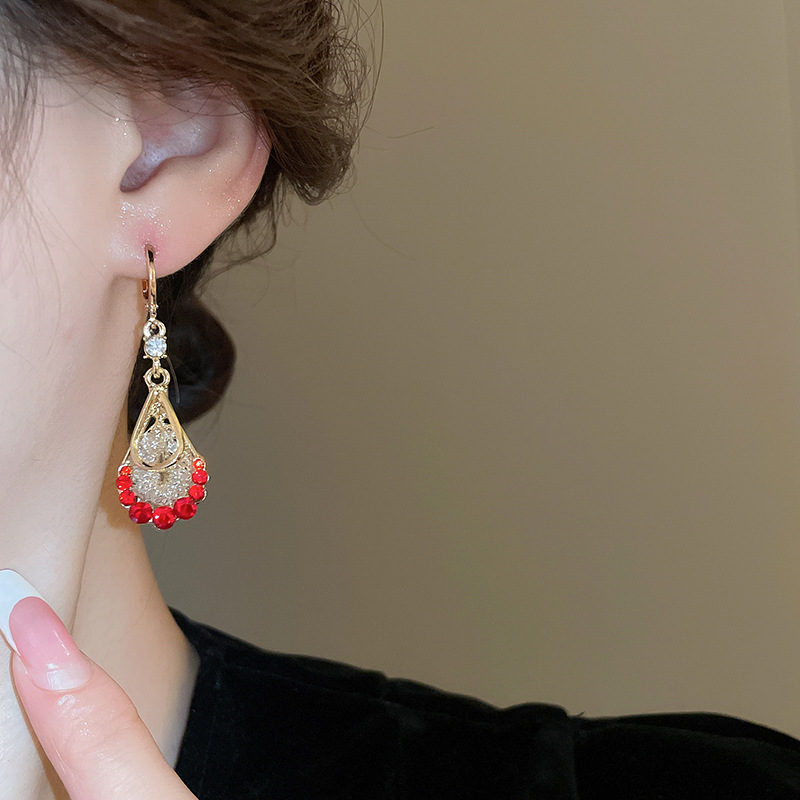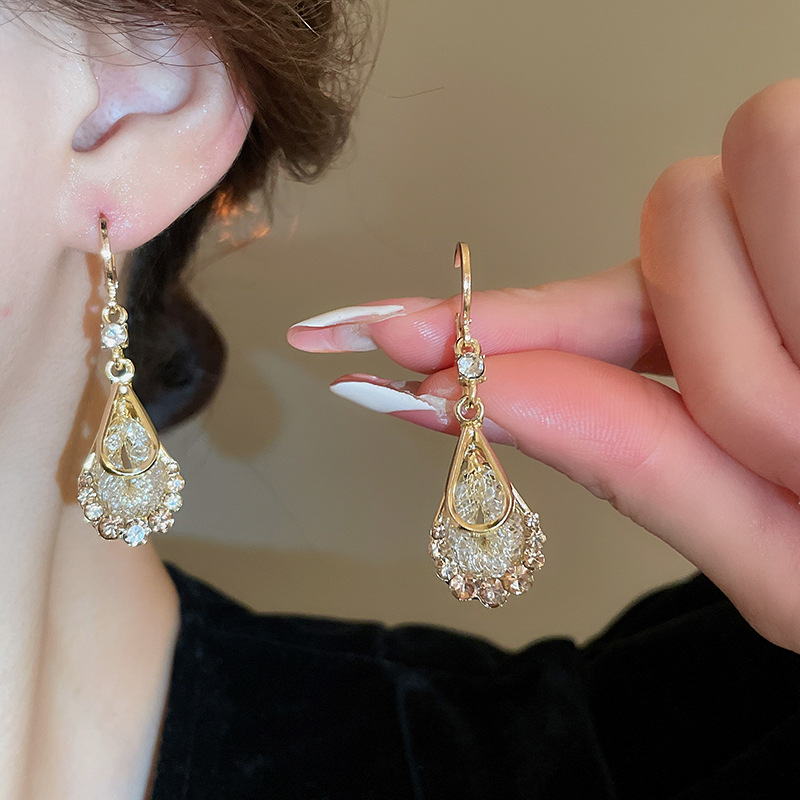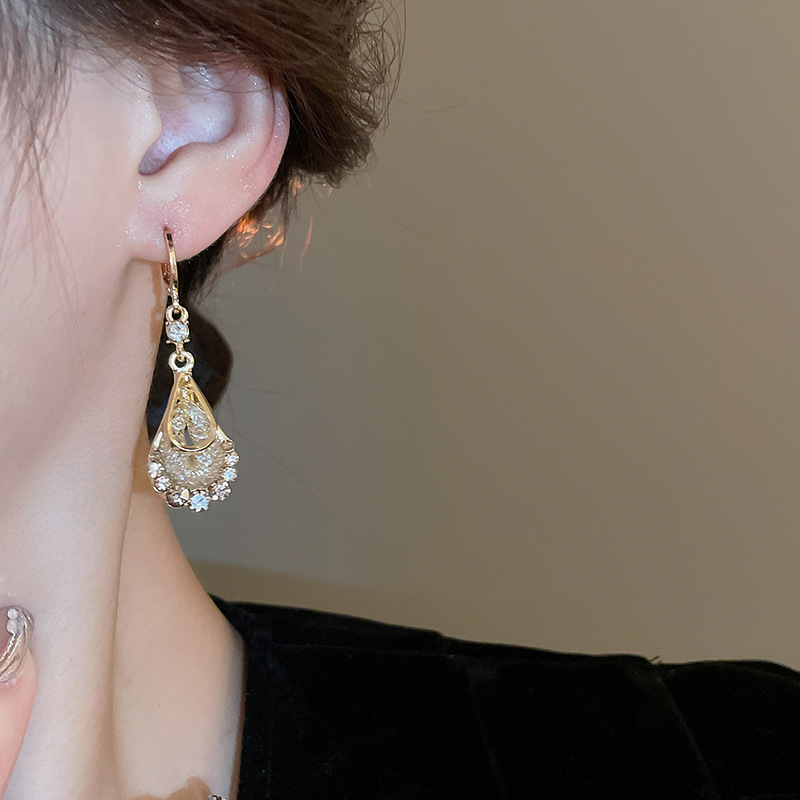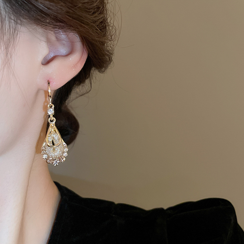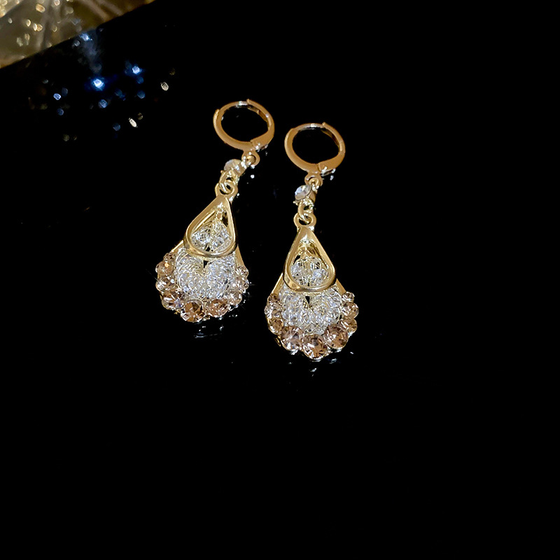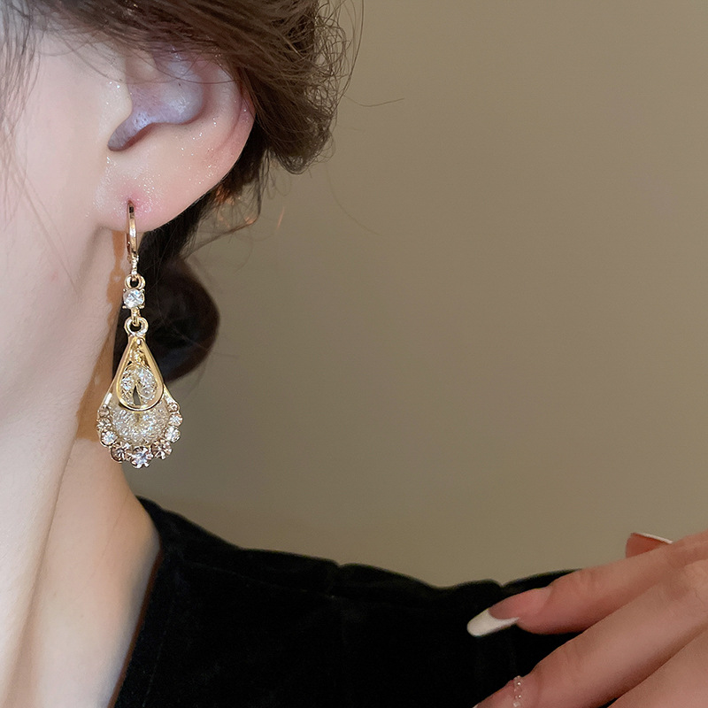 Pendientes de circonita de malla de gota de doble capa de diamantes, pendientes de estilo palacio retro, pendientes de temperamento de moda, lujo ligero, sentido de alta gama