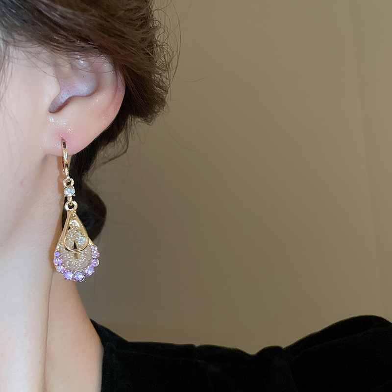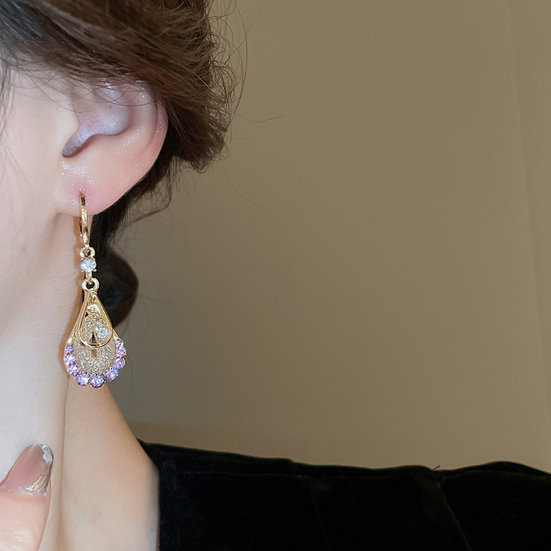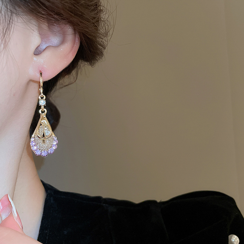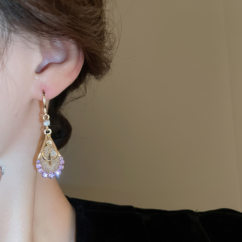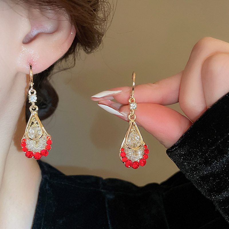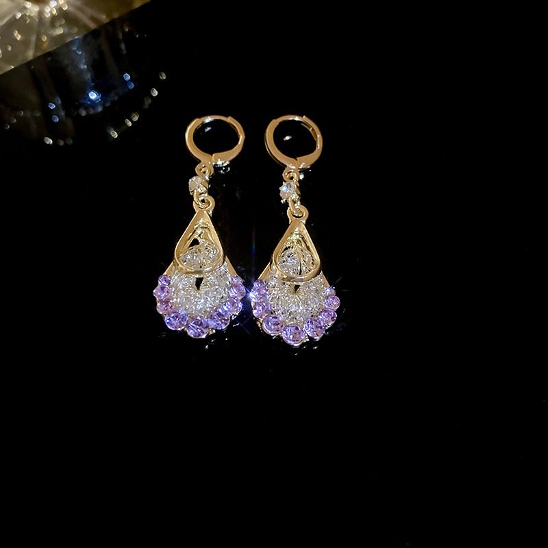 Pendientes de circonita de malla de gota de doble capa de diamantes, pendientes de estilo palacio retro, pendientes de temperamento de moda, lujo ligero, sentido de alta gama