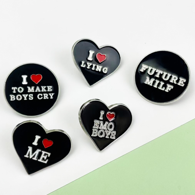 Insignia de metal con letras en inglés creativas europeas y americanas, personalidad, amor negro, ropa, bolsos, accesorios, broches transfronterizos