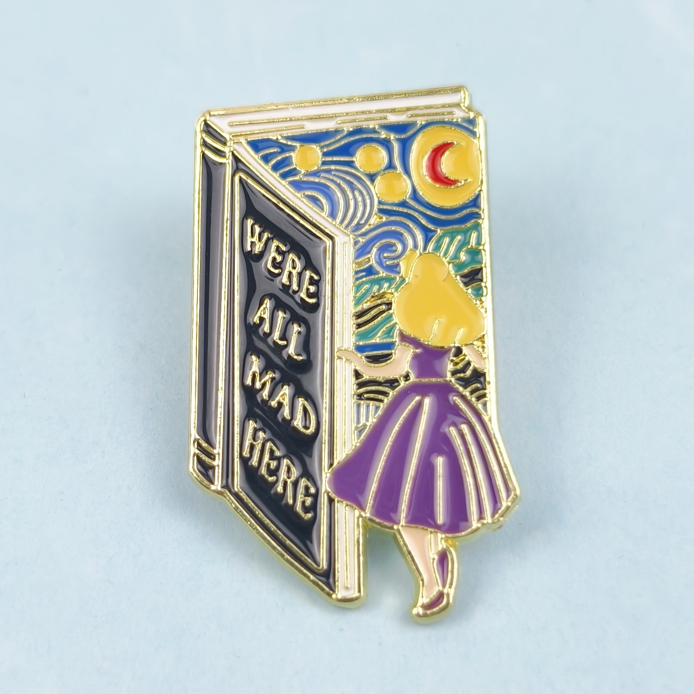Estrella europea y americana Noche de luna y princesa Broche de aleación Diseño de aceite de gota Adornos geométricos de dibujos animados Insignia de vestir Pin de cuello