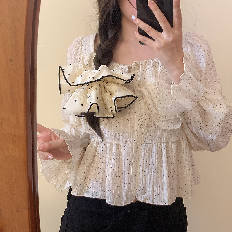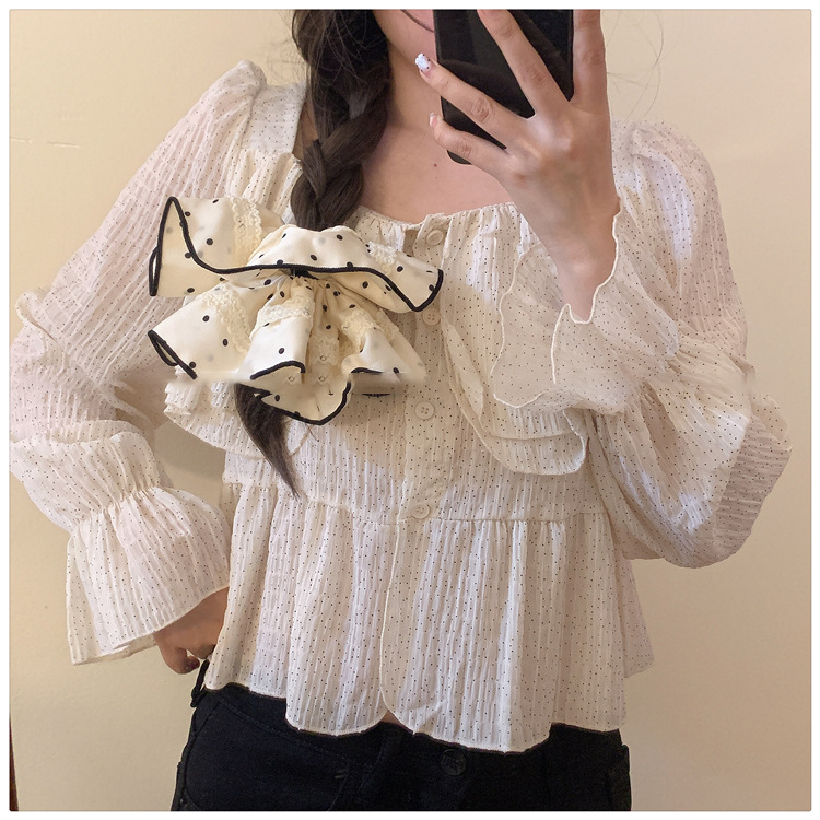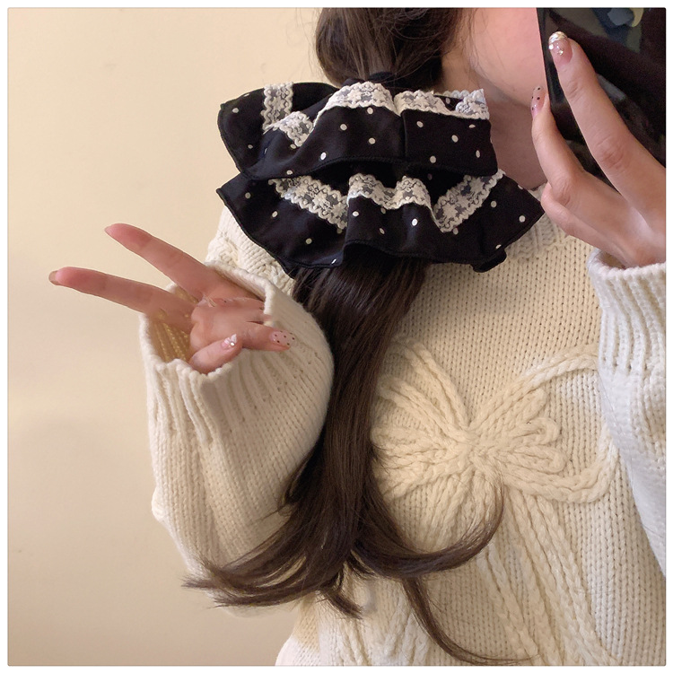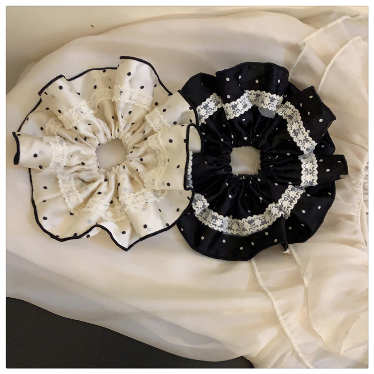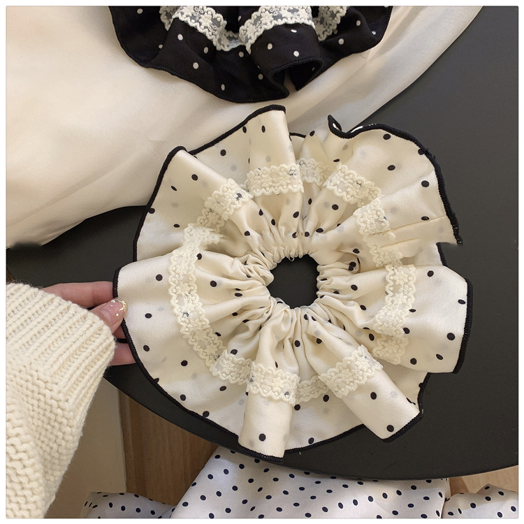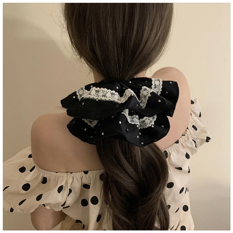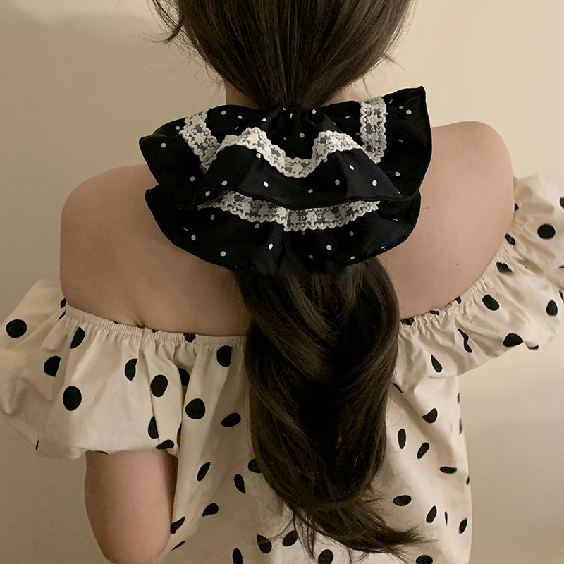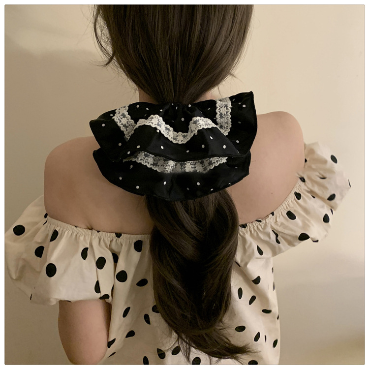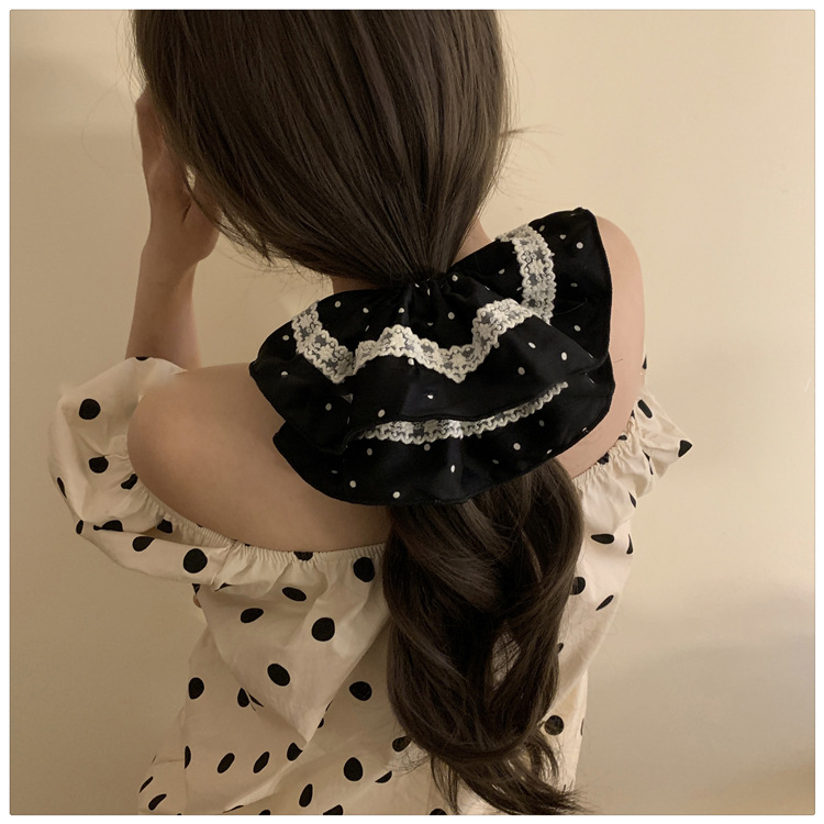 Tela satén encaje de lunares lazo para el cabello grueso retro temperamento suave cuerda para el cabello moda accesorios para el cabello de alta gama mujeres