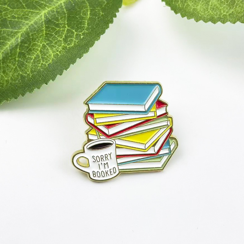 Libros personalizados Coffee Metal Broche Mochila simple para estudiantes Insignia de adornos Iins transfronterizos Accesorios geométricos Insignia