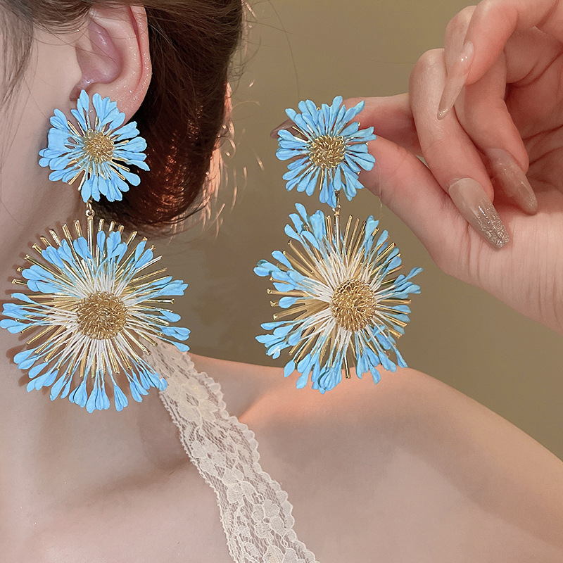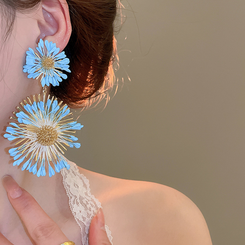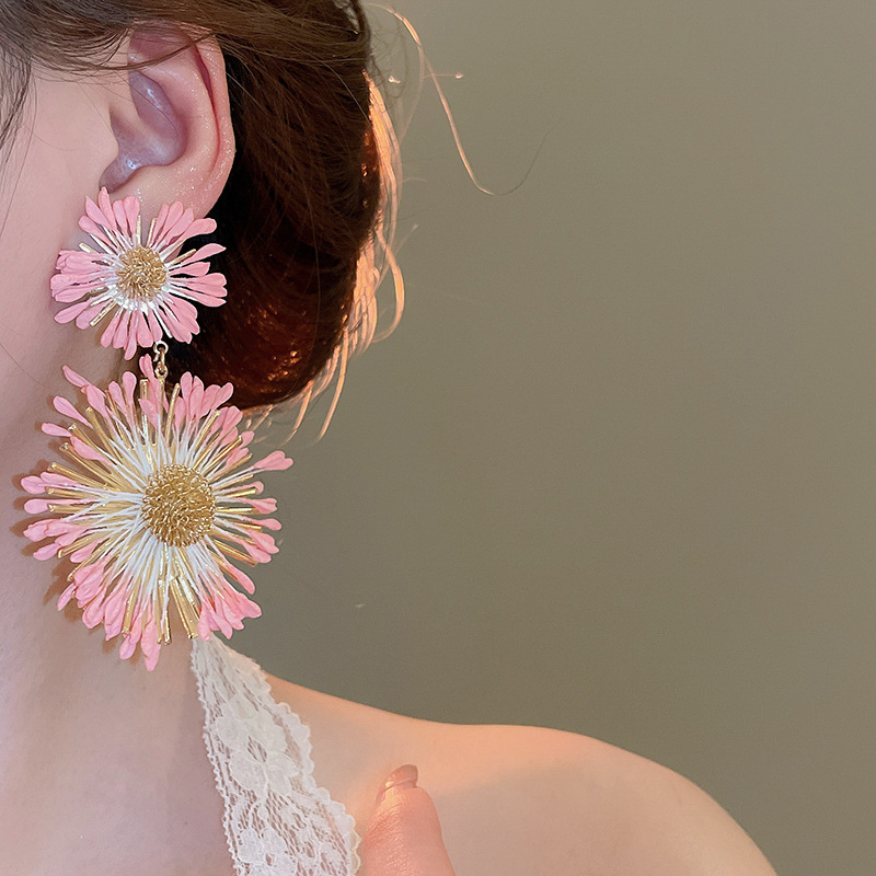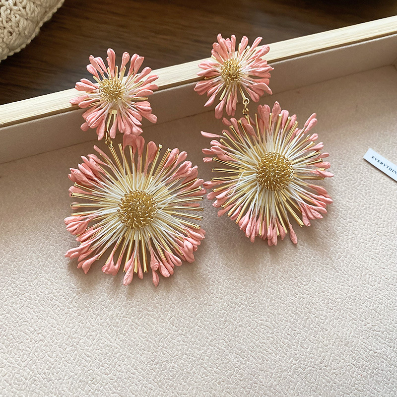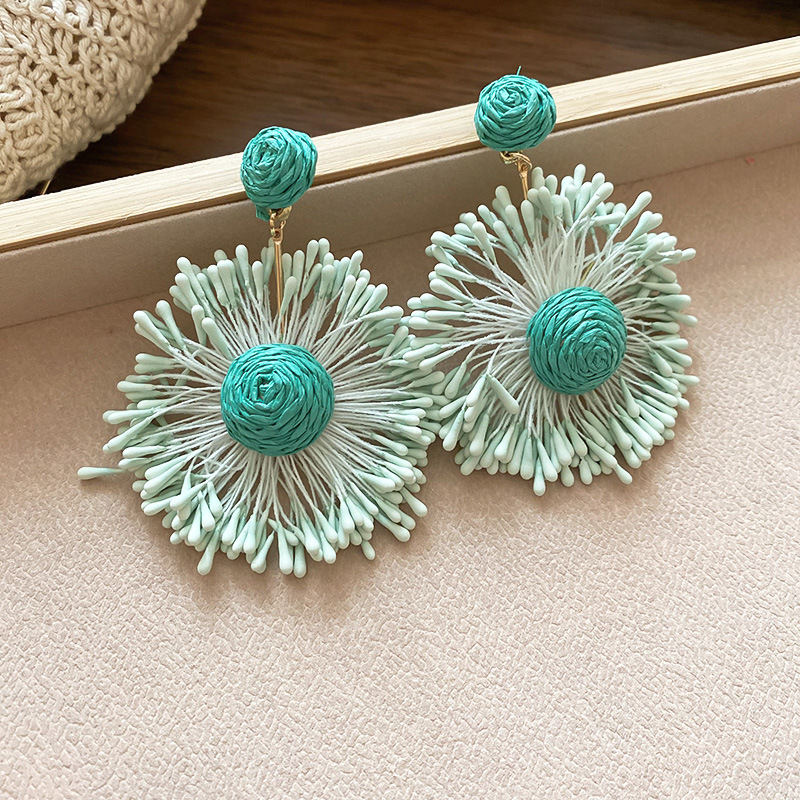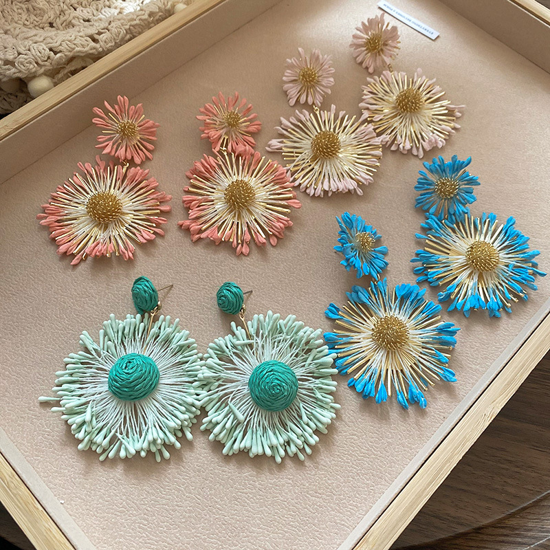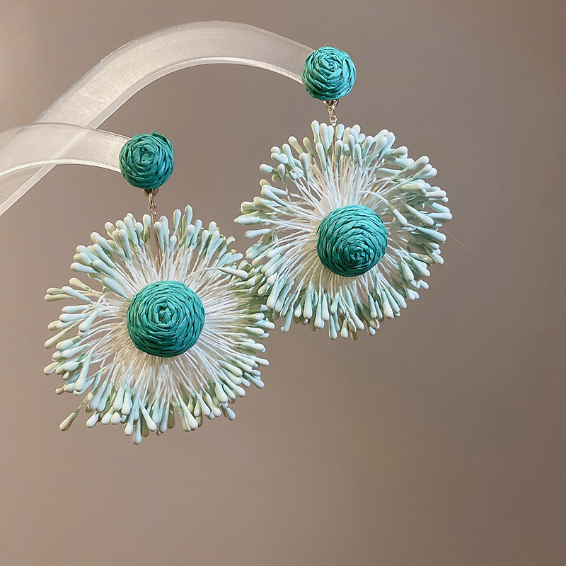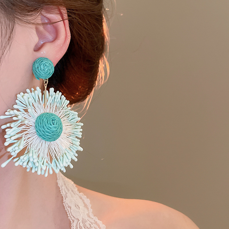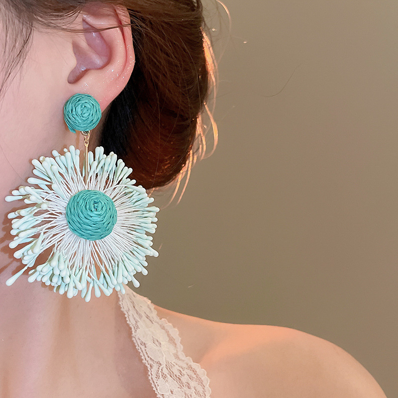 Pendientes de flores tejidas a mano con aguja de acero Pendientes de temperamento de estilo de vacaciones junto al mar Pendientes de moda Sensación de clase alta de nicho