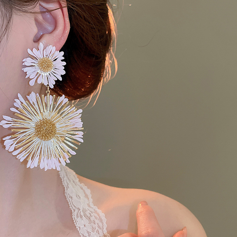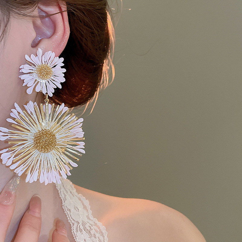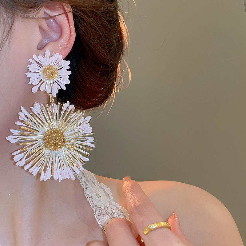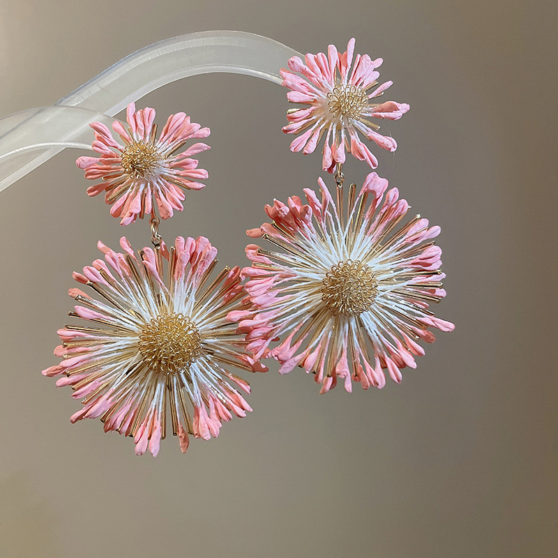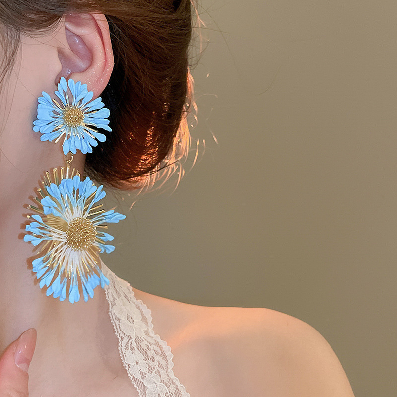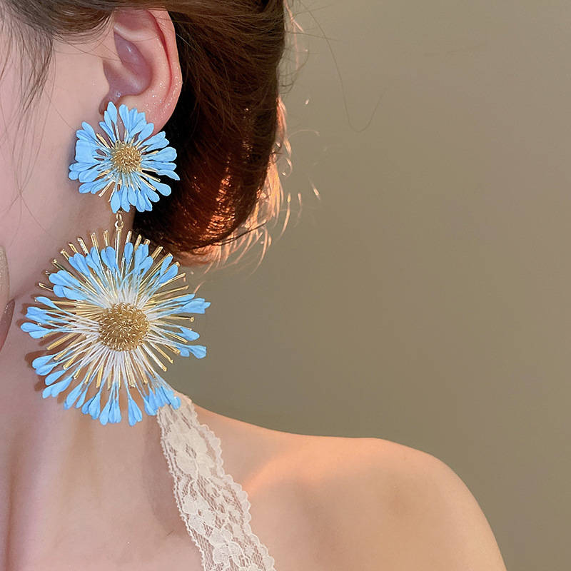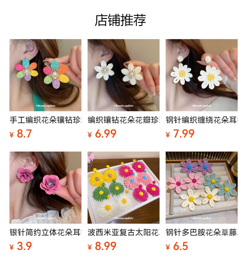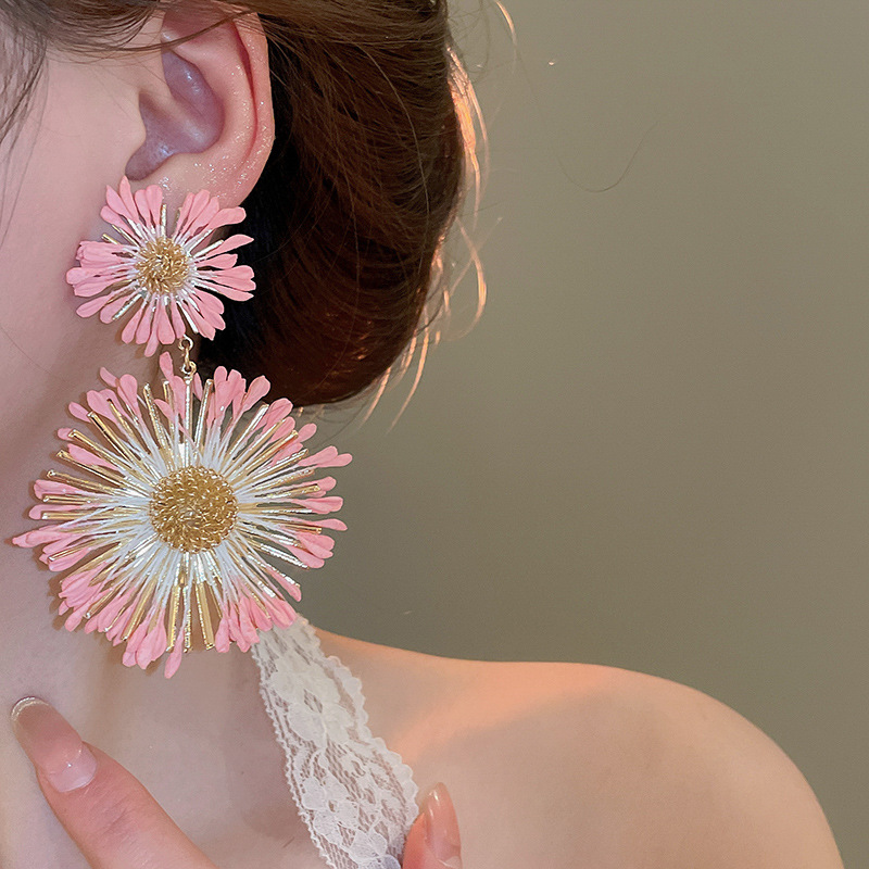 Pendientes de flores tejidas a mano con aguja de acero Pendientes de temperamento de estilo de vacaciones junto al mar Pendientes de moda Sensación de clase alta de nicho