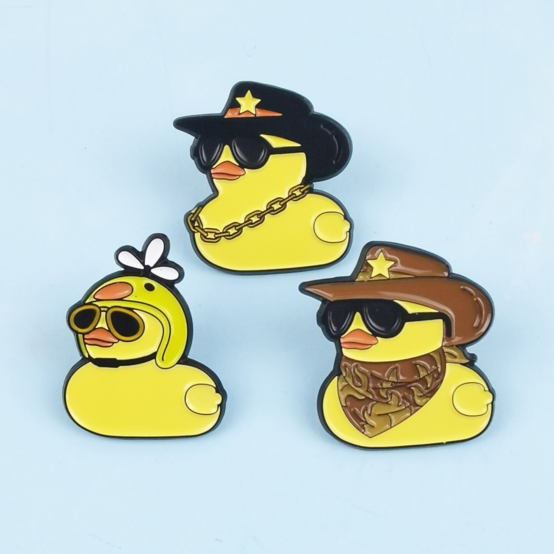 Broche con forma de pato amarillo frito fresco transfronterizo, bolso de pareja de dibujos animados lindo, accesorios fijos, pines de placa de aleación