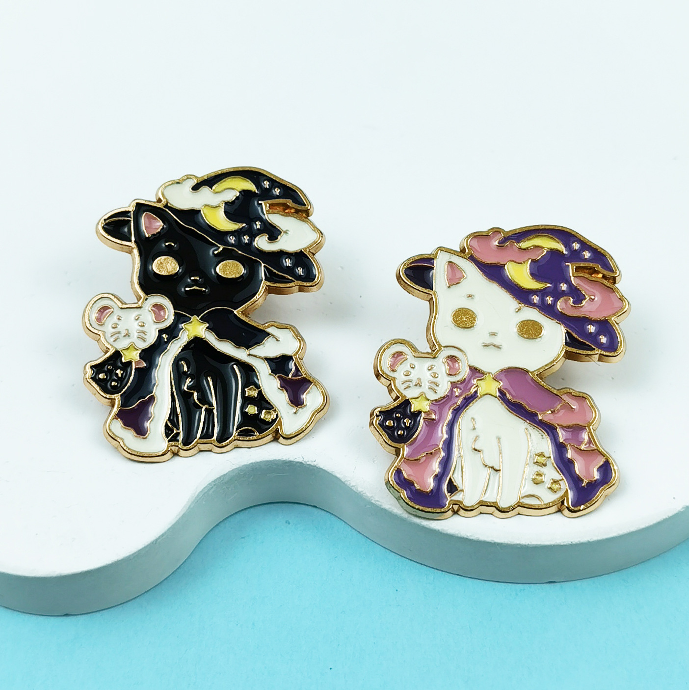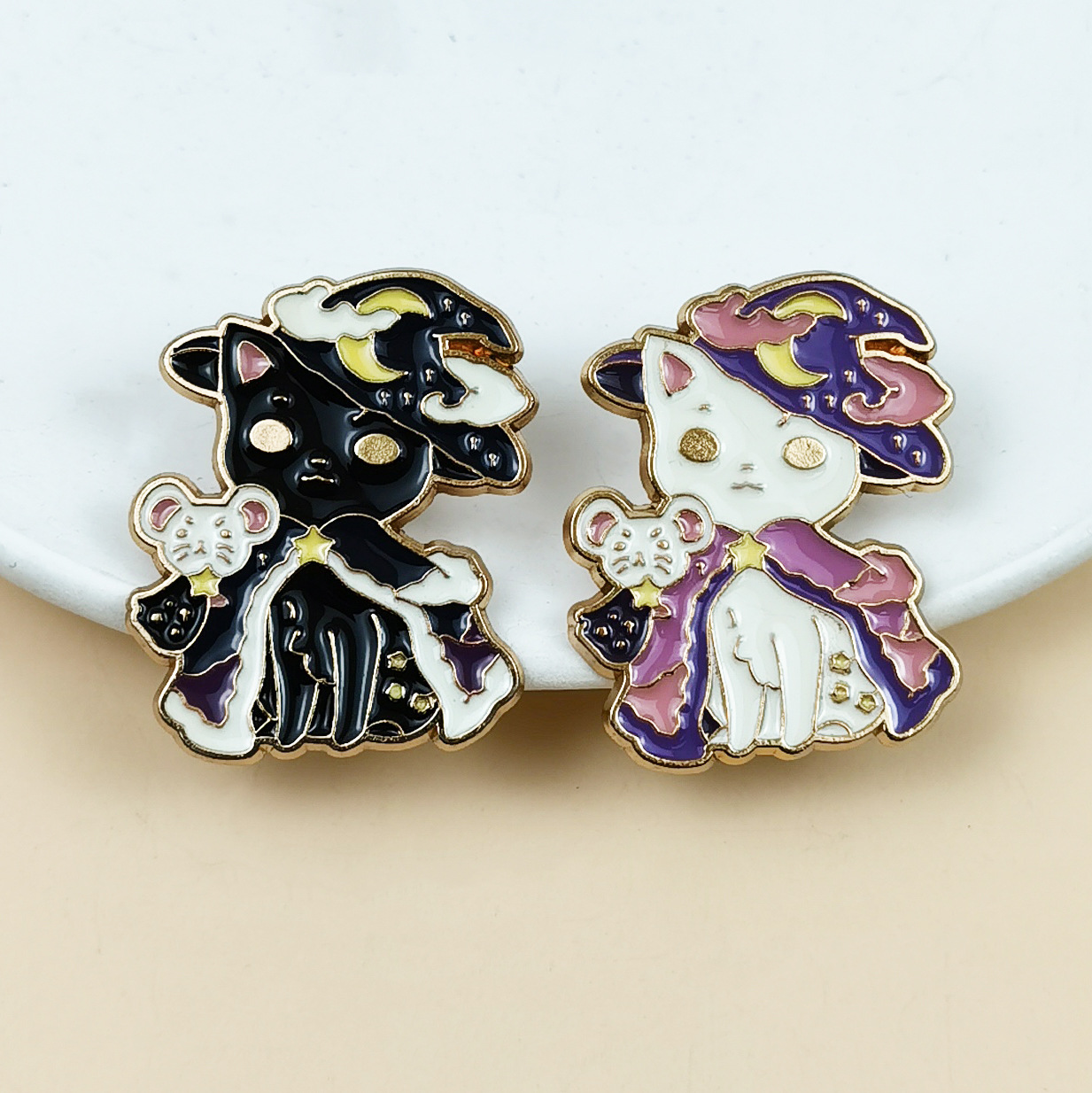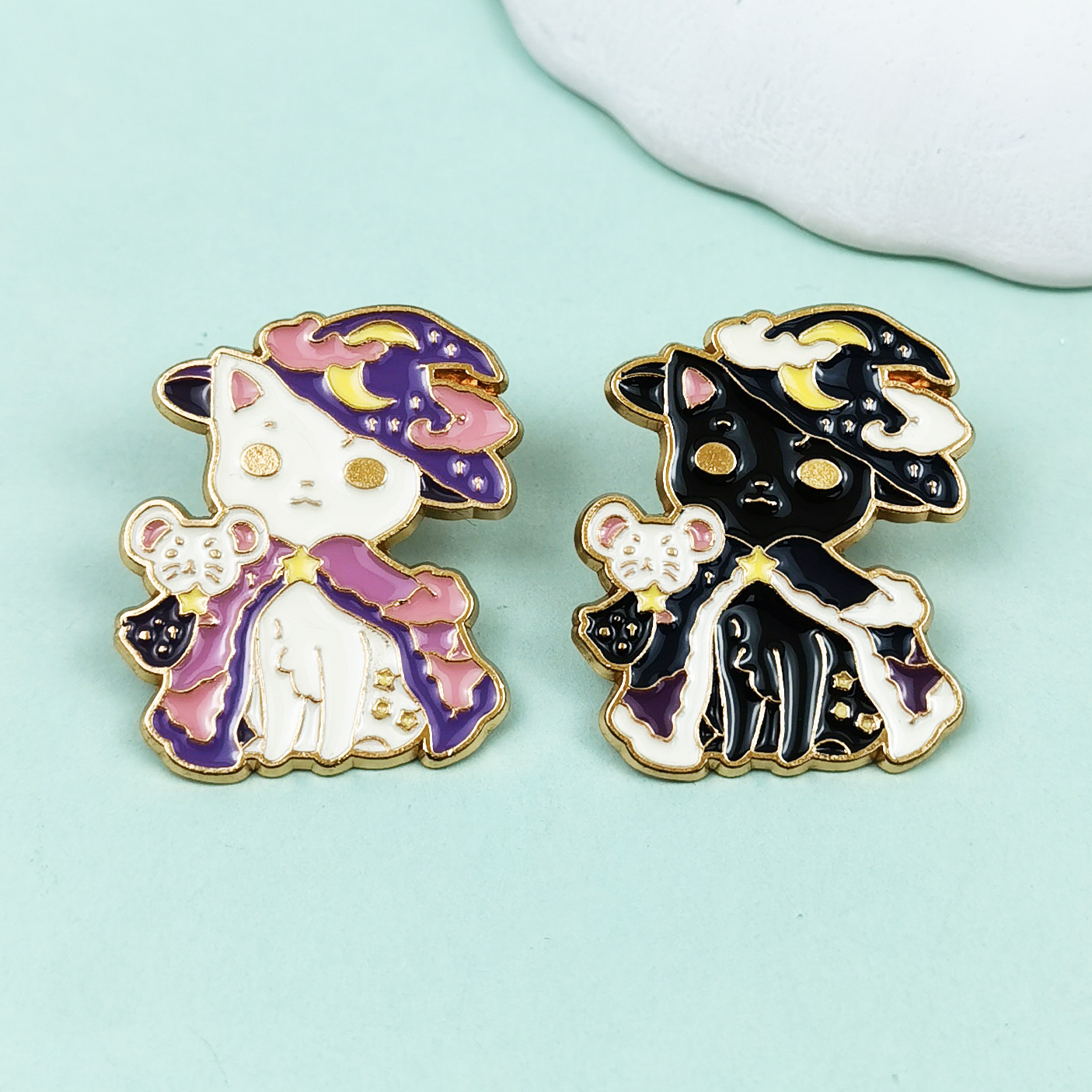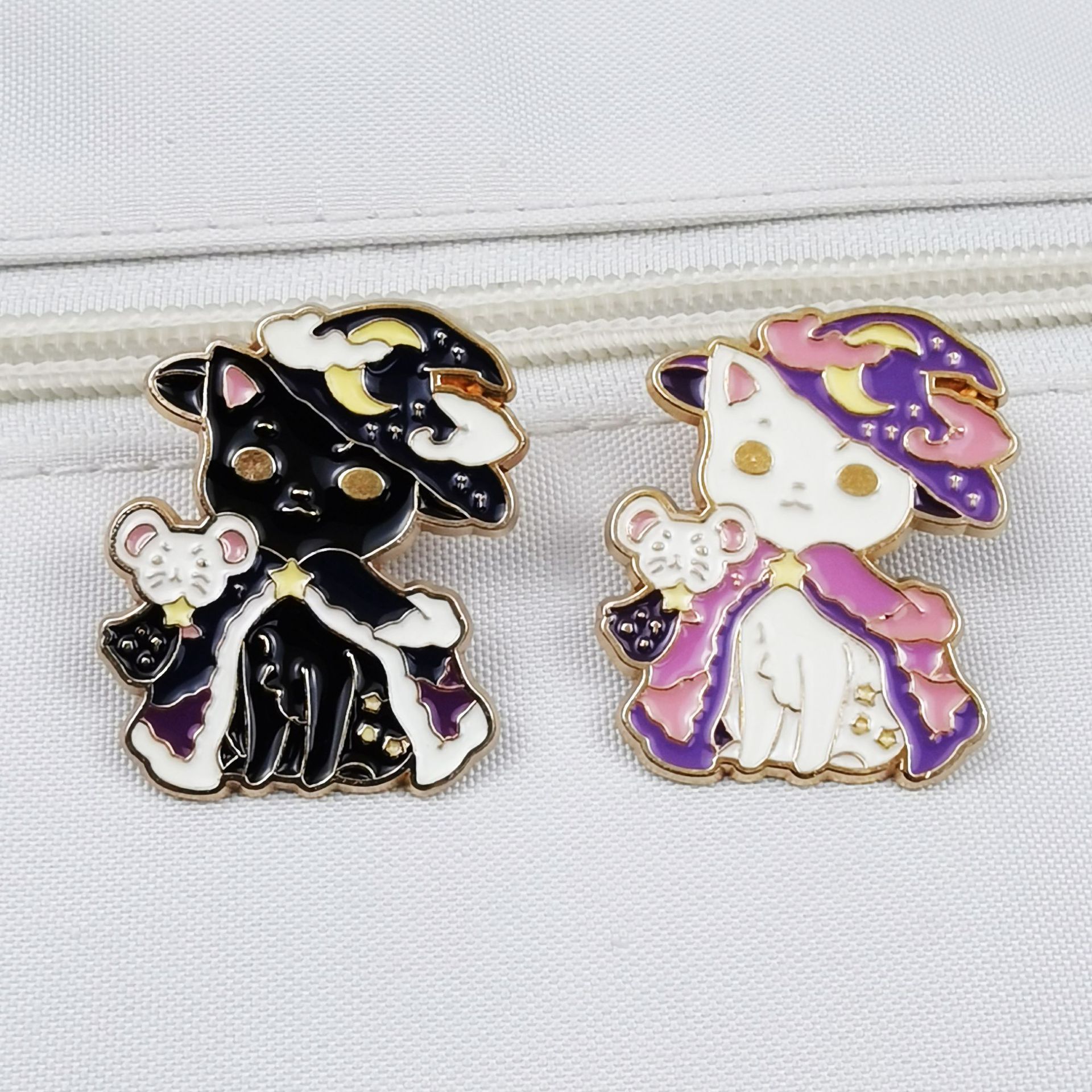 Broche de Gato de Dibujos Animados, Estilo Transfronterizo, Insignia de Aleación, Joyería, Accesorio de Ropa, Pin Blanco y Negro, Lindo