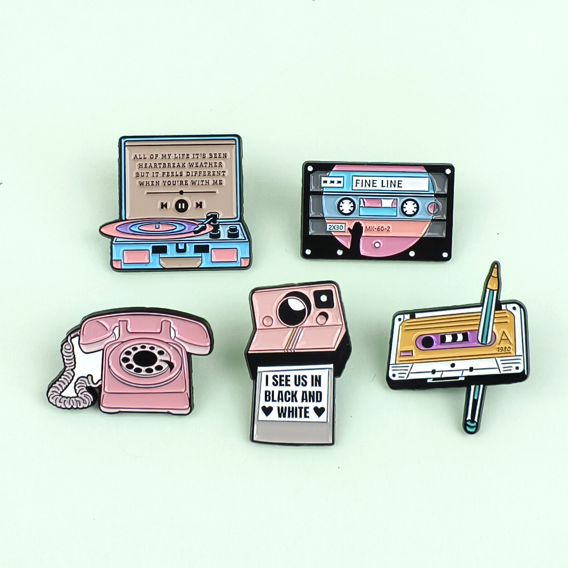 Insignia de serie de equipos electrónicos de dibujos animados, forma creativa, cinta, cámara, accesorios de teléfono, broche de aleación, lugar transfronterizo