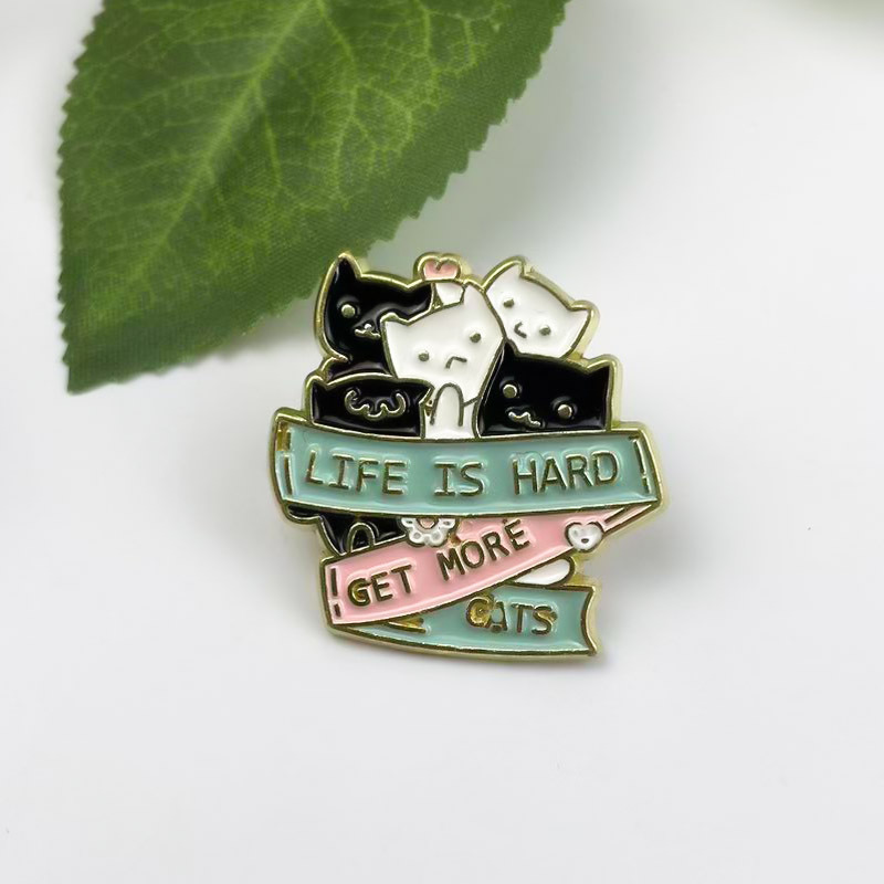 Comercio exterior dibujos animados lindo gatito broche joyería personalidad letras en inglés top mochila decoración pin insignia