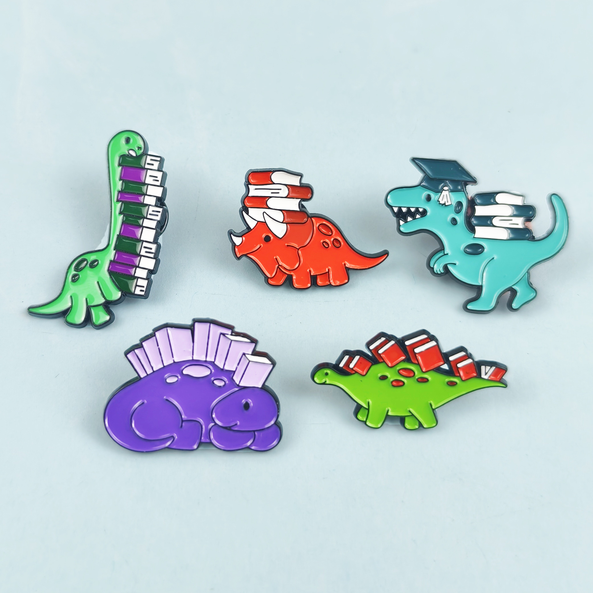 Insignia de broche de aceite de gota de aleación de dibujos animados, joyería europea y americana transfronteriza, lindo dinosaurio, aprendizaje, accesorios de libro, broche en stock