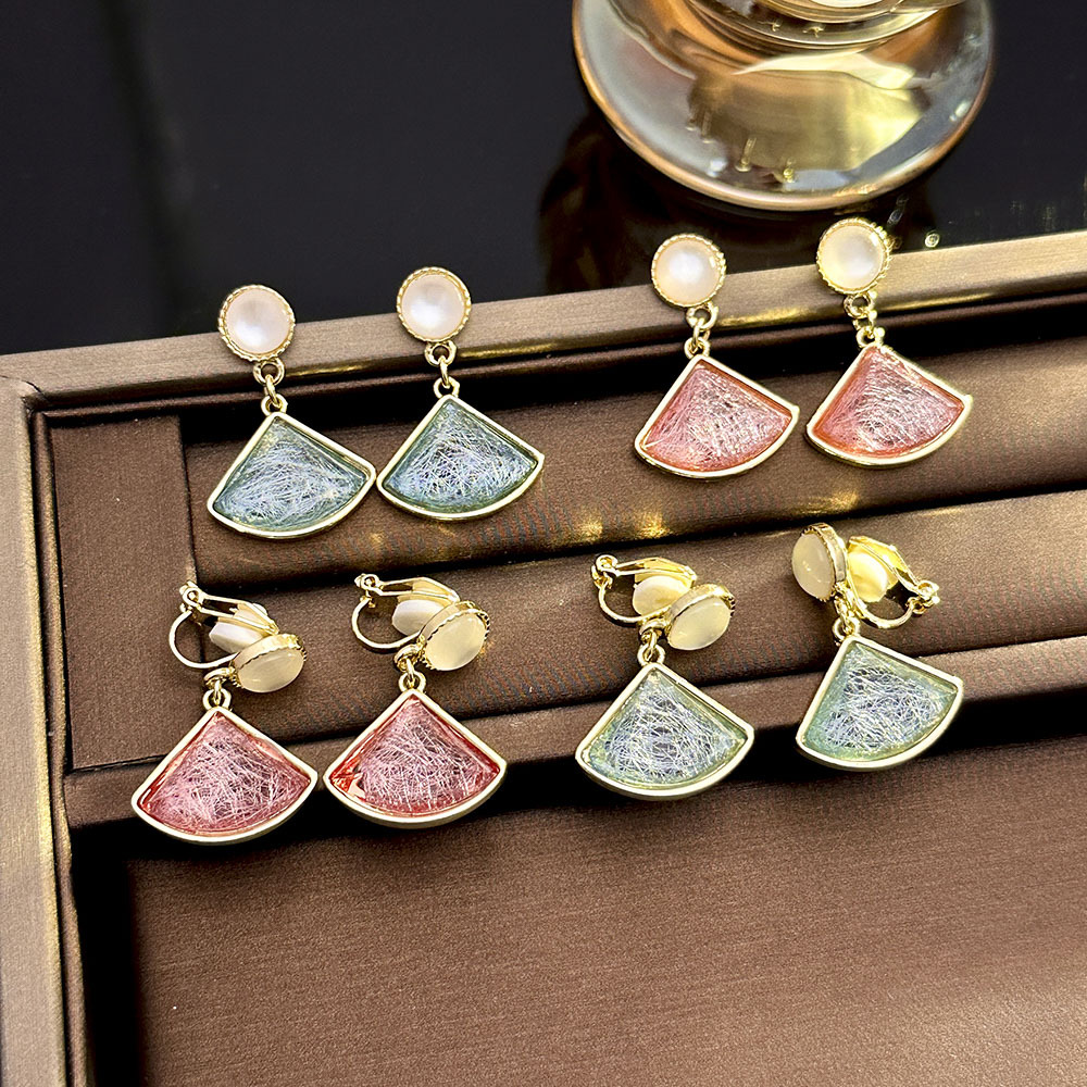 Pinza de oreja en forma de abanico de cristal de moda coreana Pendientes de diseño de nicho de alta gama sin orejas perforadas Pendientes de lujo ligero de nicho simple