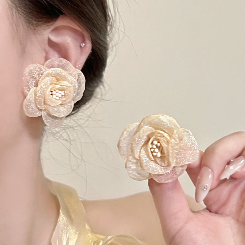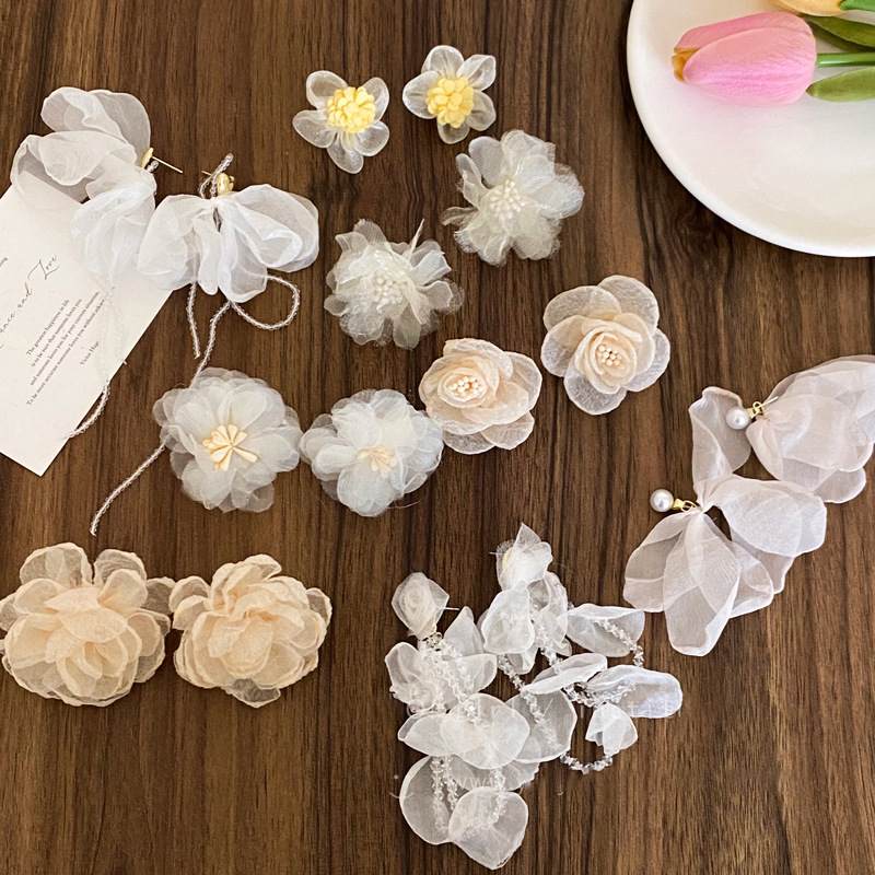 Pendientes de borla de flores de hilo de malla de tela de aguja de plata Pendientes dulces y frescos Pendientes de todo fósforo de moda Sensación de alto nivel de nicho