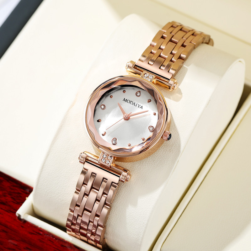 Transfronterizo transmisión en vivo elegante ronda estudiante femenina reloj de cuarzo de diamante de moda coreana mujer multi-color dial correa de acero reloj femenino