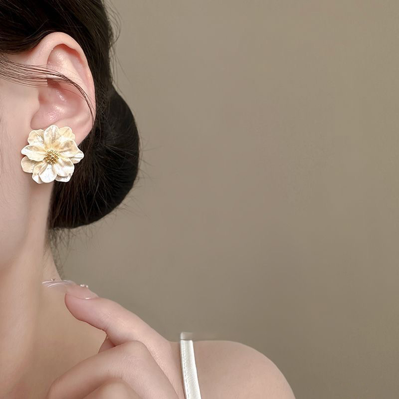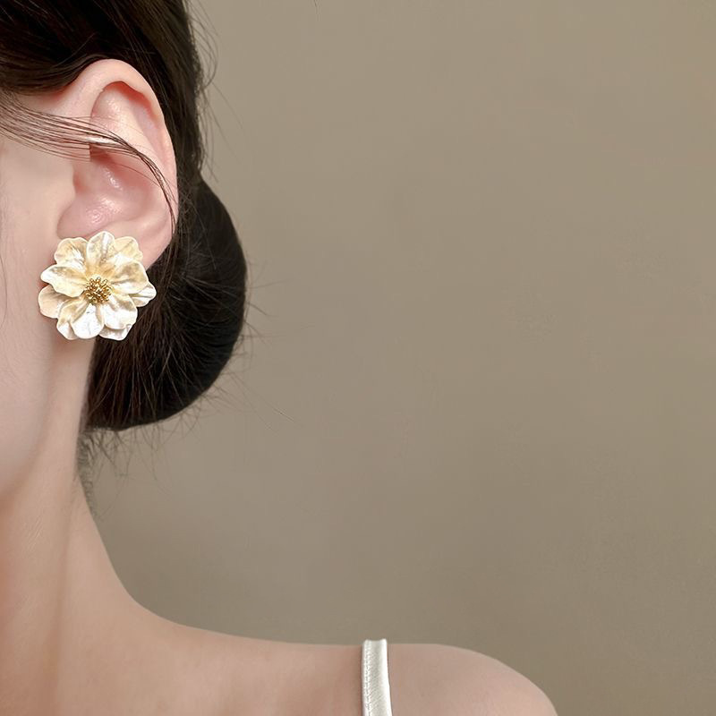 Pendientes de camelia de simulación de aguja de plata Pendientes elegantes retro francés Pendientes de todo fósforo de moda personalizada