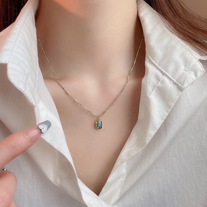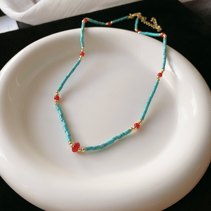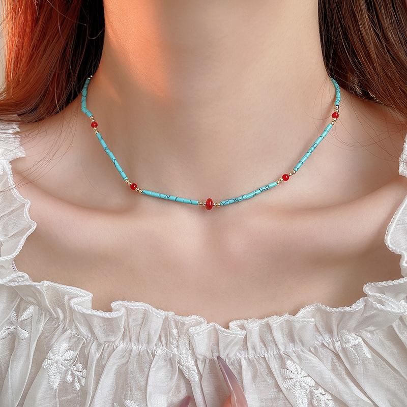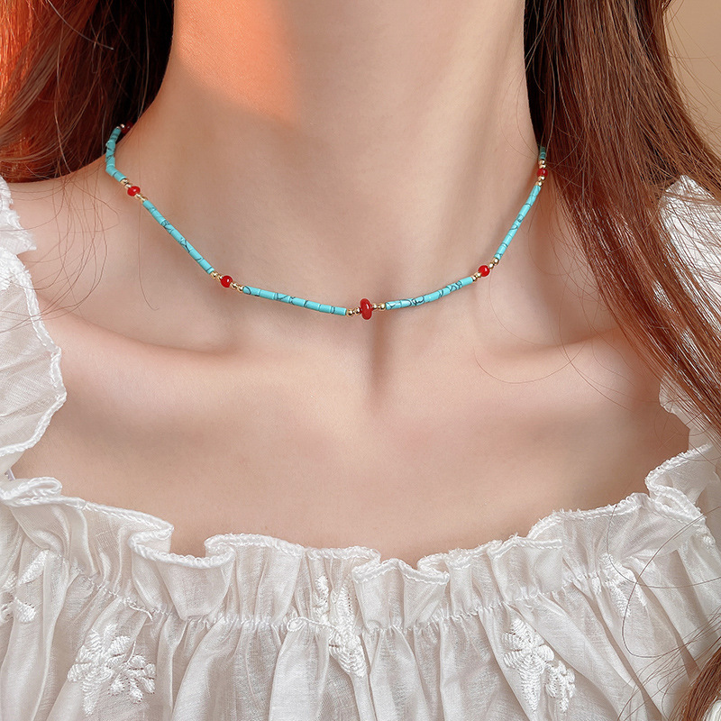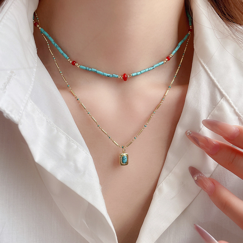 Collar de doble capa con cuentas de piedra artificial bohemia, cadena de clavícula de moda de temperamento, collar retro exquisito de alta gama