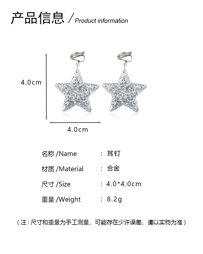 Pendientes de estrella de diamantes de moda de lujo ligero, sin orejas perforadas, pendientes de nicho europeos y americanos de alta gama, pendientes de estrella de cinco puntas individuales para mujer