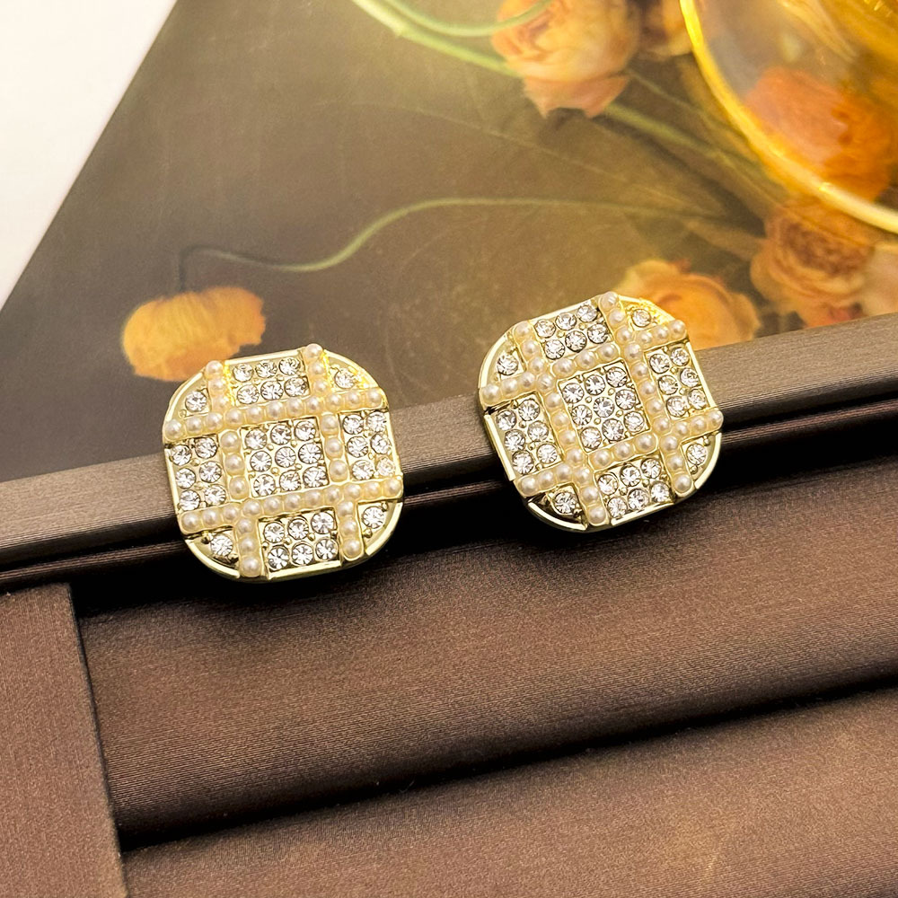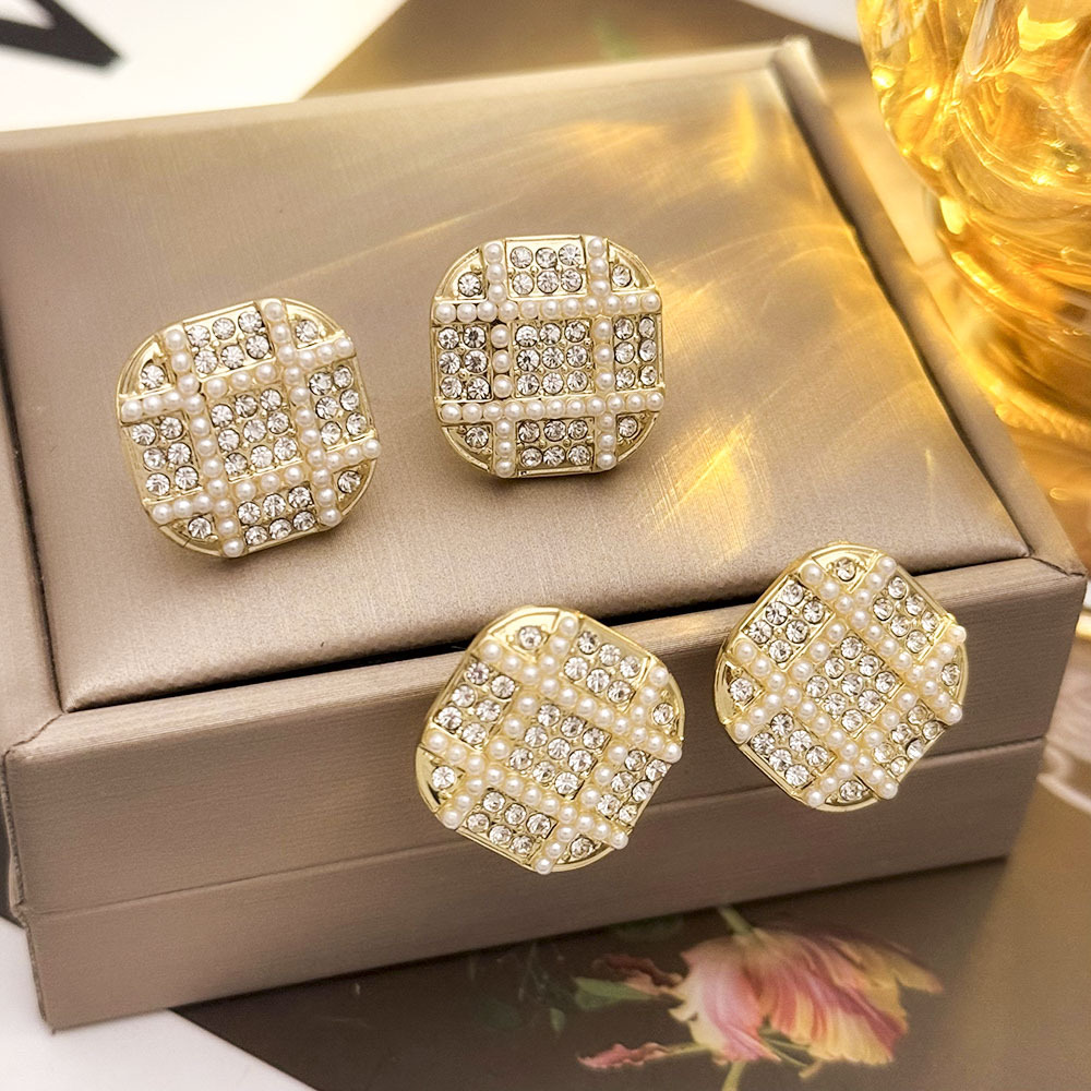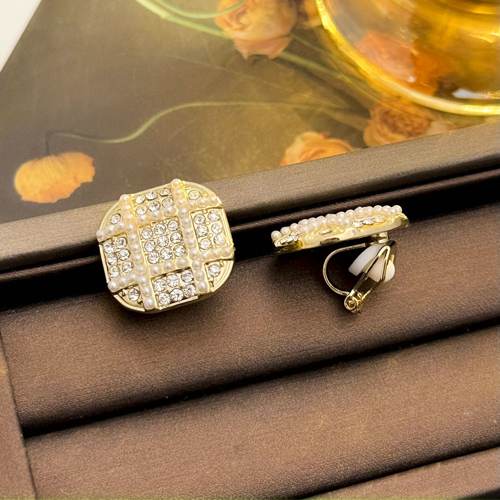Pendientes geométricos de perlas con incrustaciones de diamantes coreanos sin orejas perforadas Pendientes de temperamento de nicho de alta gama Pendientes simples de moda de lujo ligero