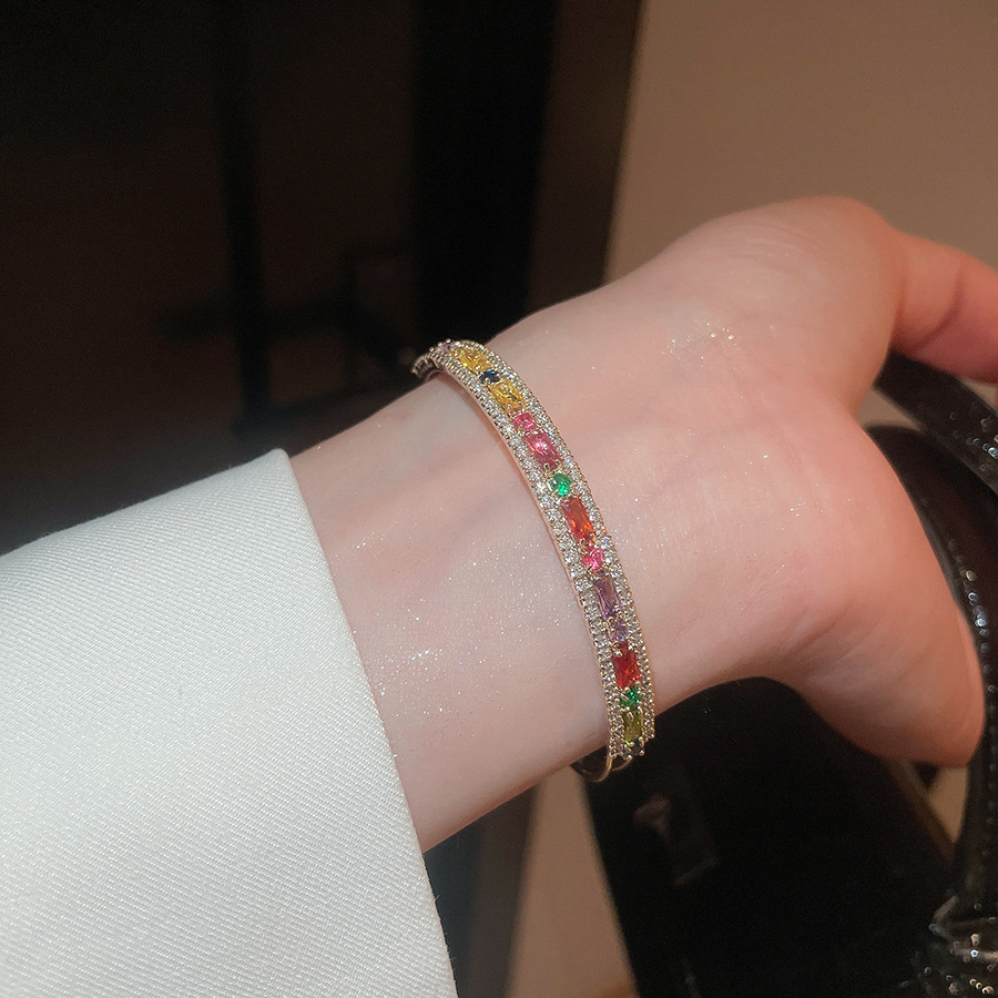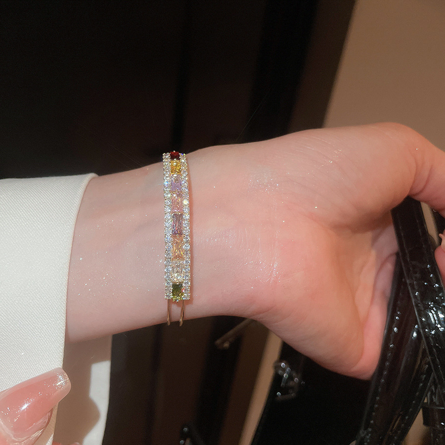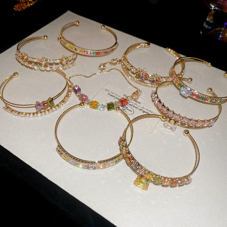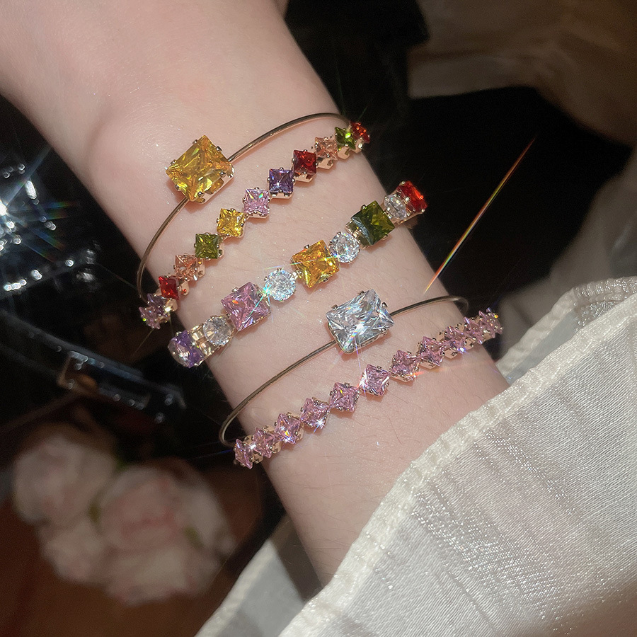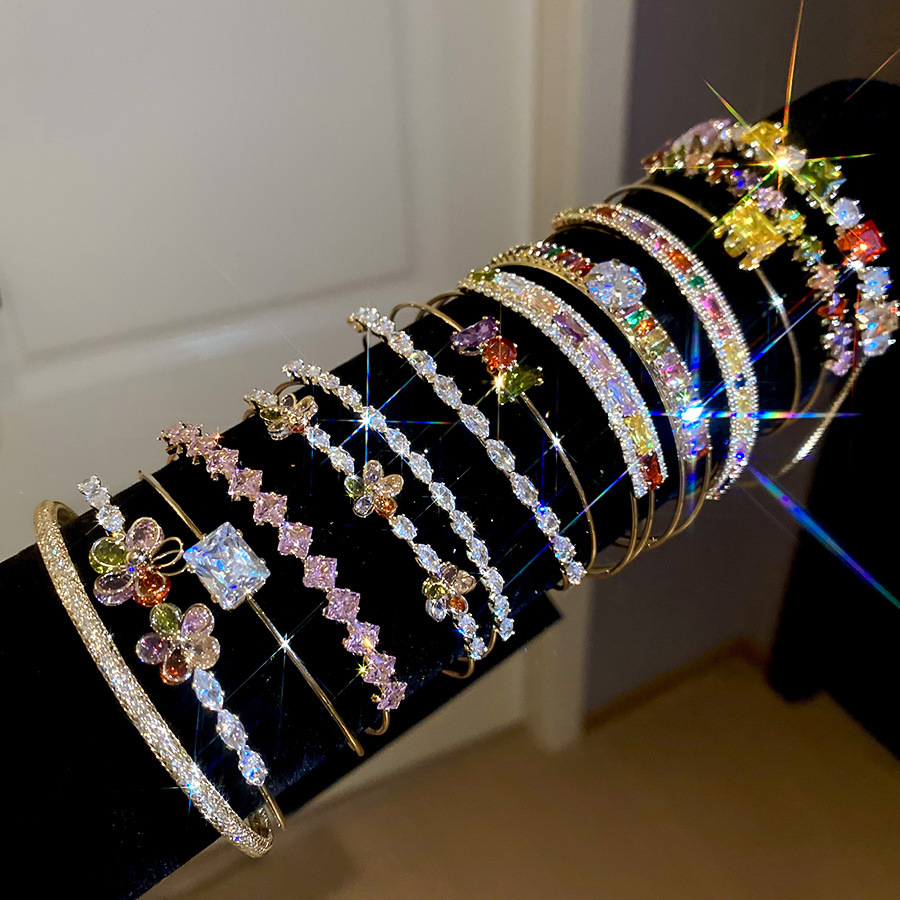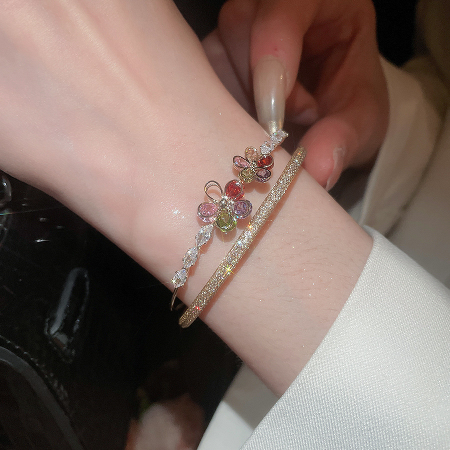 Pulsera de apertura geométrica de malla de flor de circón, pulsera retro de lujo ligero exquisito europeo y americano