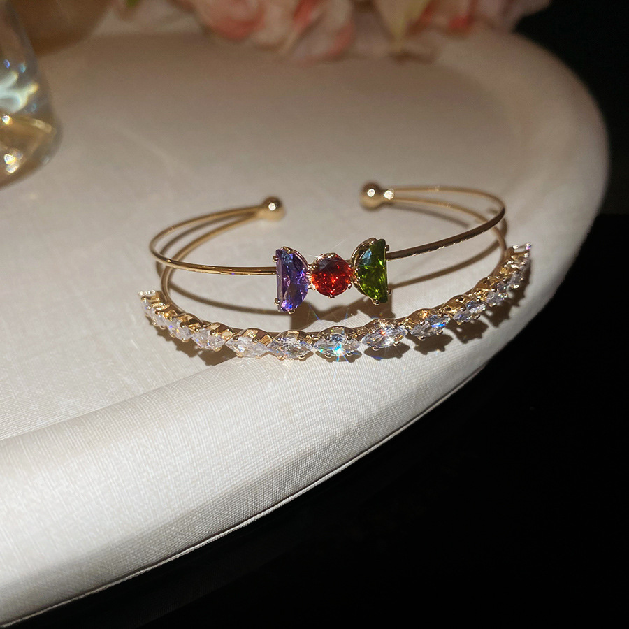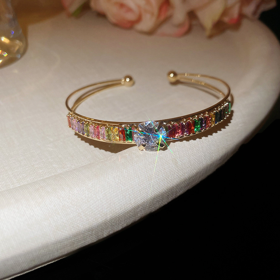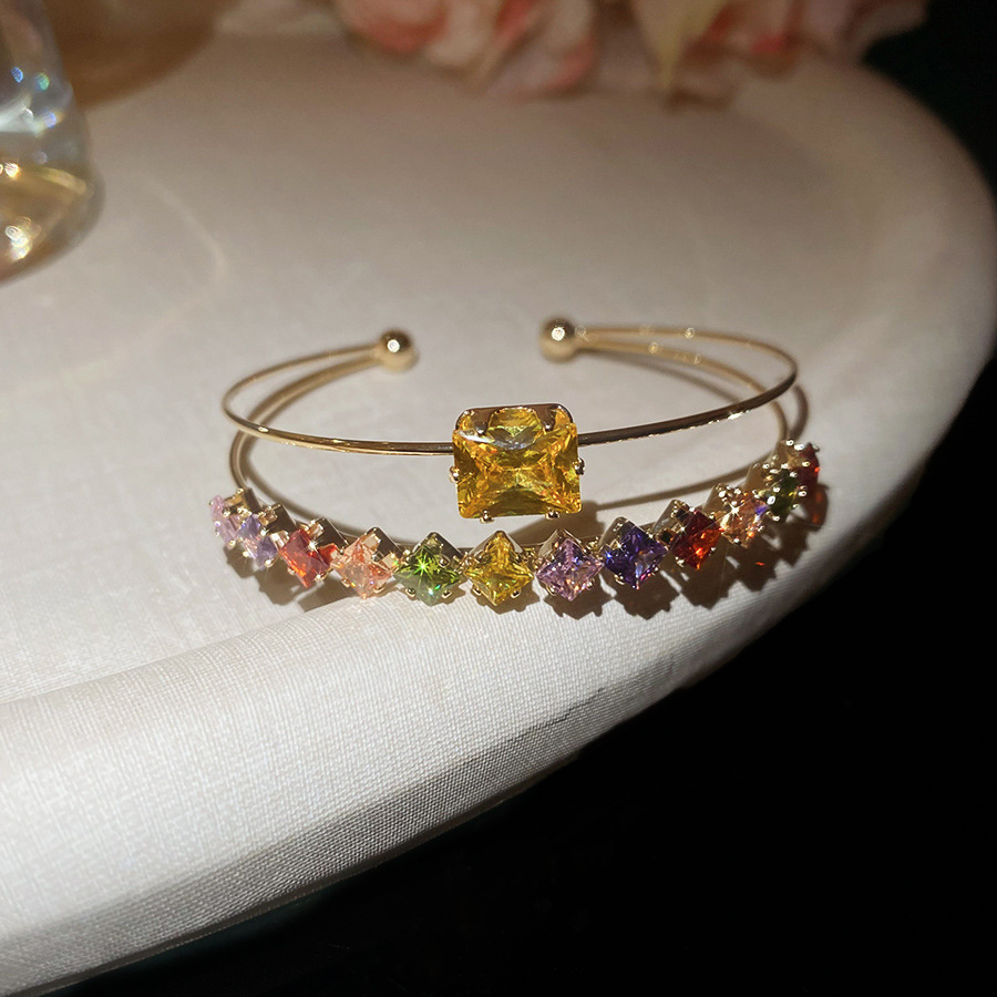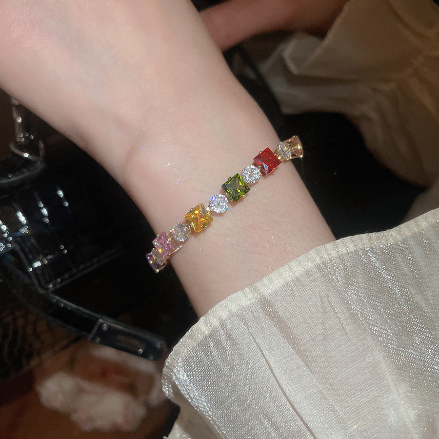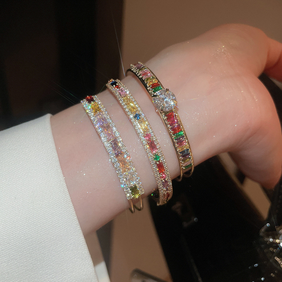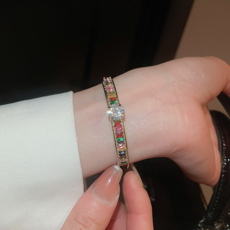 Pulsera de apertura geométrica de malla de flor de circón, pulsera retro de lujo ligero exquisito europeo y americano