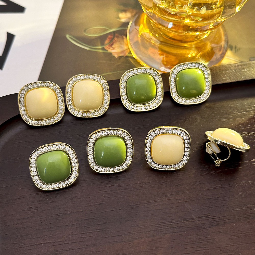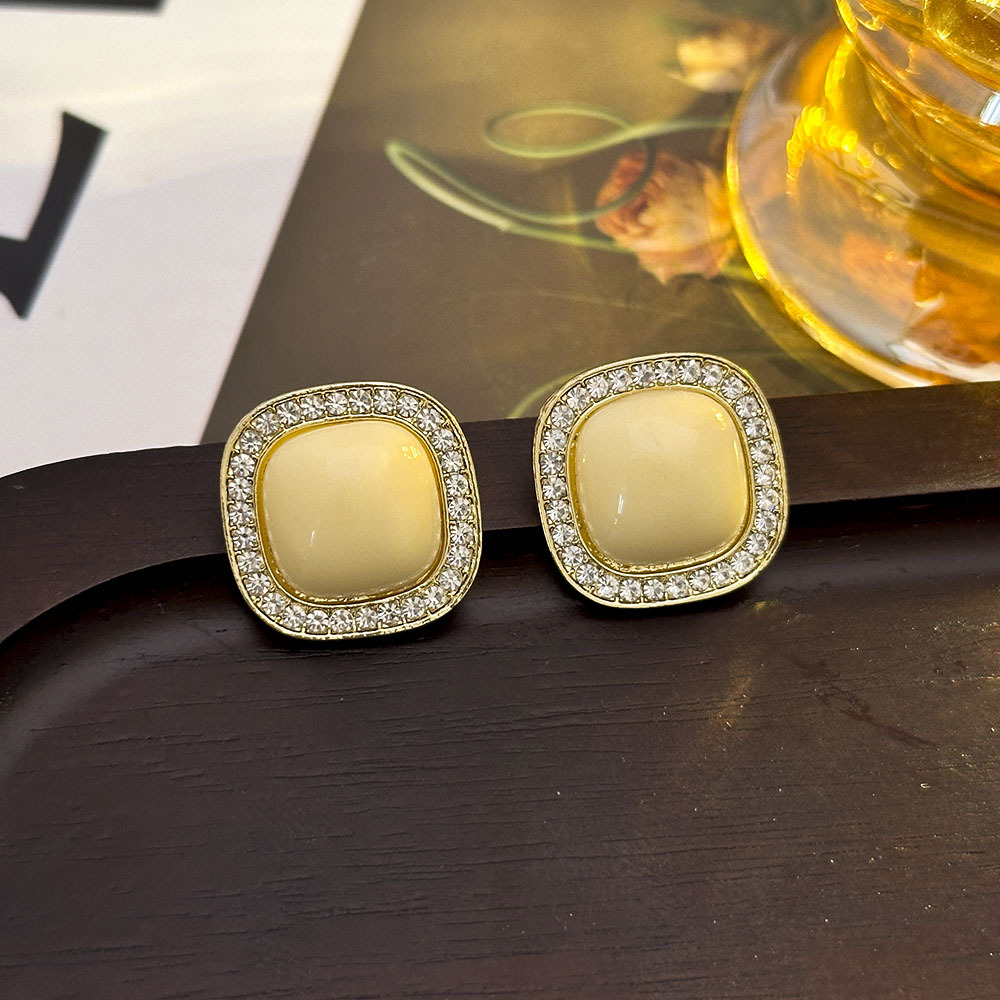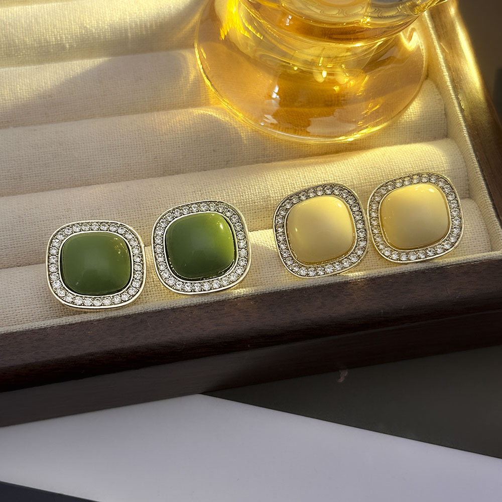 Pinzas para las orejas cuadradas geométricas con incrustaciones de diamantes coreanos, pendientes de temperamento de lujo ligero y de alta gama, pendientes de todo fósforo, pequeños y simples