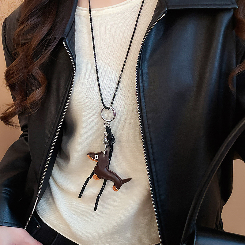 Collar de llavero de cachorro de color café, cadena de suéter de diseño de nicho, accesorios de joyería de moda de alta gama femenina