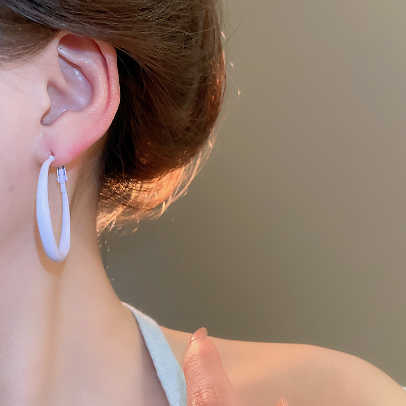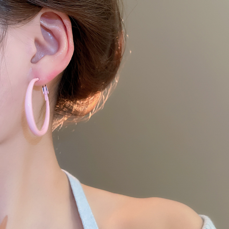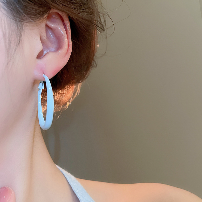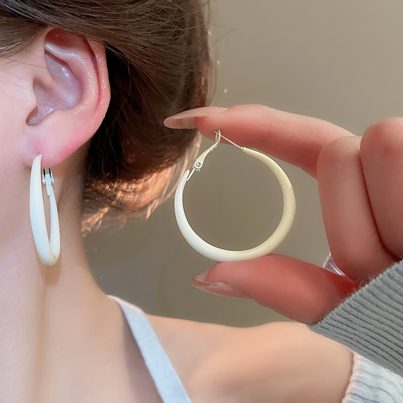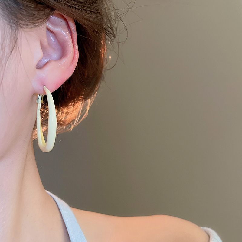Pendientes de anillo redondo lisante de aguja de plata Pendientes de dopamina de temperamento de nicho femenino Pendientes femeninos Joyas de sentido avanzado de nicho