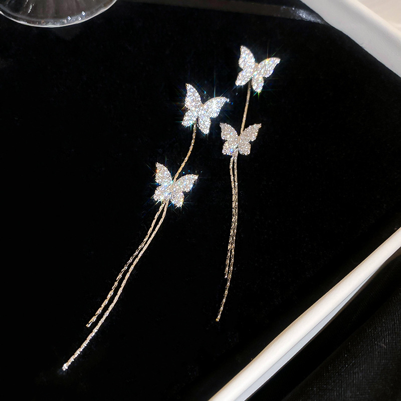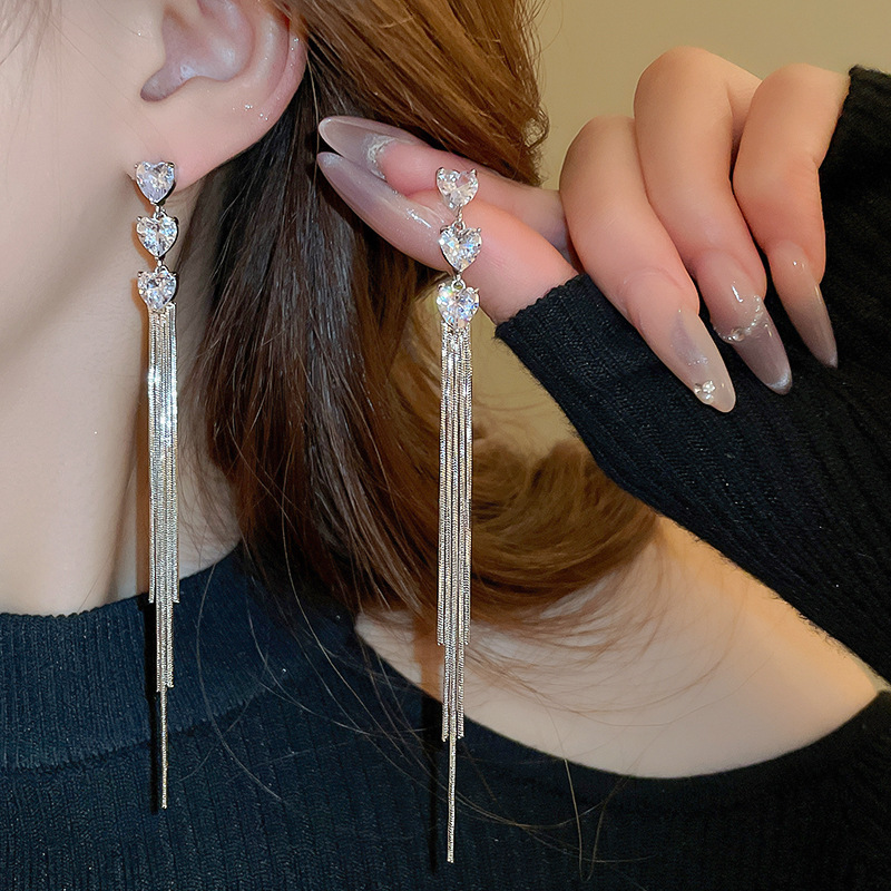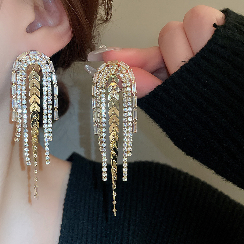 Pendientes de lazo de amor de diamantes llenos de agujas de plata galvanizadas en oro real Pendientes de moda exquisita Pendientes de lujo ligero plateado