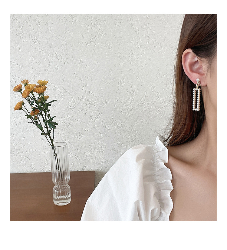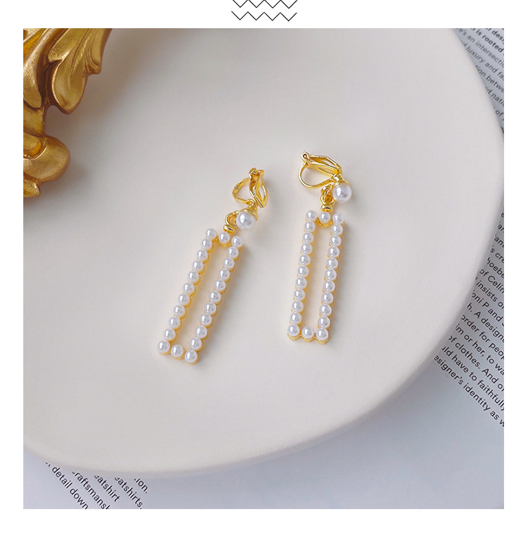 Pinzas largas para las orejas sin orejas, pendientes de perlas retro estilo Hong Kong, borlas cuadradas, pendientes de temperamento simple francés, alta calidad