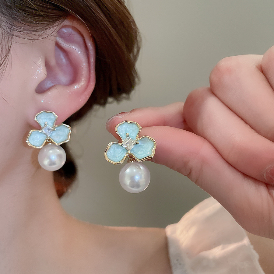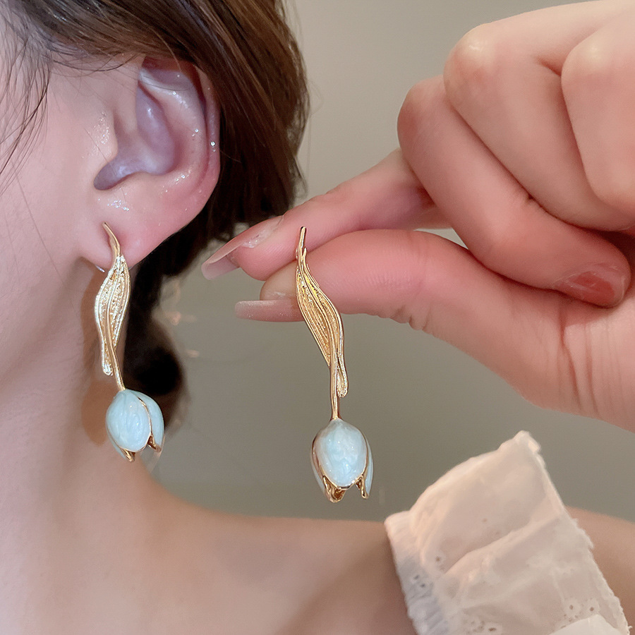 Pendientes de borla de flores de tulipán de aceite de goteo de aguja de plata Primavera/verano 2025 Pendientes nuevos de nicho de alta gama al por mayor