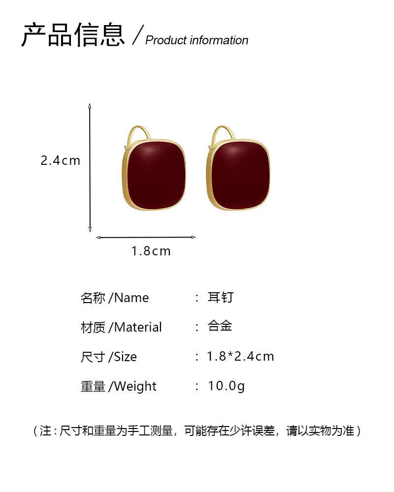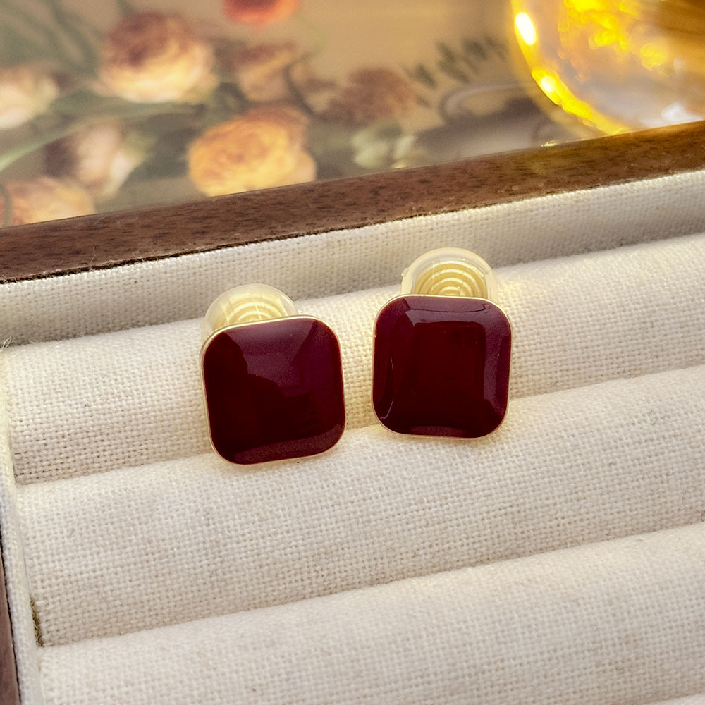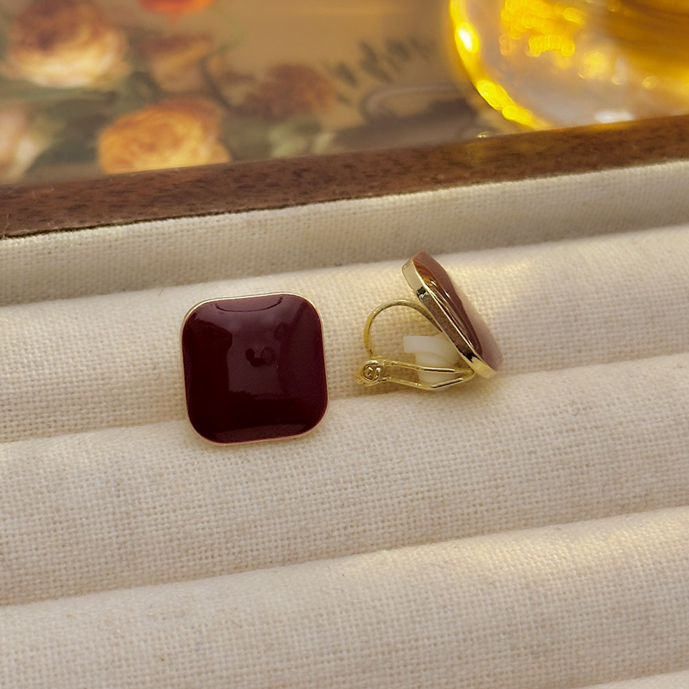 Arejas cuadradas geométricas de aceite de goteo rojo angoleño Pendientes de nicho francés sin orejas perforadas Pendientes de temperamento de alta calidad