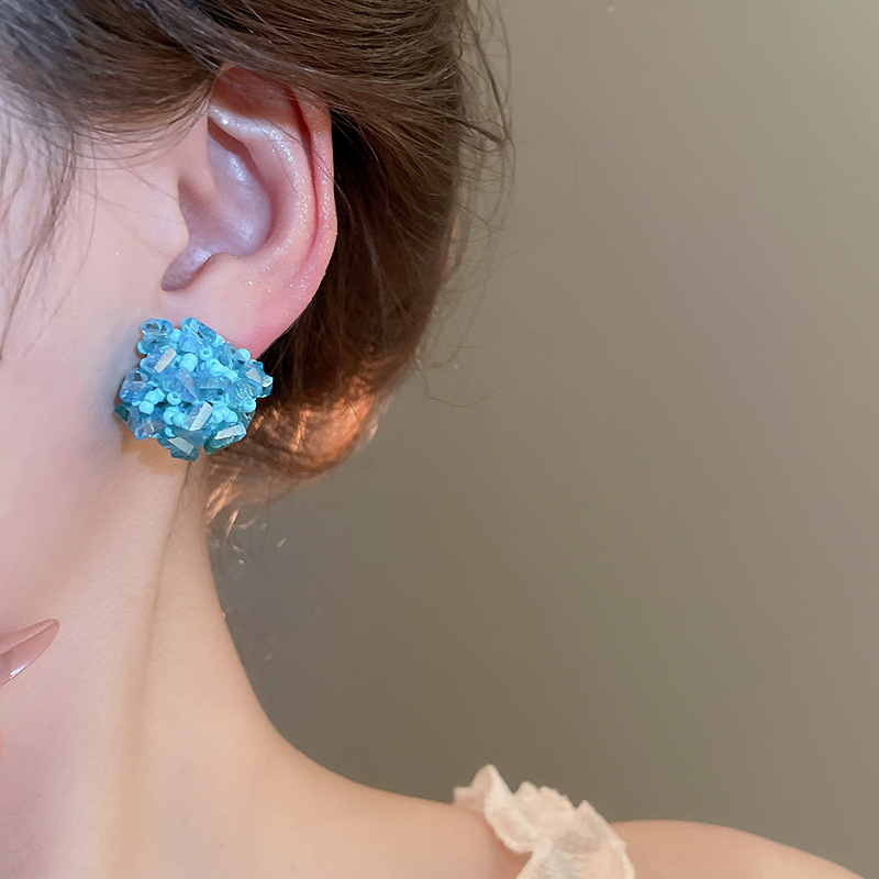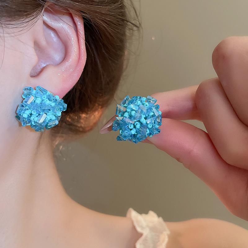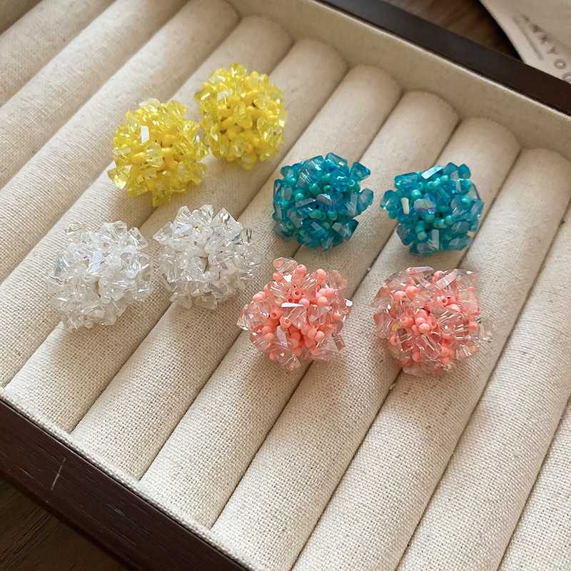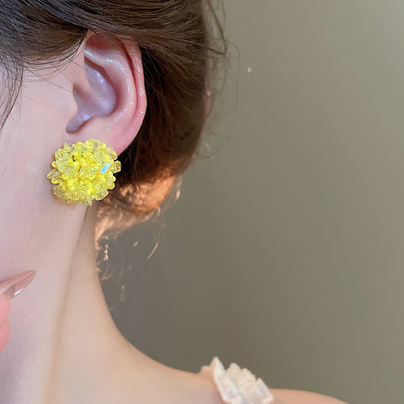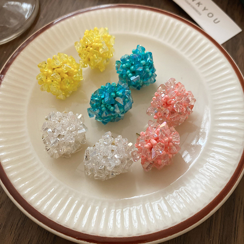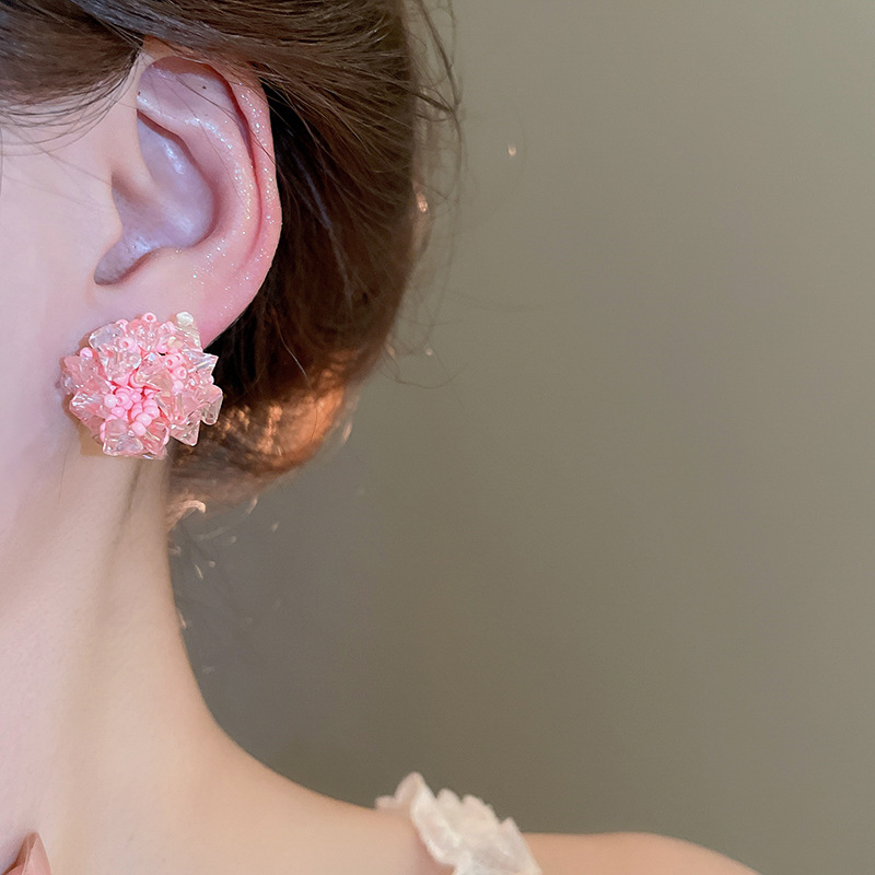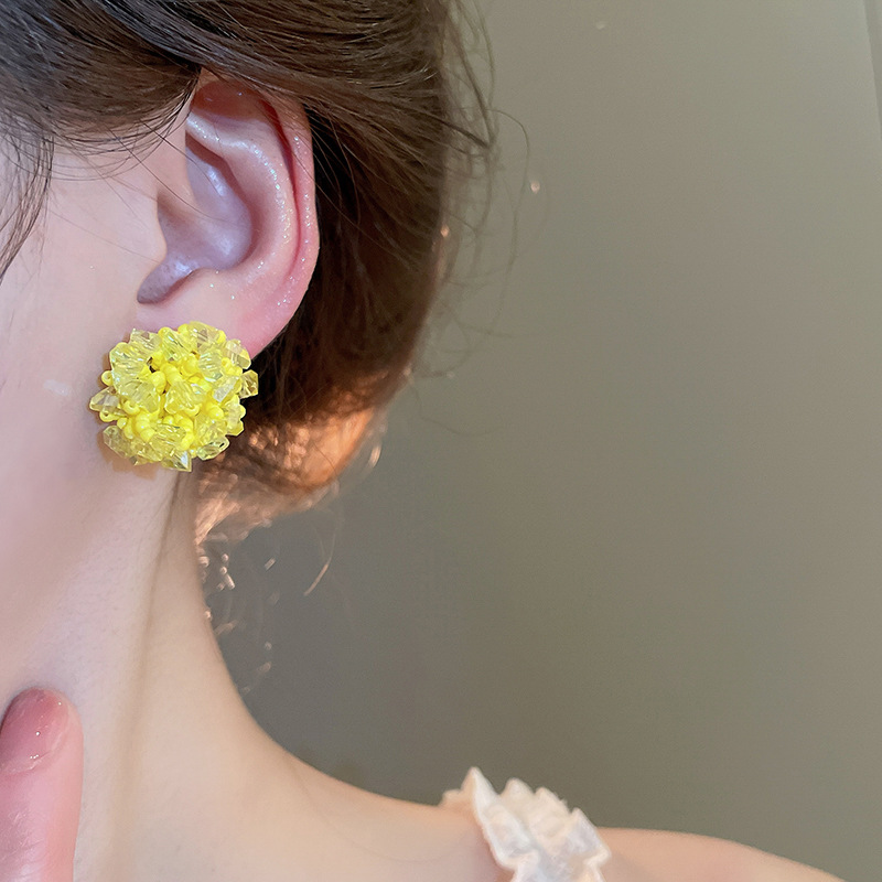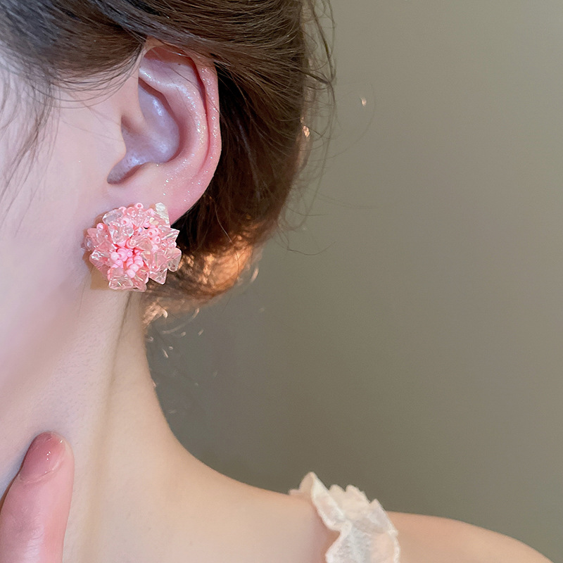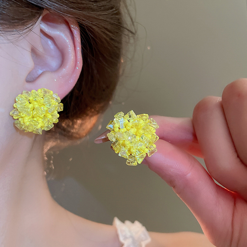 Pendientes de tejido de cristal de flor redonda de aguja de plata Pendientes de todo fósforo de viaje Pendientes de temperamento de moda femenina Sensación de nicho de alto nivel