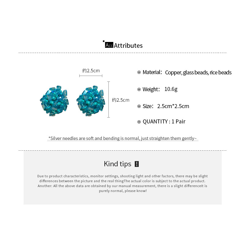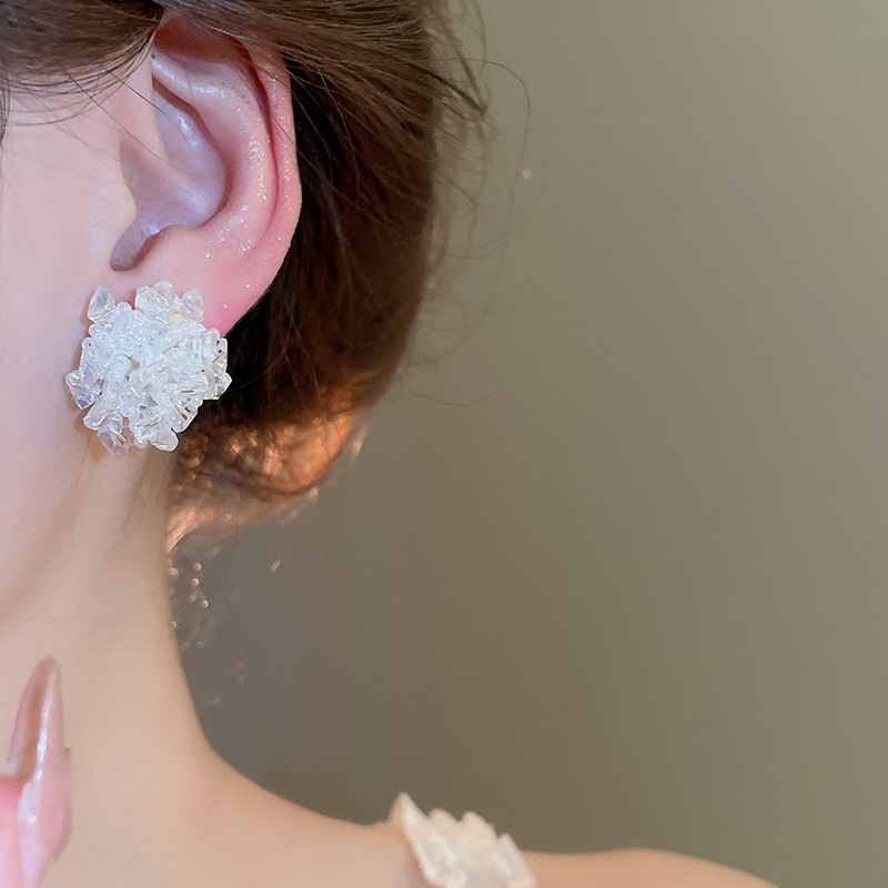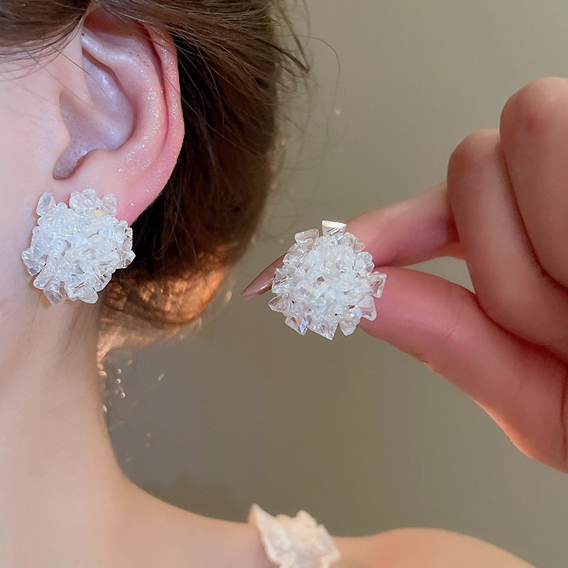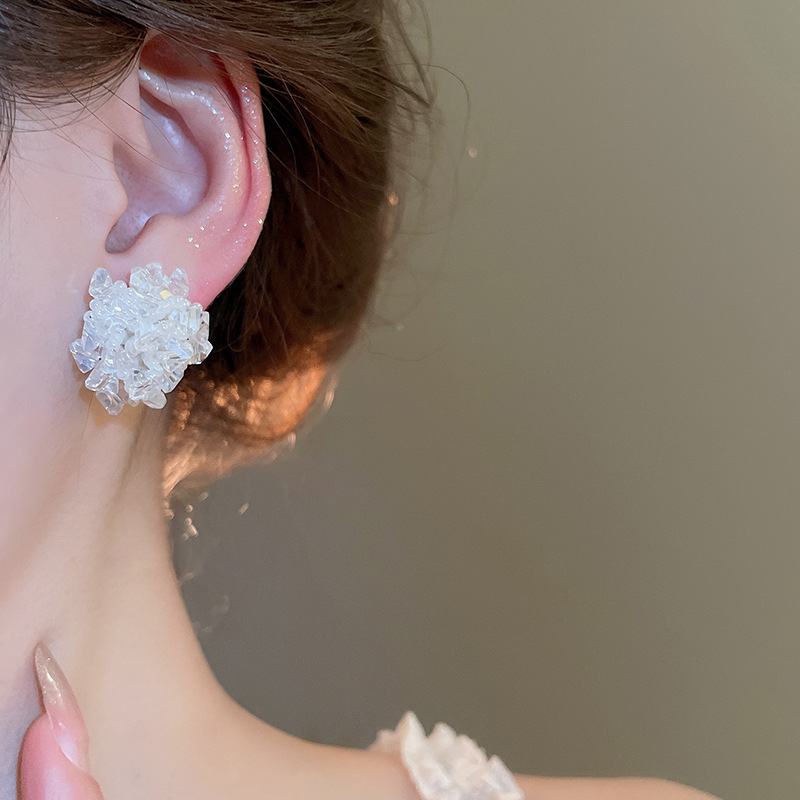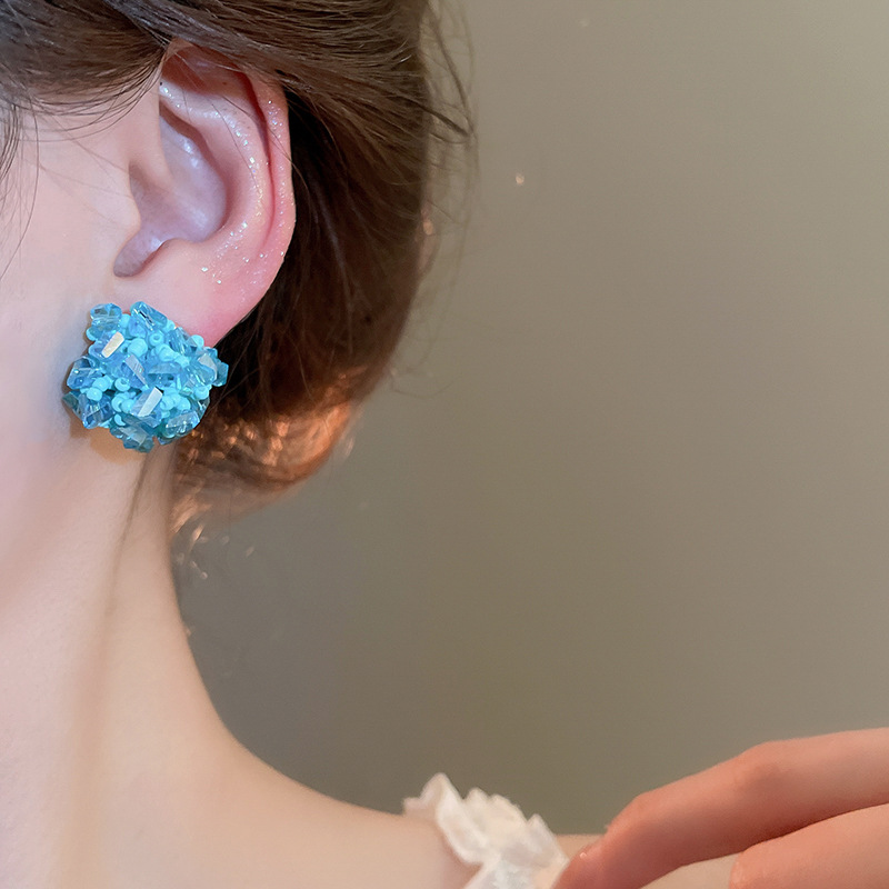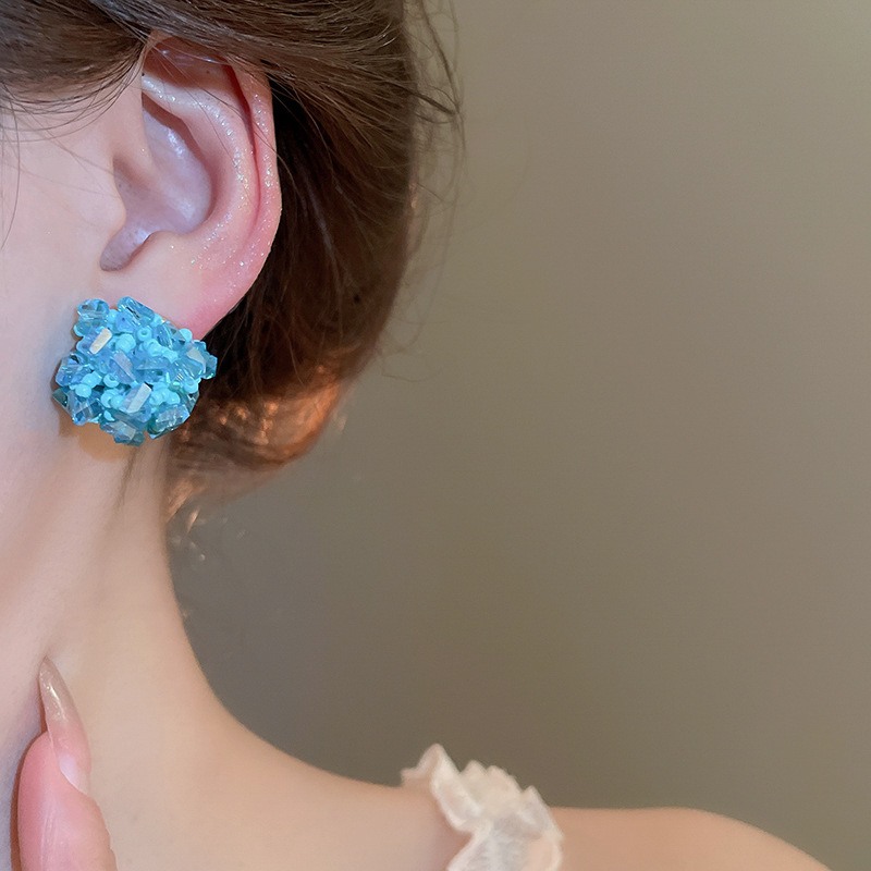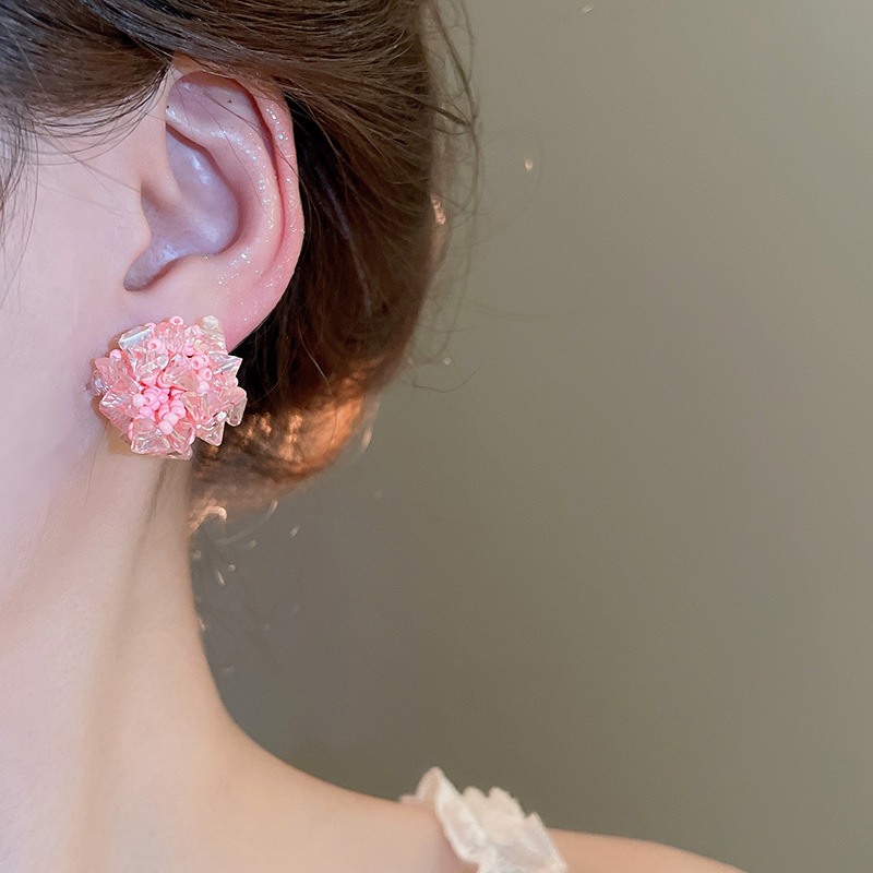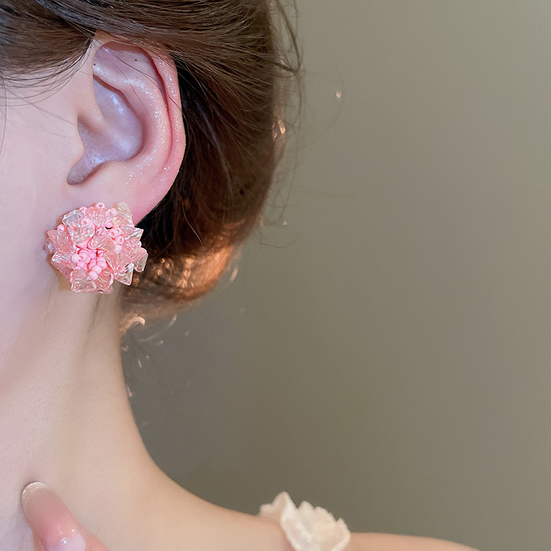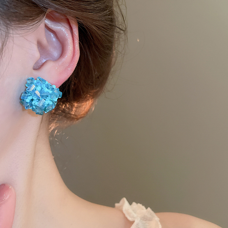 Pendientes de tejido de cristal de flor redonda de aguja de plata Pendientes de todo fósforo de viaje Pendientes de temperamento de moda femenina Sensación de nicho de alto nivel