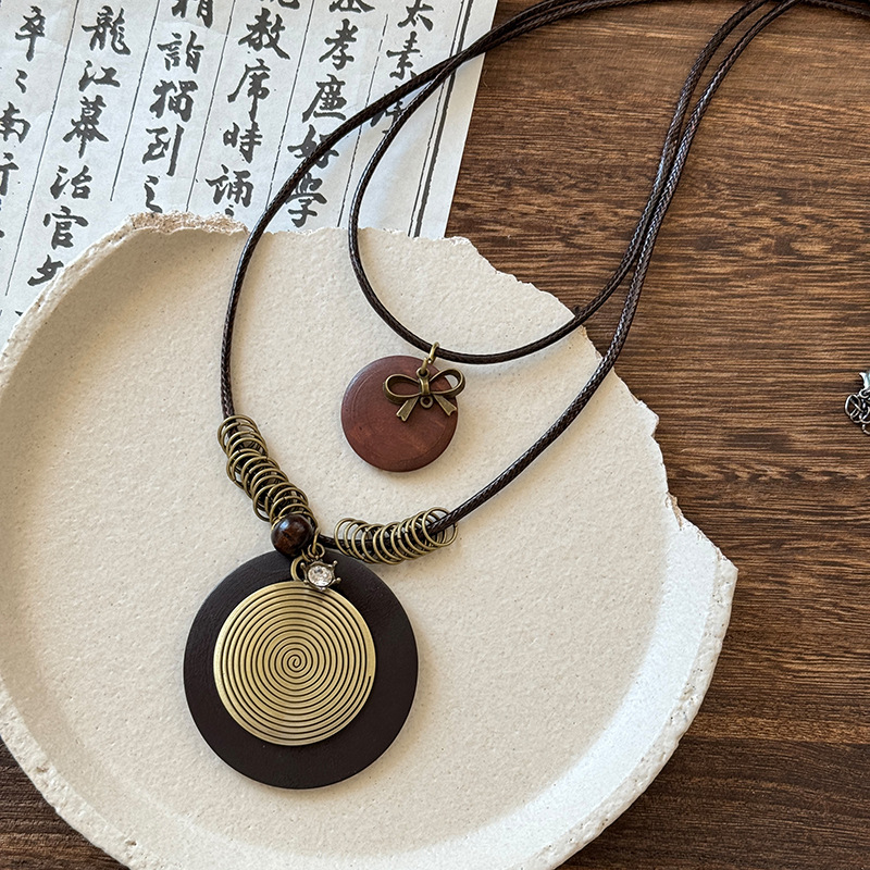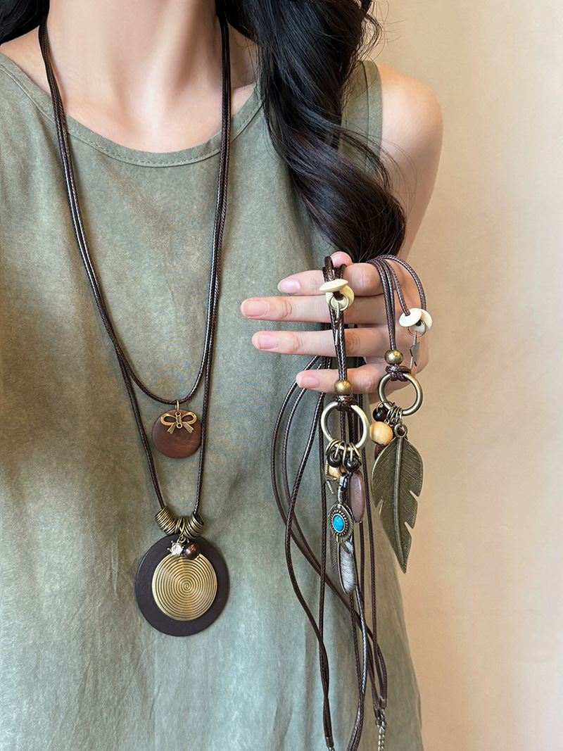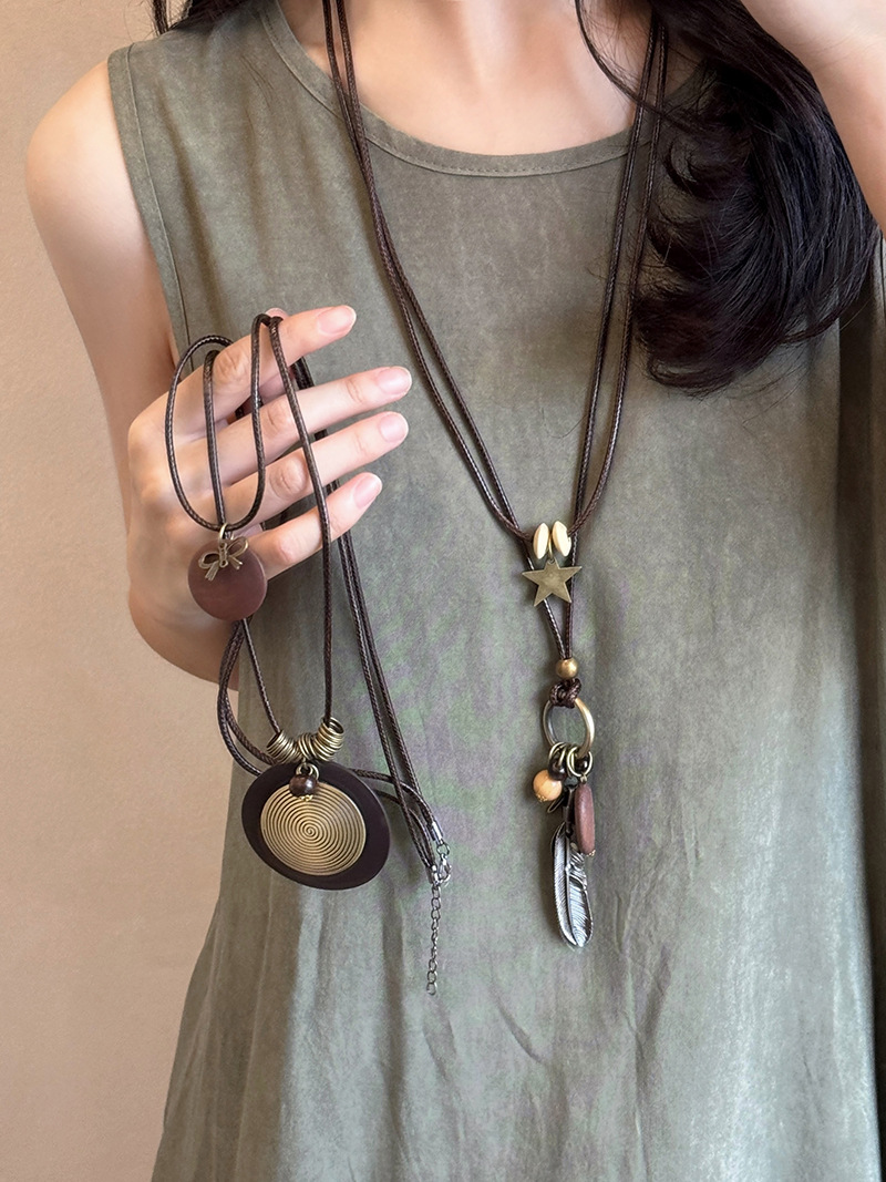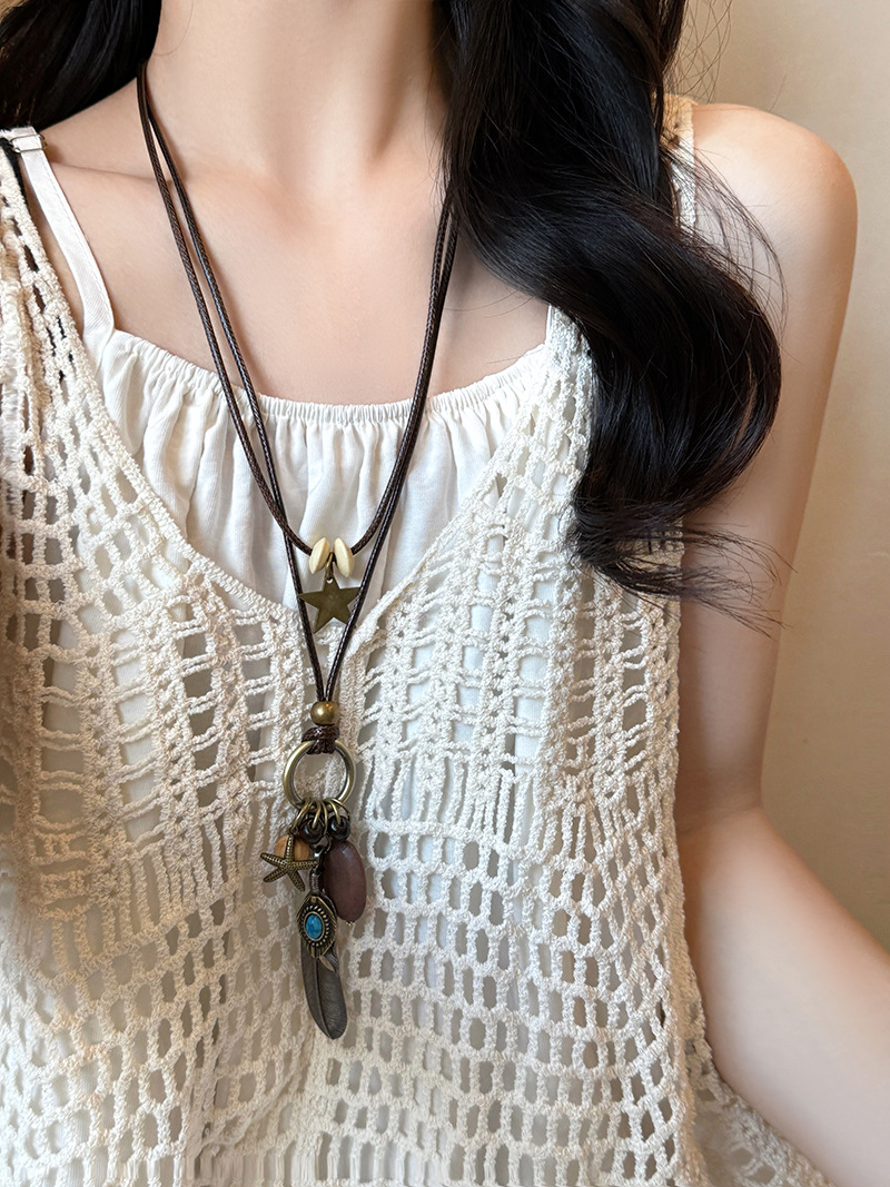 Nuevo estilo de cuero chino estrella pluma borla collar diseño sentido collar cadena de clavícula retro estilo artístico joyería mujer