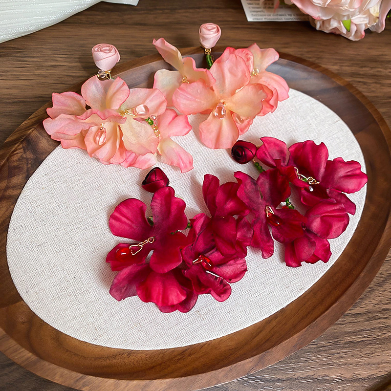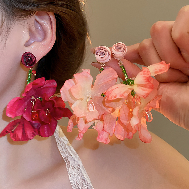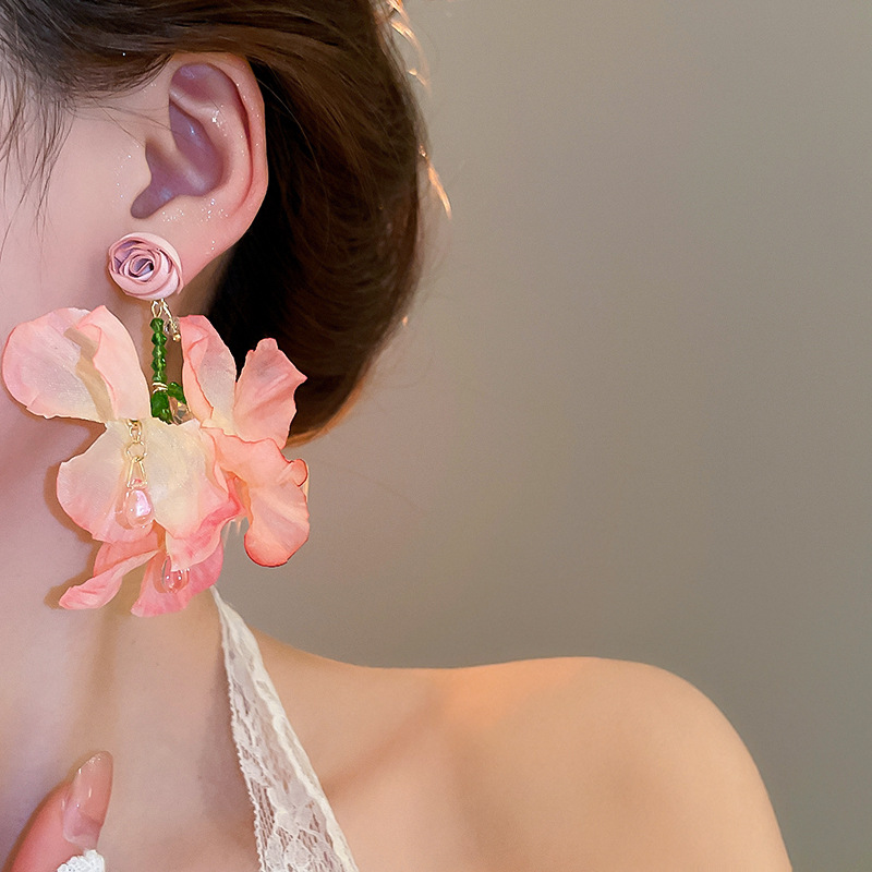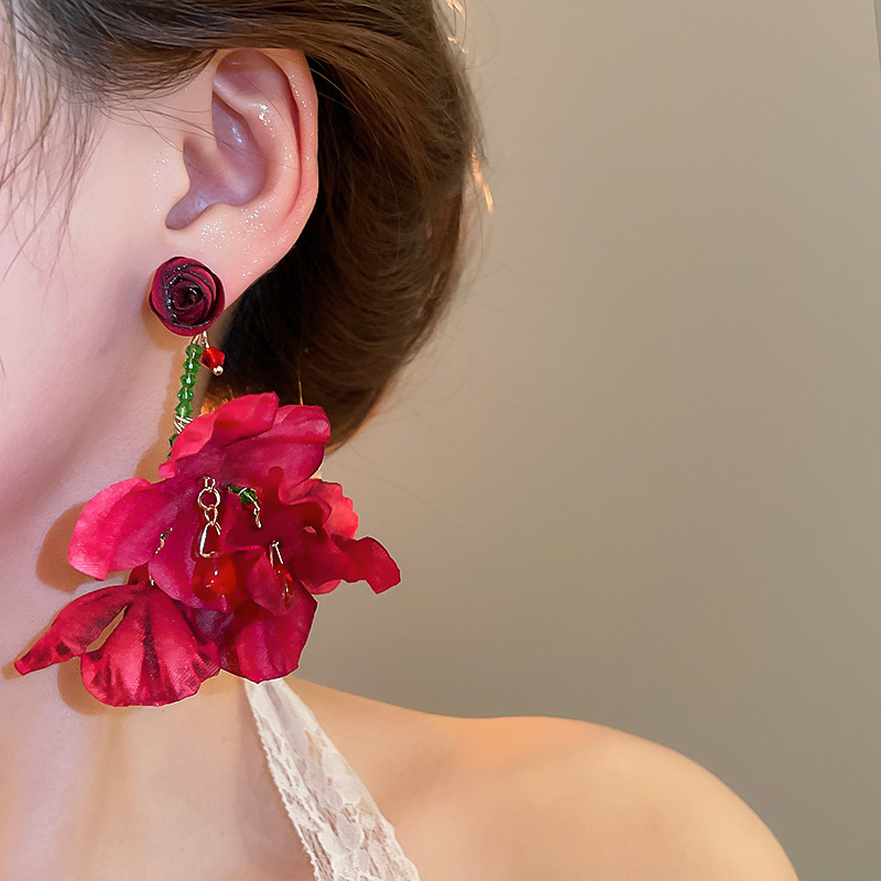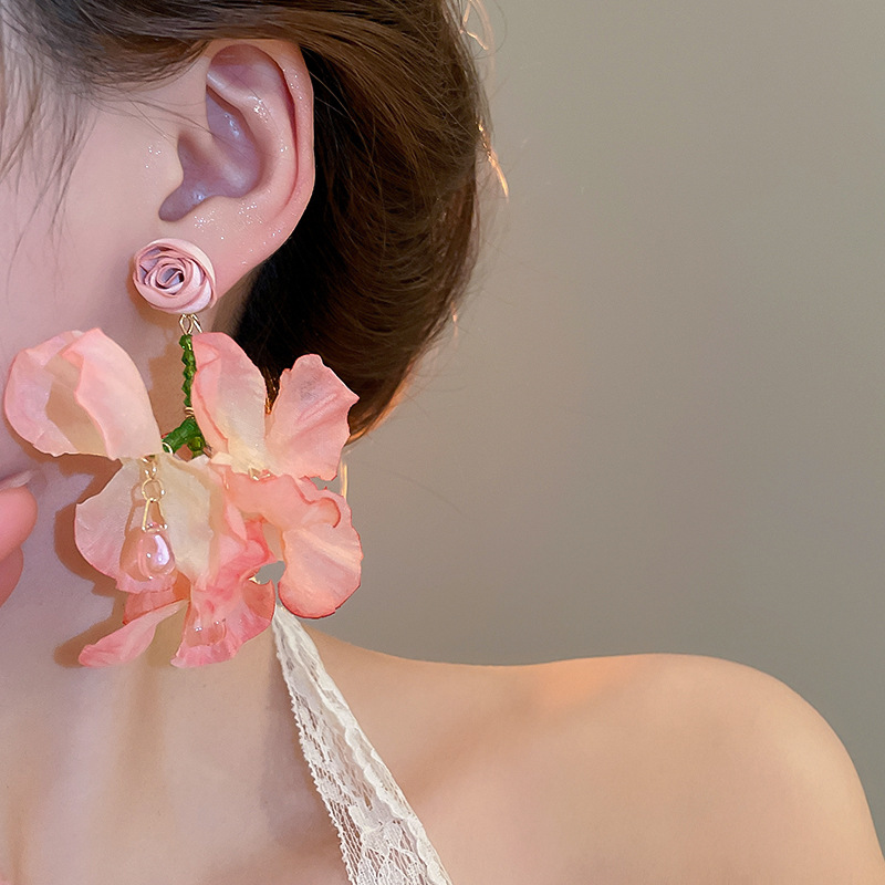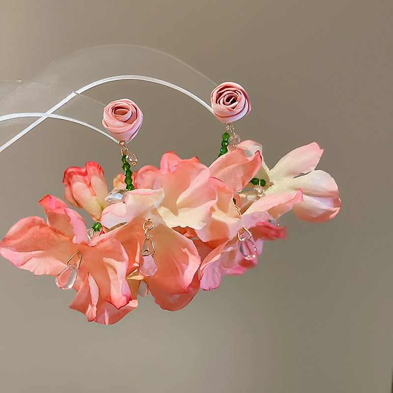 Pendientes de borla de flor de cristal de tela de aguja de plata, pendientes de ambiente fotográfico, pendientes dulces de Mori, sentido de clase alta de nicho
