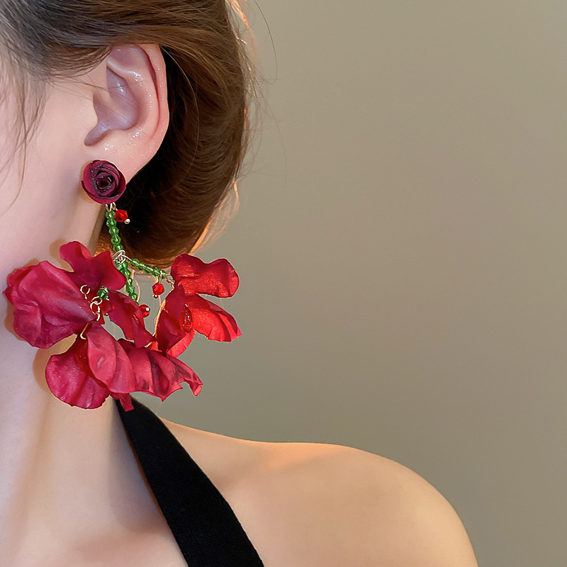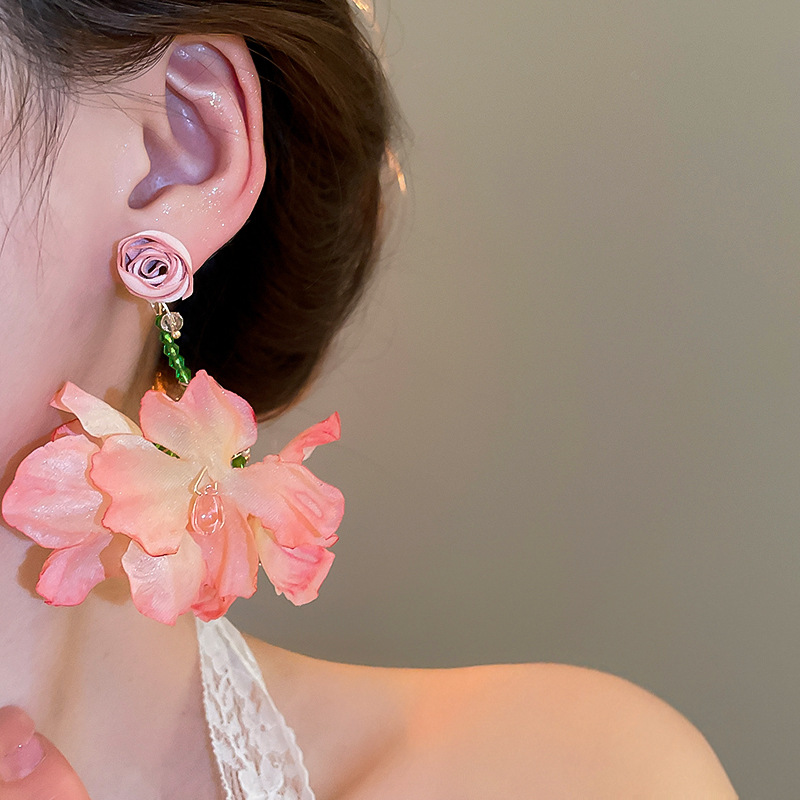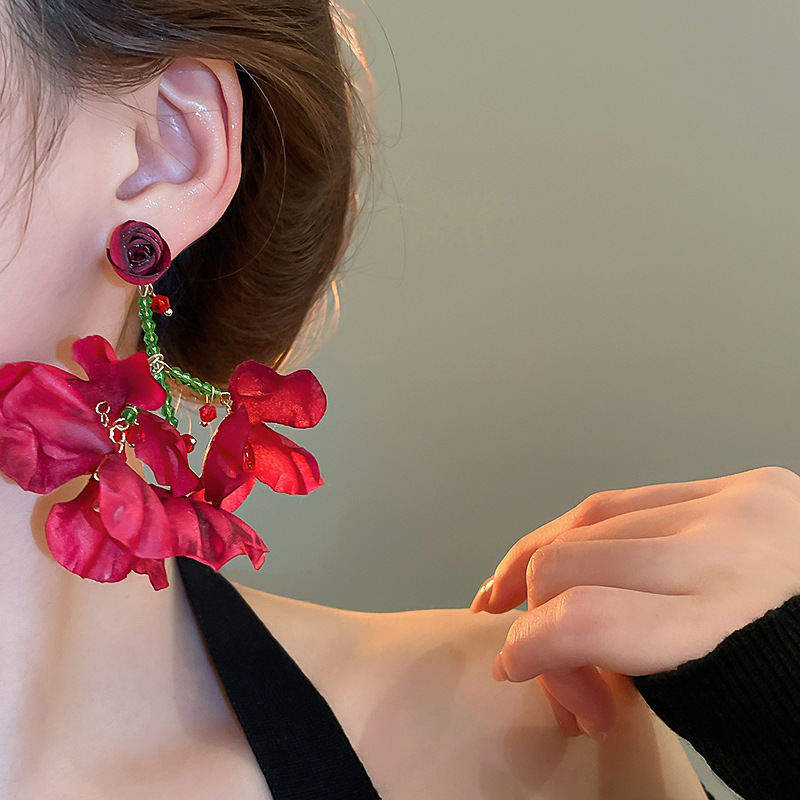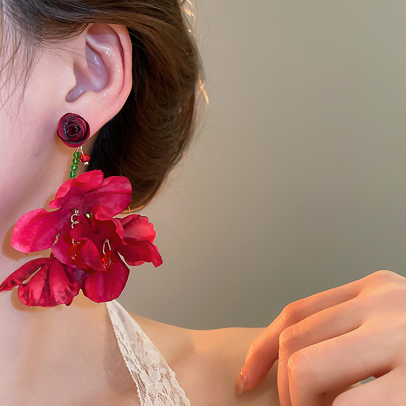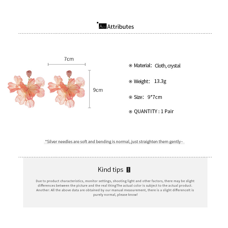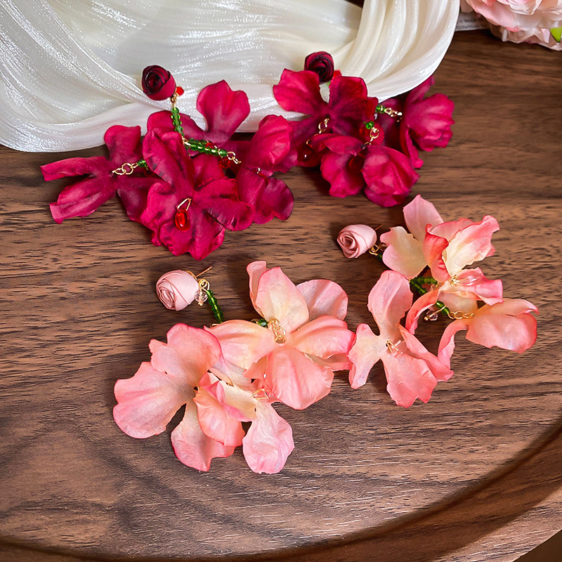 Pendientes de borla de flor de cristal de tela de aguja de plata, pendientes de ambiente fotográfico, pendientes dulces de Mori, sentido de clase alta de nicho