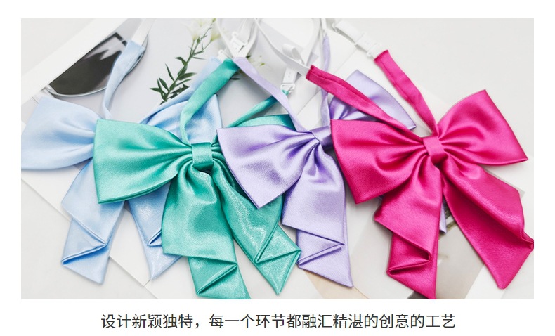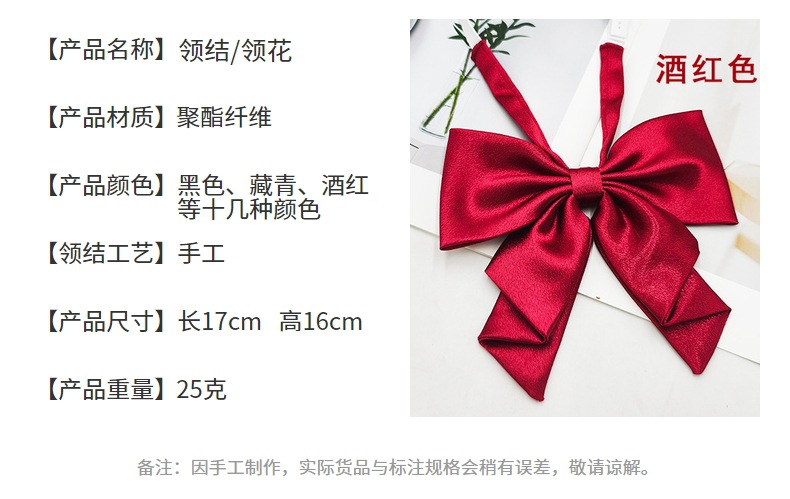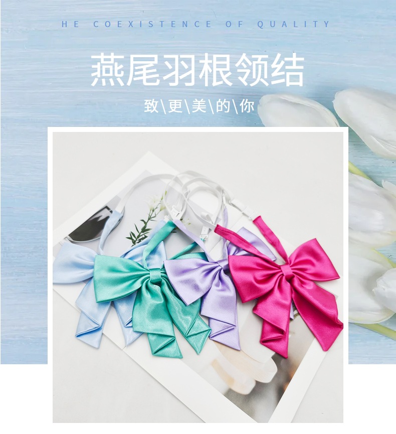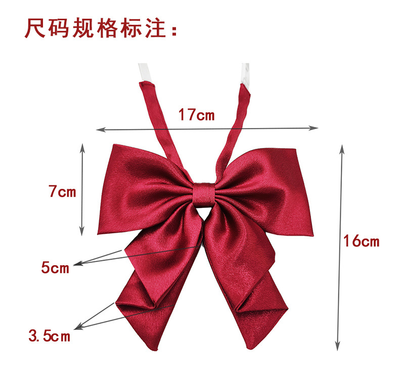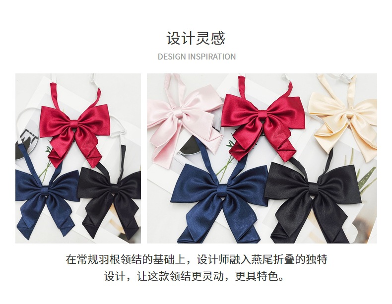 Spot al por mayor color sólido superficie brillante vino negro cuello rojo flor femenino estilo universitario nuevo estilo cola de golondrina plegable pajarita de raíz de pluma grande