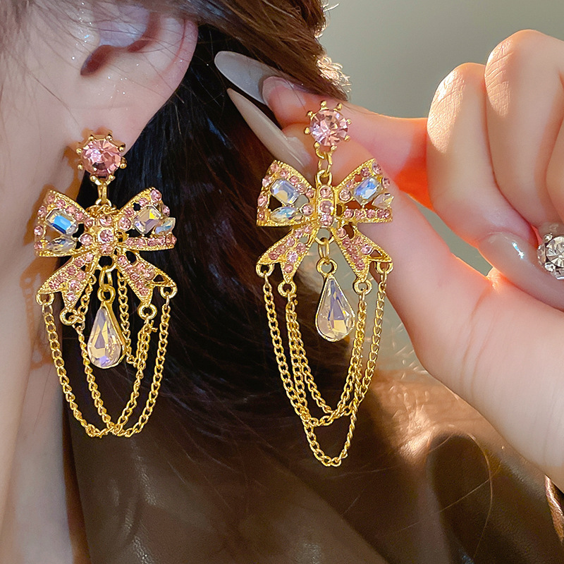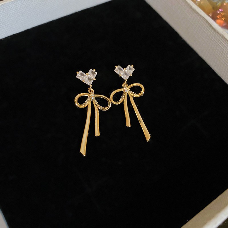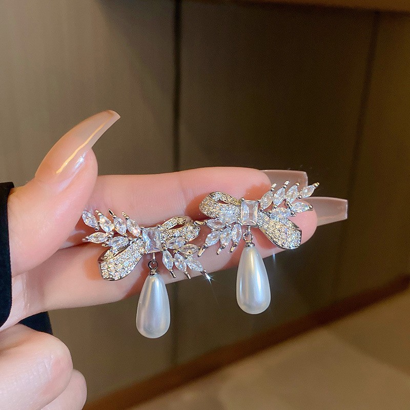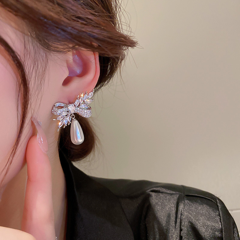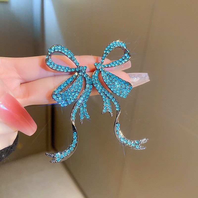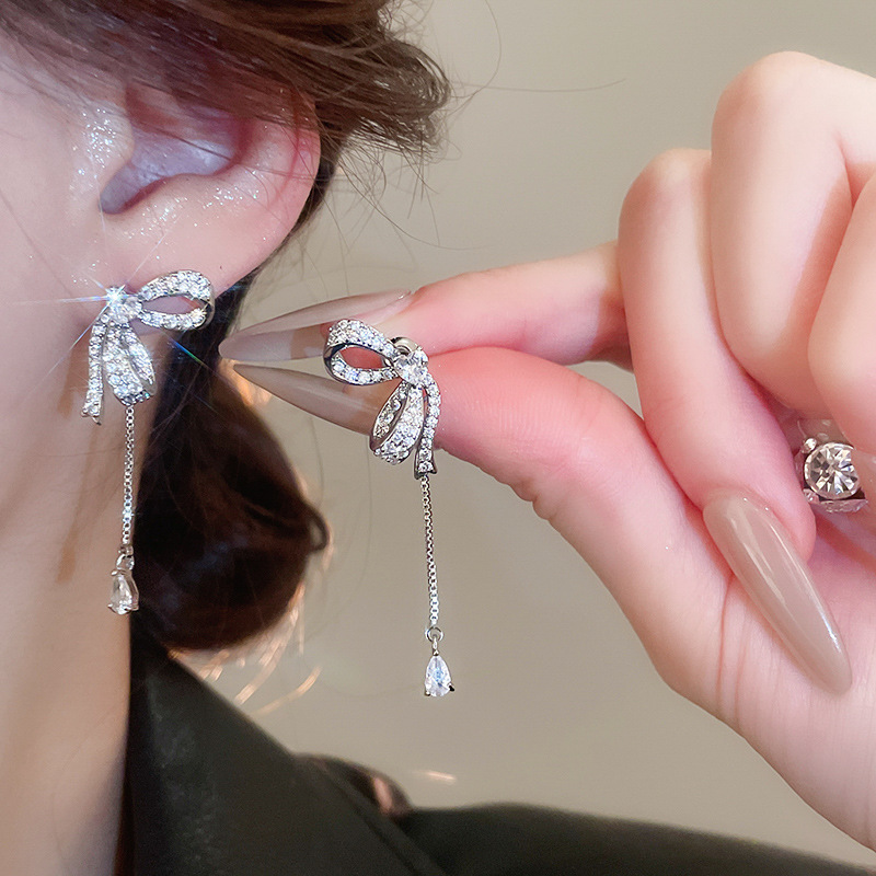 Aguja de plata Pendientes de lazo de diamantes coreanos Pendientes de temperamento de moda de todo fósforo Pendientes de diseño de nicho Sentido de lujo ligero